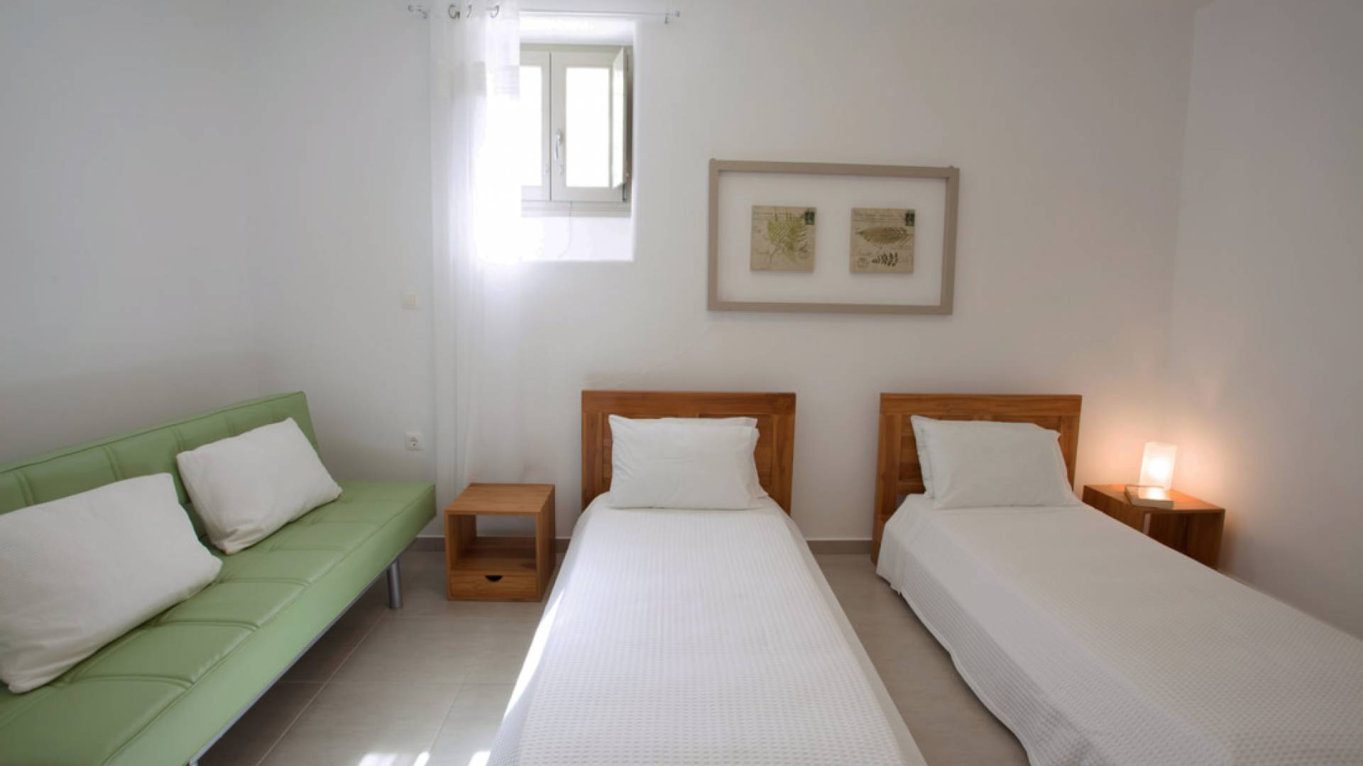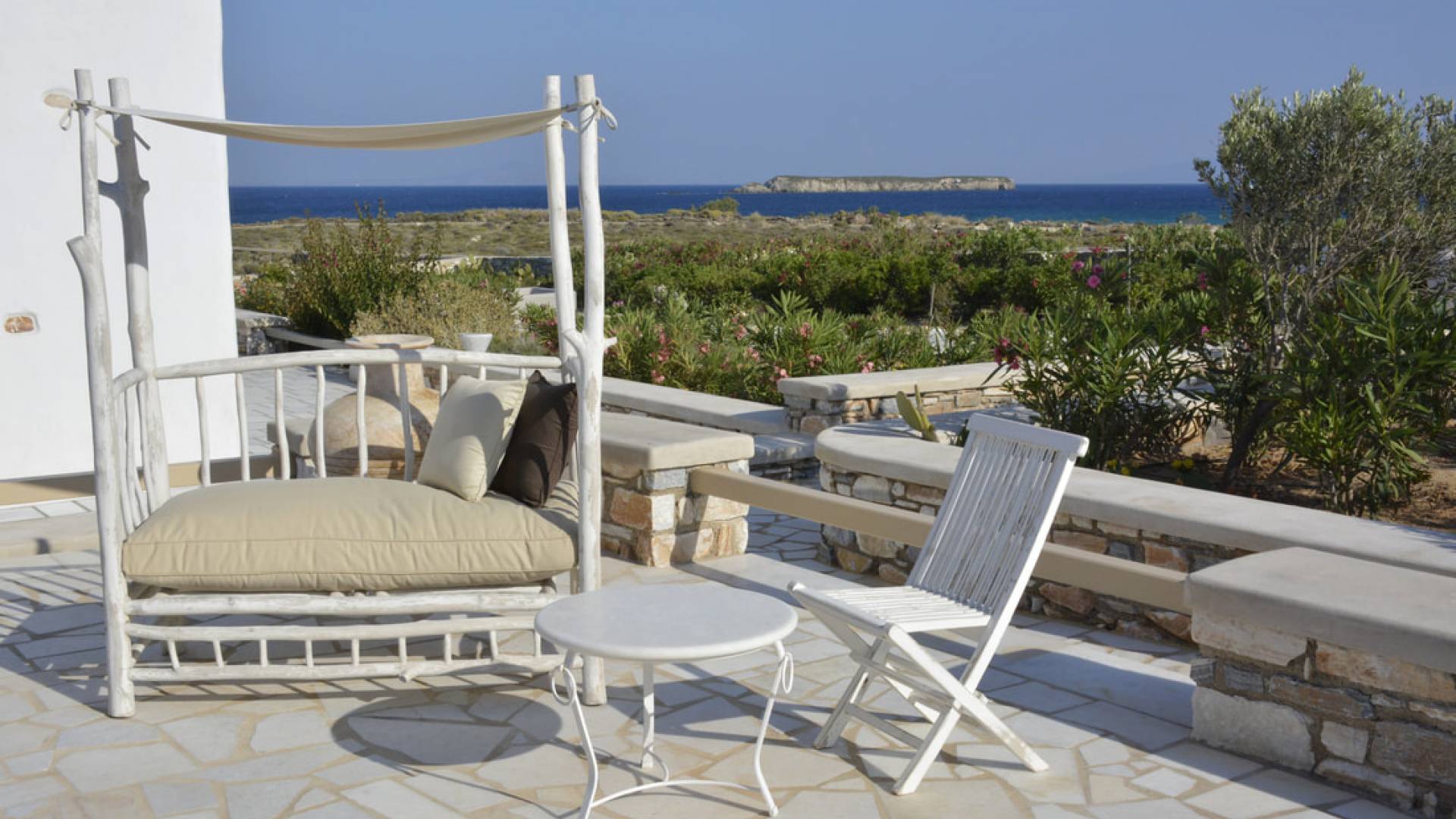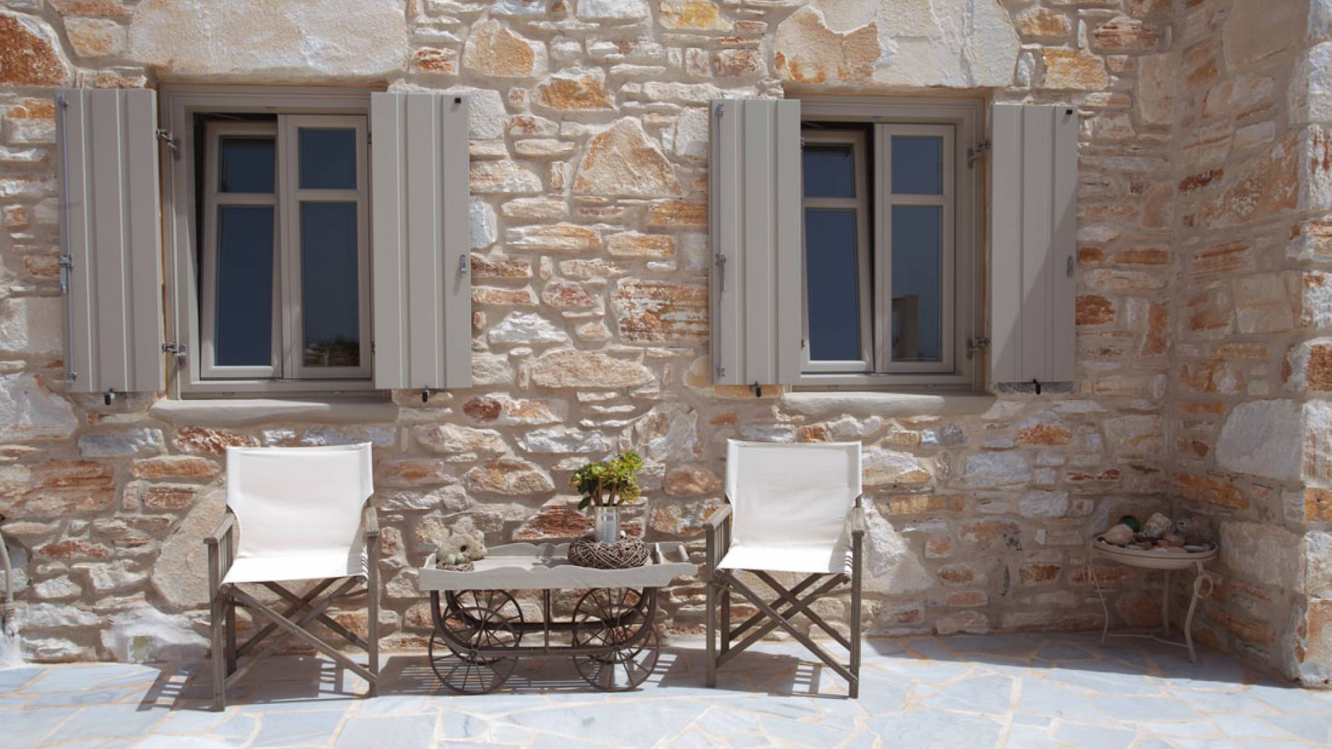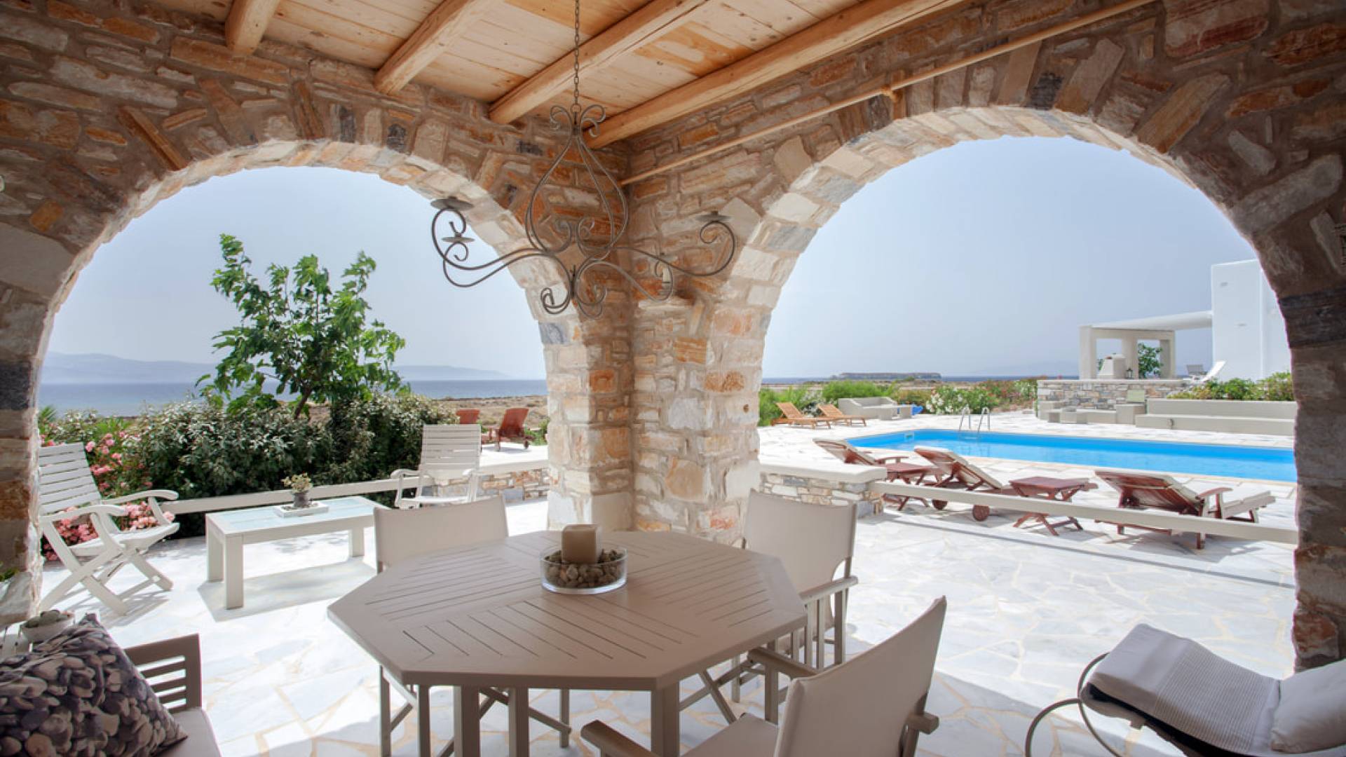 Gli interni, così come gli spazi esterni, sono disegnati con finezza e lusso. Gli interni sono dotati di splendidi mobili e pezzi d'arte unici. Tutte le ville hanno una vista aperta sul mare e sull'isola di Naxos da ogni luogo in cui scegli di sederti e possono offrirti un vero relax. Il complesso offre anche un grande giardino, possibilità di parcheggio e un ampio cortile comune con una grande piscina.