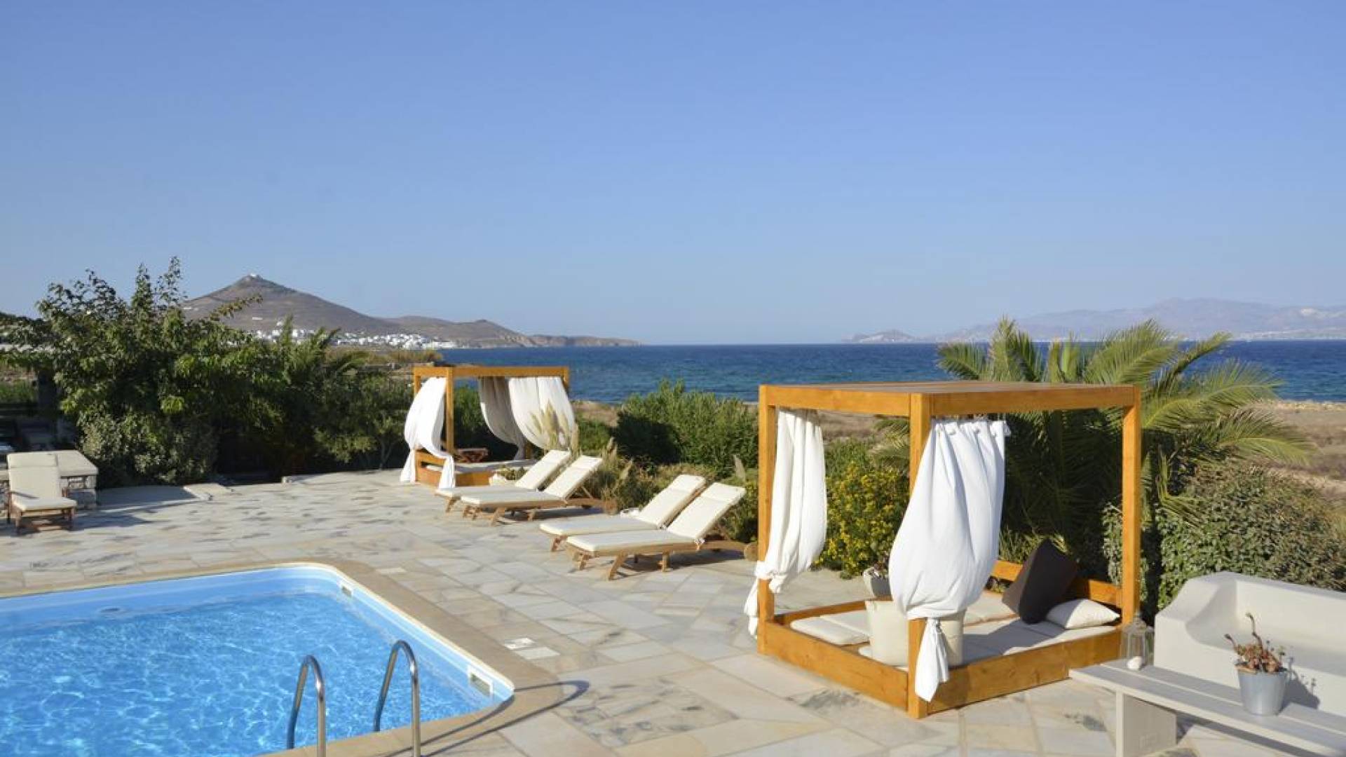 Sand Villa è una villa di lusso in affitto di 90m2. Dispone di soggiorno, cucina completamente attrezzata, sala da pranzo, 1 camera matrimoniale, 1 camera doppia e 2 bagni. Ha anche una spaziosa veranda ombreggiata privata, una zona pranzo all'aperto e un barbecue privato. Sand Villa può ospitare 4 persone. Possibilità di dormire 1 persona in più in divano letto. Condivide la piscina, il giardino e il parcheggio con le altre tre Ville. Sand Villa si trova accanto alla piscina comune mentre la veranda ha una vista mozzafiato sulla piscina, sul mare e sull'isola di Naxos!