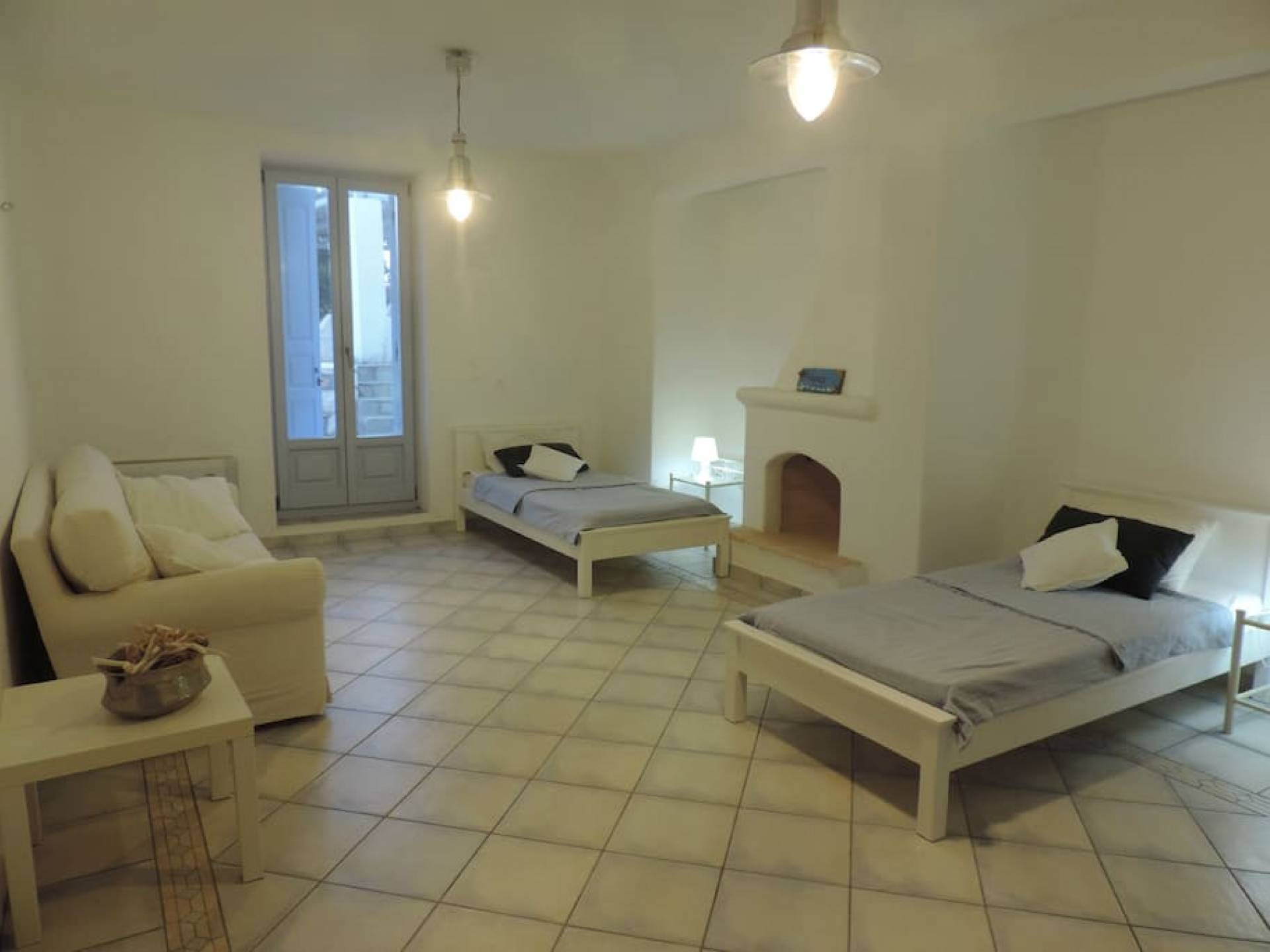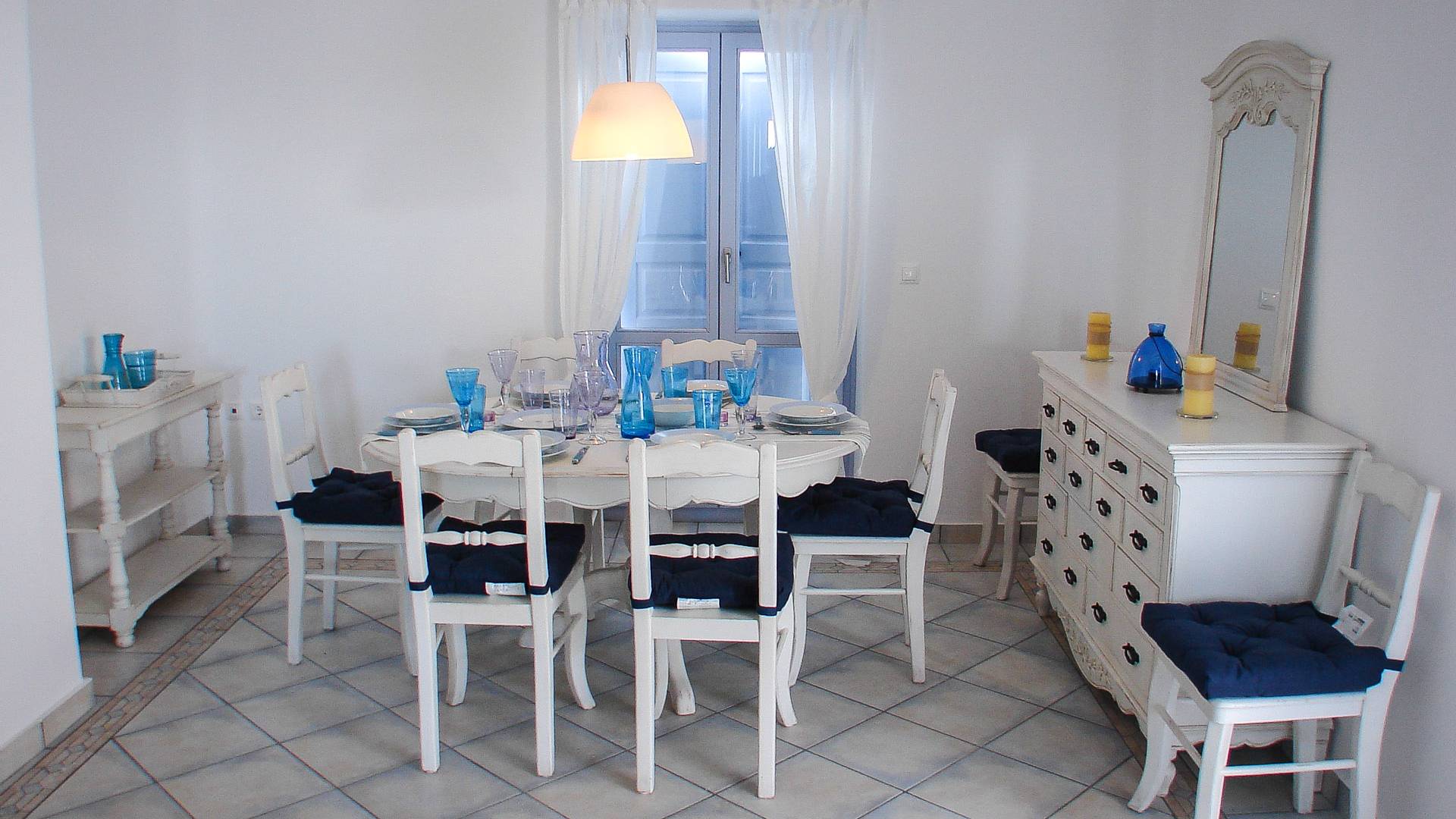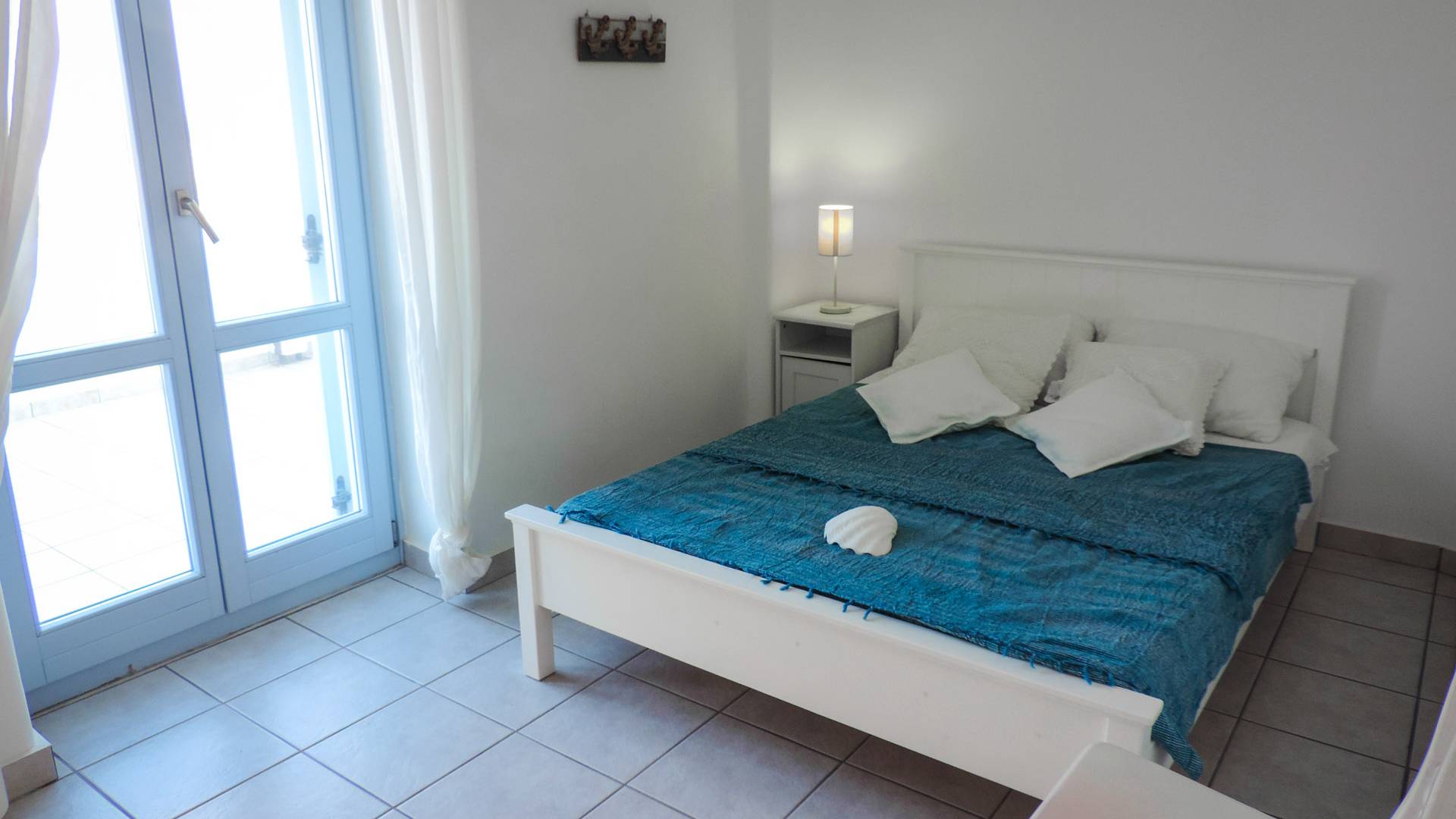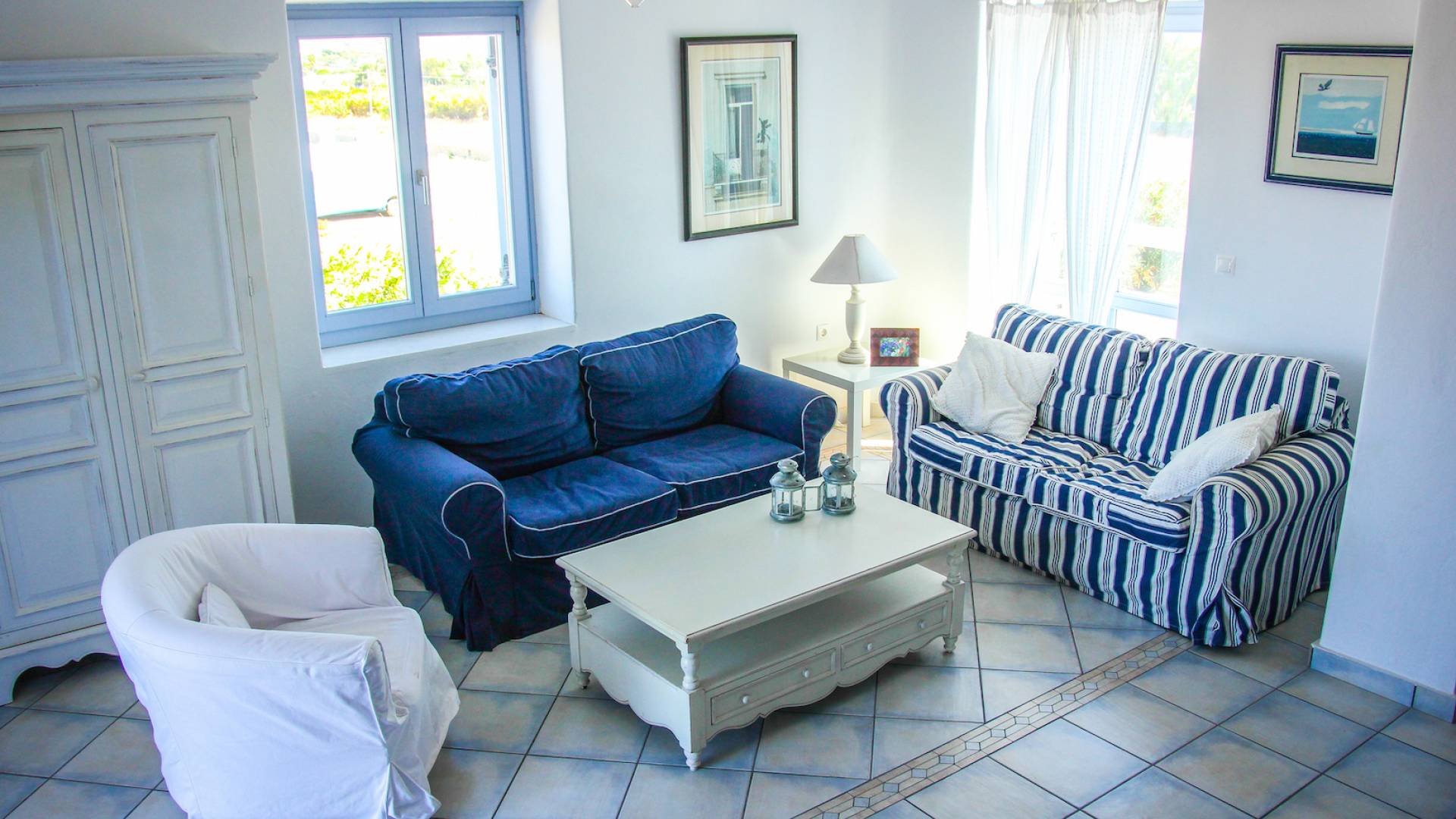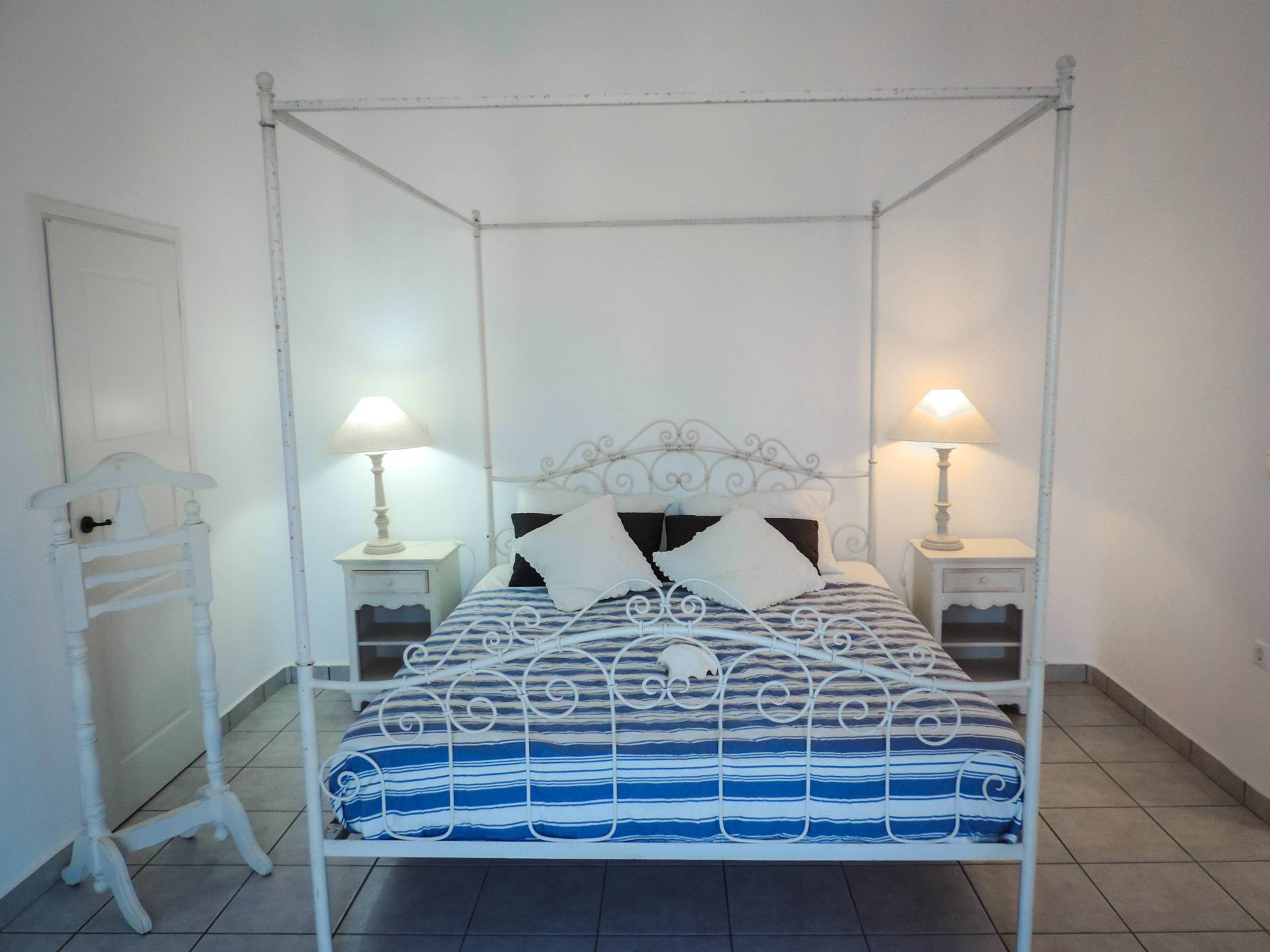 Antiparos Villa è composta da 3 livelli. Al primo livello (seminterrato) ci sono 3 camere da letto per 6 persone, 2 bagni, un ripostiglio con lavatrice e un grande soggiorno con camino, dove ci sono 2 letti singoli e un divano letto. Da questo livello si accede al cortile e alla piscina e tramite una scala interna si accede al primo piano.