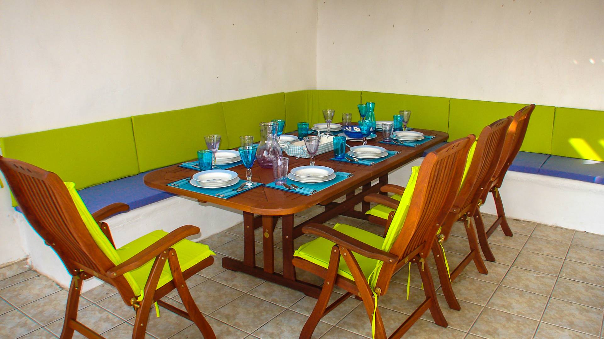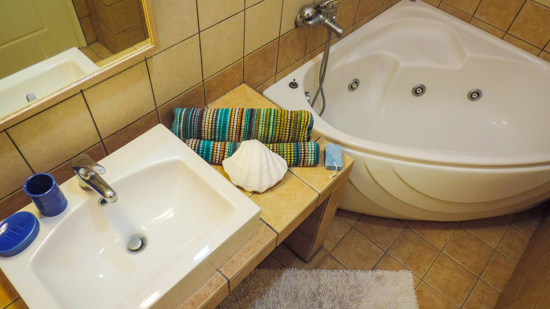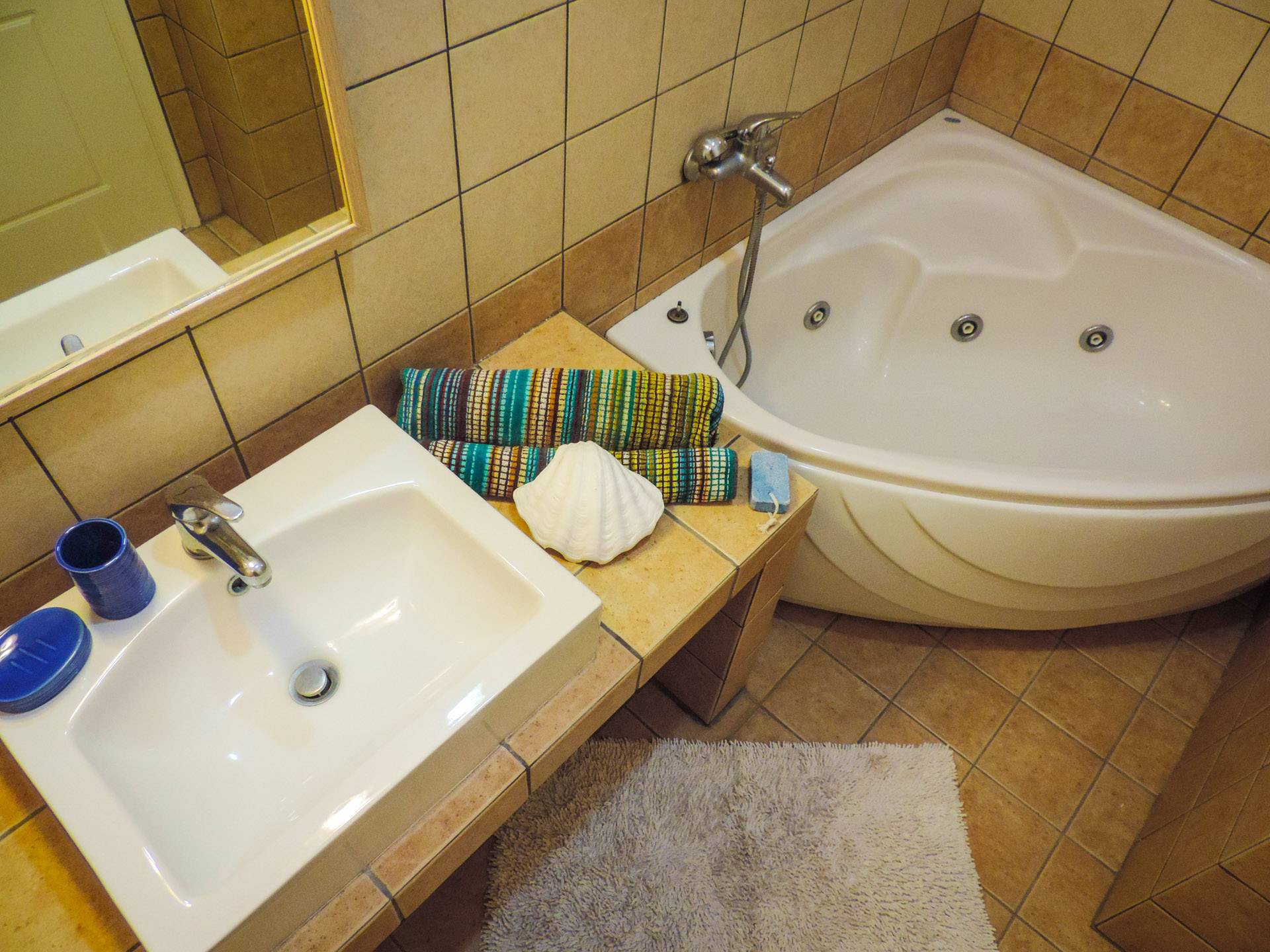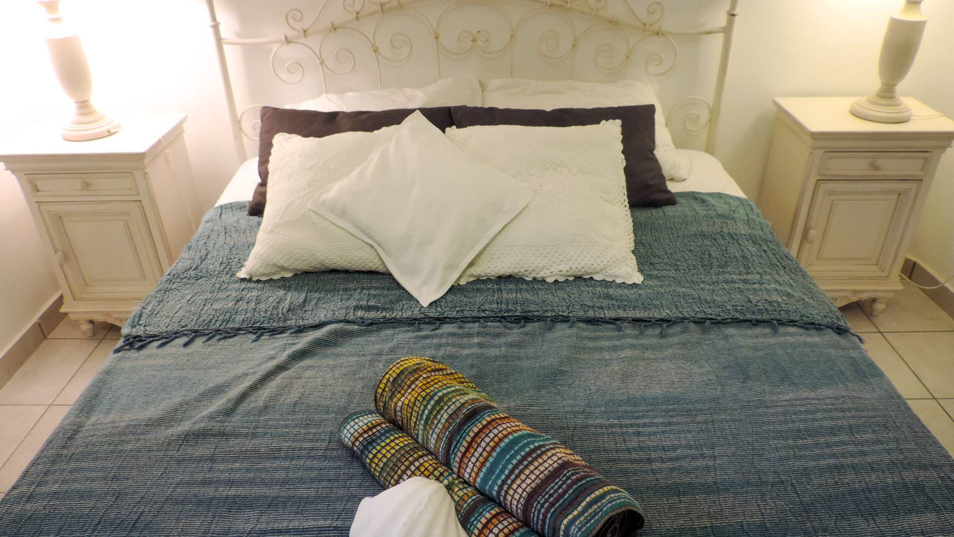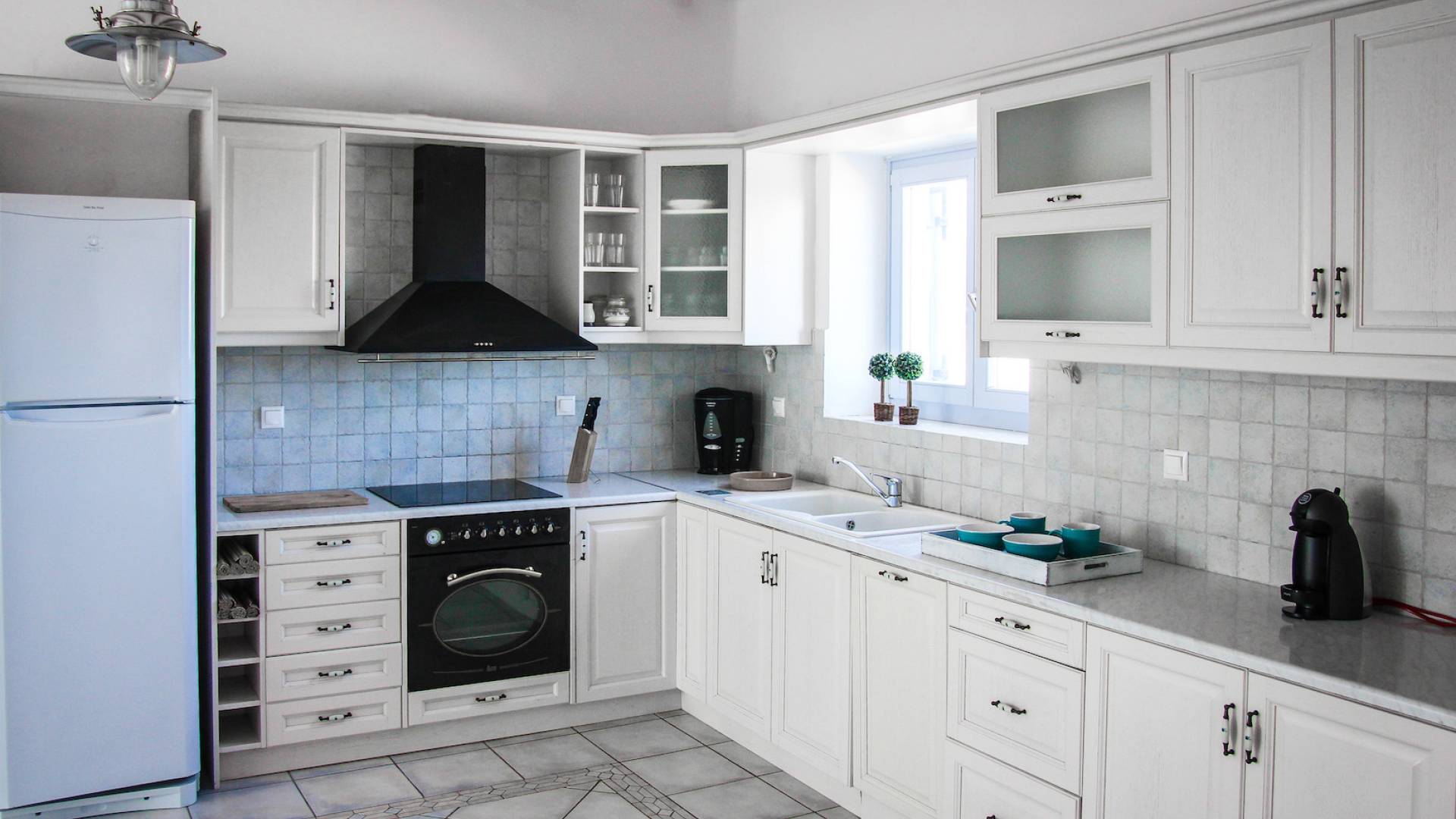 Antiparos Villa è composta da 3 livelli. Al primo livello (seminterrato) ci sono 3 camere da letto per 6 persone, 2 bagni, un ripostiglio con lavatrice e un grande soggiorno con camino, dove ci sono 2 letti singoli e un divano letto. Da questo livello si accede al cortile e alla piscina e tramite una scala interna si accede al primo piano.