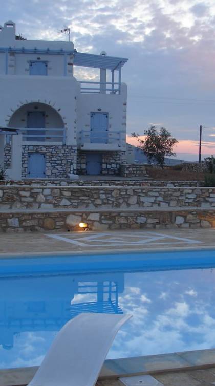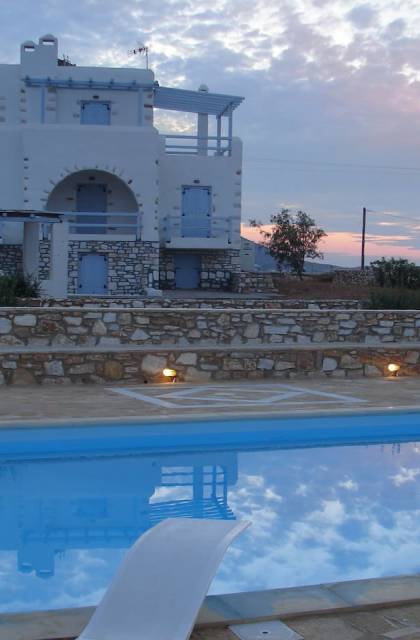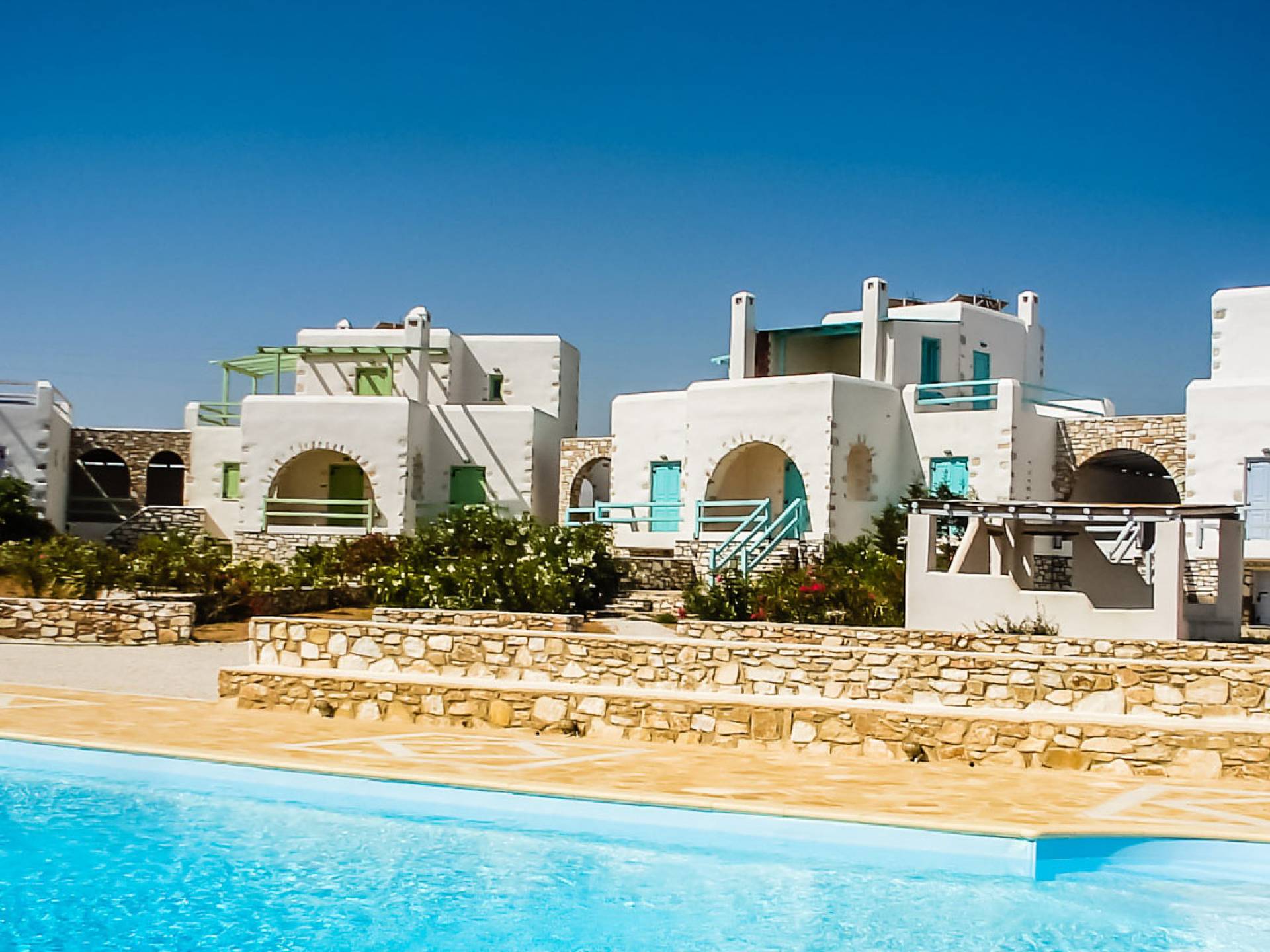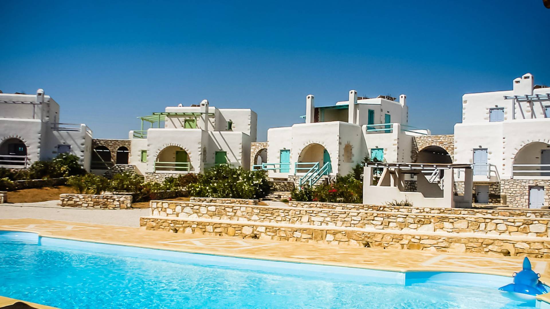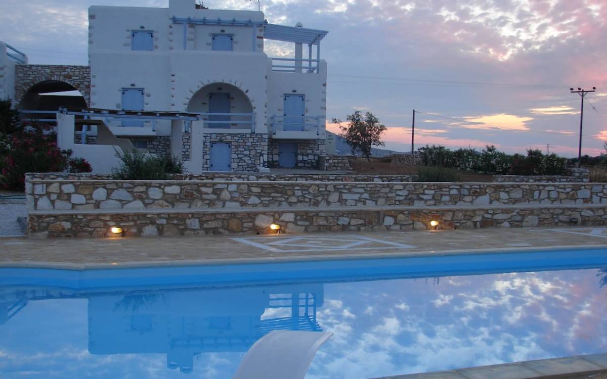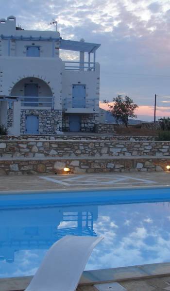 Il complesso è composto da cinque ville in affitto di capacità 4-14 persone. Tutte le ville sono progettate secondo la tradizionale architettura cicladica in modo che vi sia assoluta armonia con l'ambiente. I balconi e le terrazze offrono viste panoramiche sul Mar Egeo e sull'isola di Naxos. Le Ville sono separate da piccoli recinti in pietra e piantumazione. Ogni villa ha il proprio giardino, parcheggio coperto per due auto e ampie verande. Tutte le ville dispongono di cucine completamente attrezzate, TV e lettore DVD, ampio soggiorno, ampi terrazzi con tavoli da pranzo, camere da letto con letti matrimoniali o singoli, ampi bagni, ripostiglio, lavatrice e lavastoviglie, ferro e asse da stiro, wifi, aria condizionata in le camere da letto, camino.