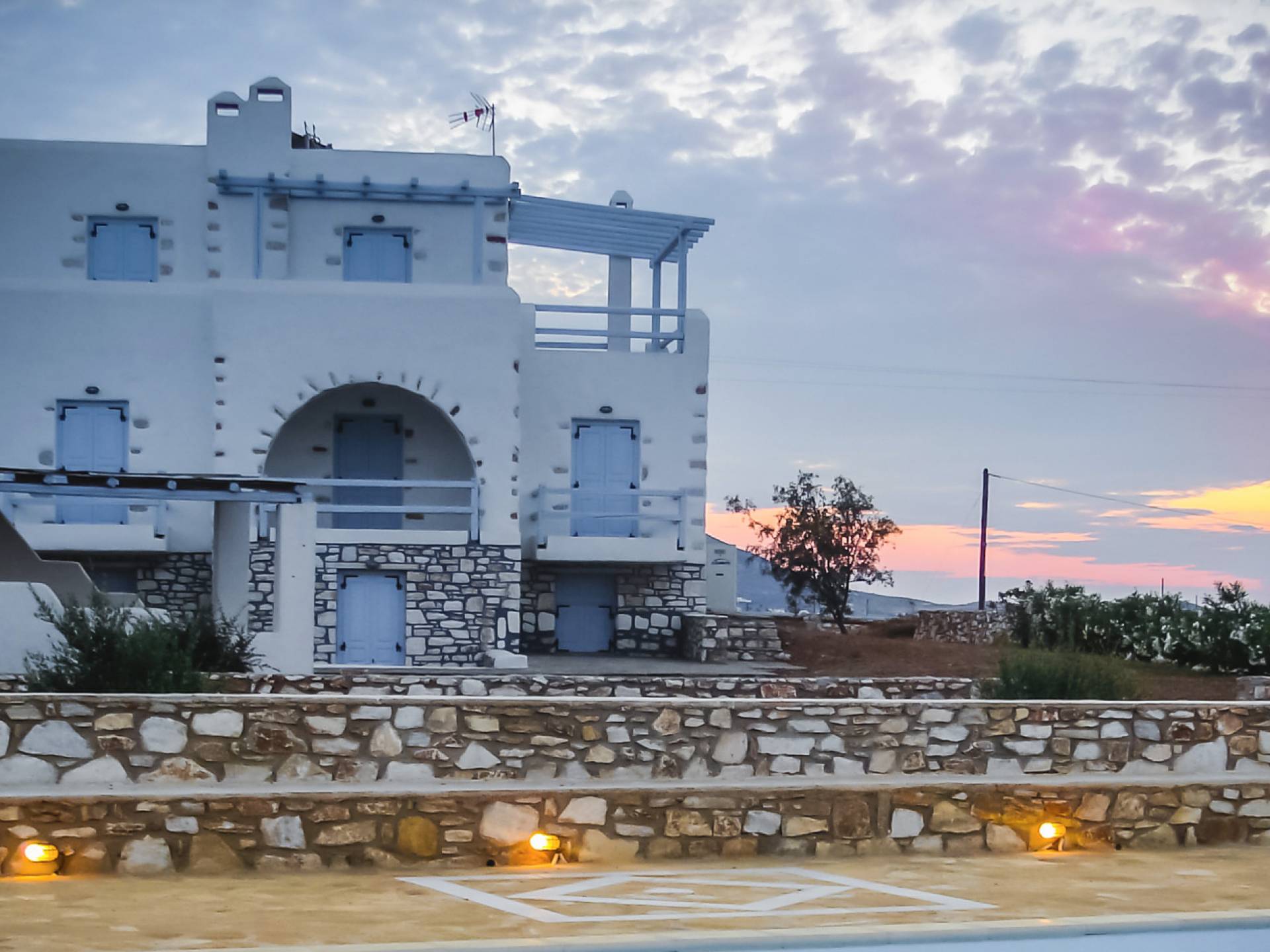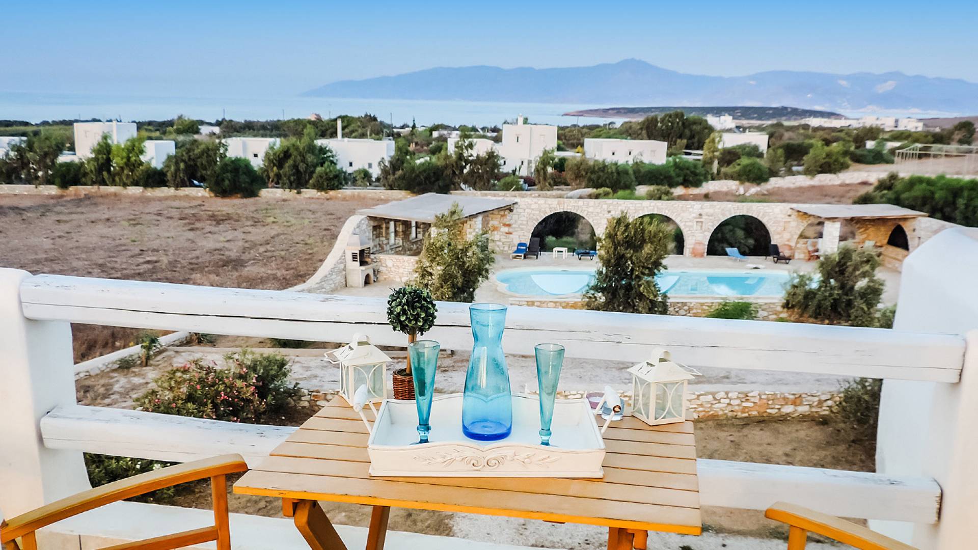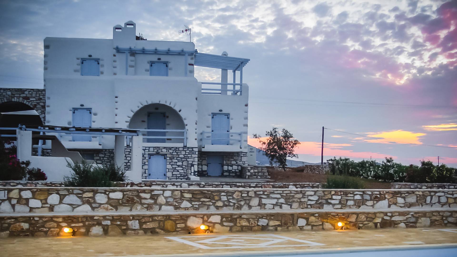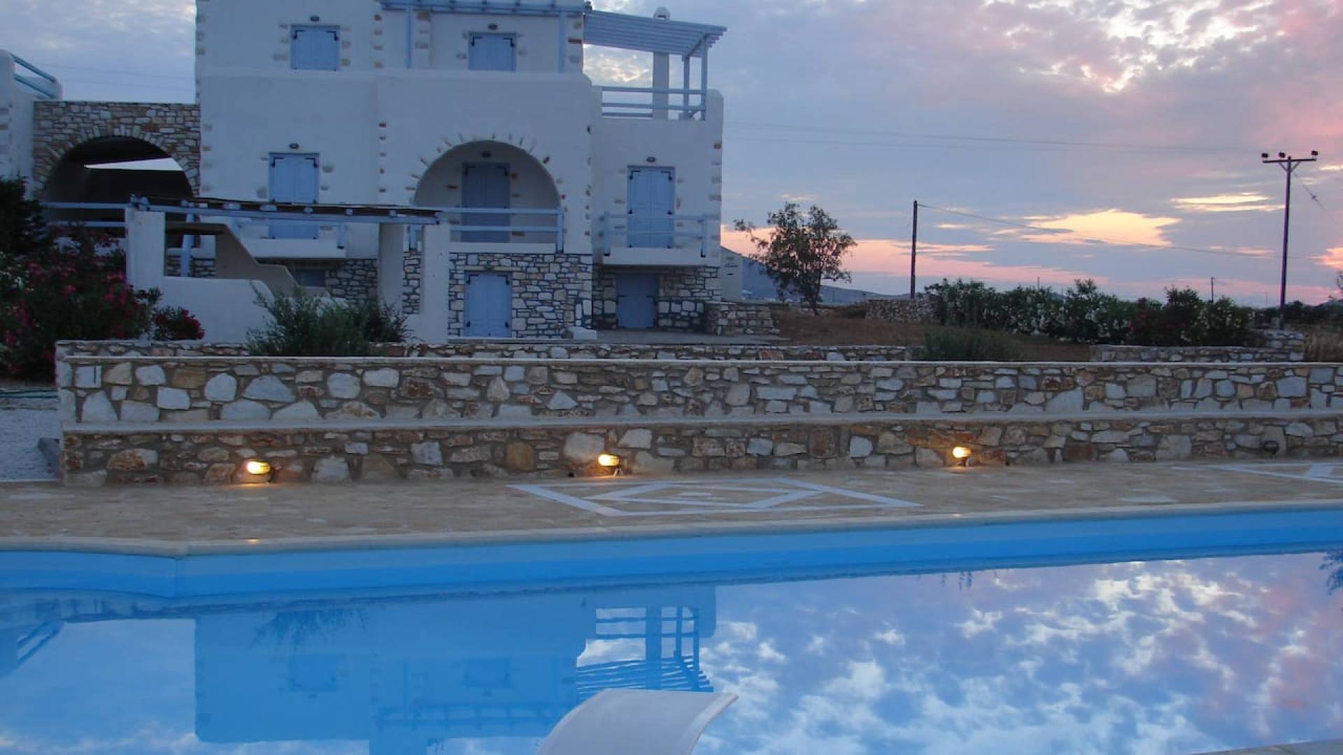 Il complesso è composto da cinque ville in affitto di capacità 4-14 persone. Tutte le ville sono progettate secondo la tradizionale architettura cicladica in modo che vi sia assoluta armonia con l'ambiente. I balconi e le terrazze offrono viste panoramiche sul Mar Egeo e sull'isola di Naxos. Le Ville sono separate da piccoli recinti in pietra e piantumazione. Ogni villa ha il proprio giardino, parcheggio coperto per due auto e ampie verande. Tutte le ville dispongono di cucine completamente attrezzate, TV e lettore DVD, ampio soggiorno, ampi terrazzi con tavoli da pranzo, camere da letto con letti matrimoniali o singoli, ampi bagni, ripostiglio, lavatrice e lavastoviglie, ferro e asse da stiro, wifi, aria condizionata in le camere da letto, camino.