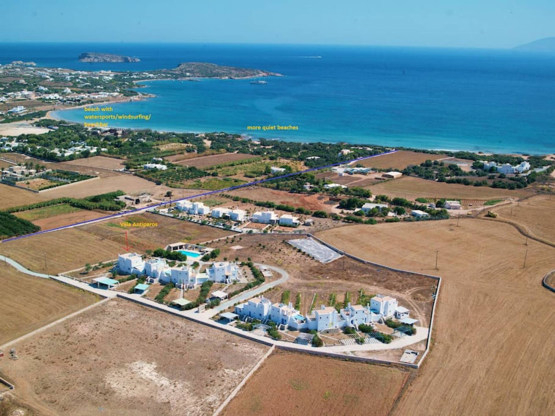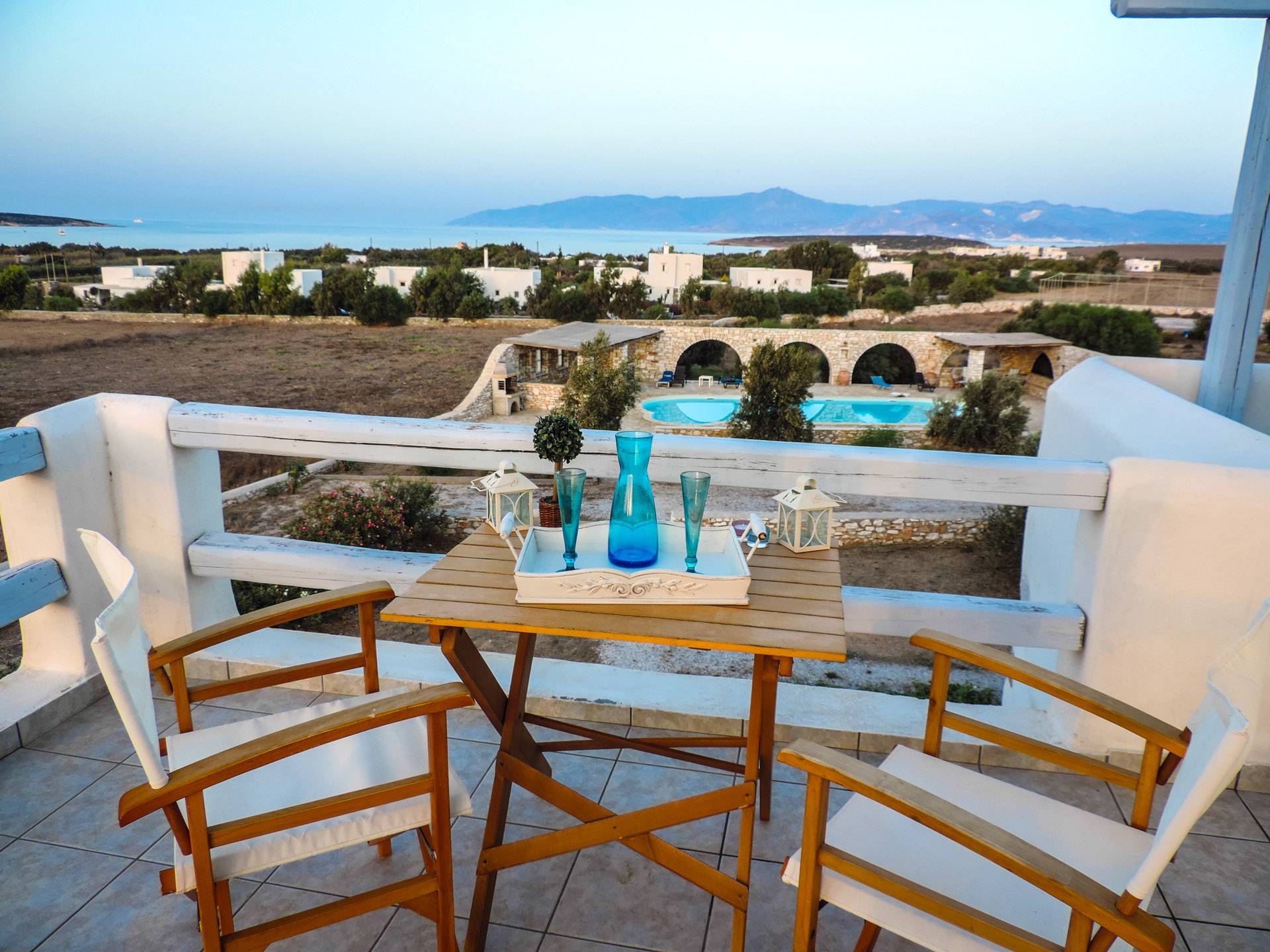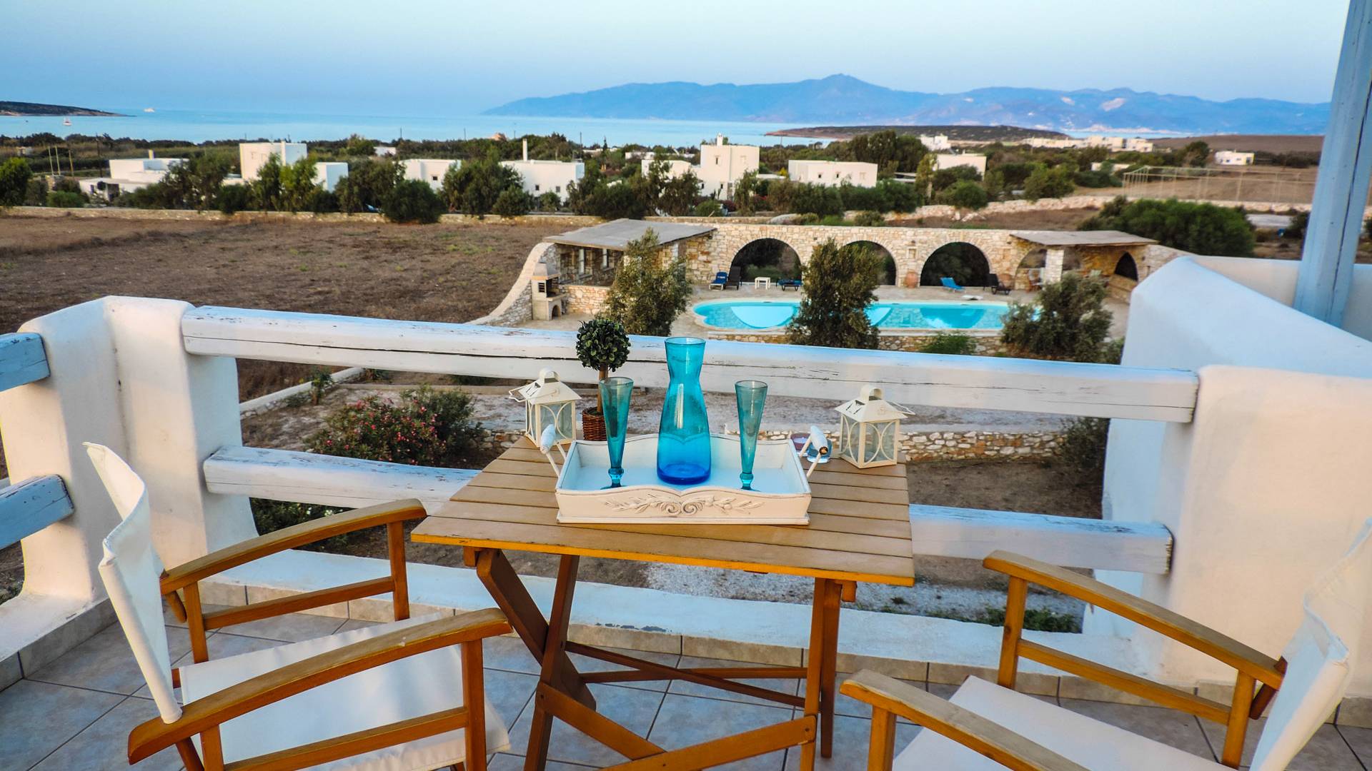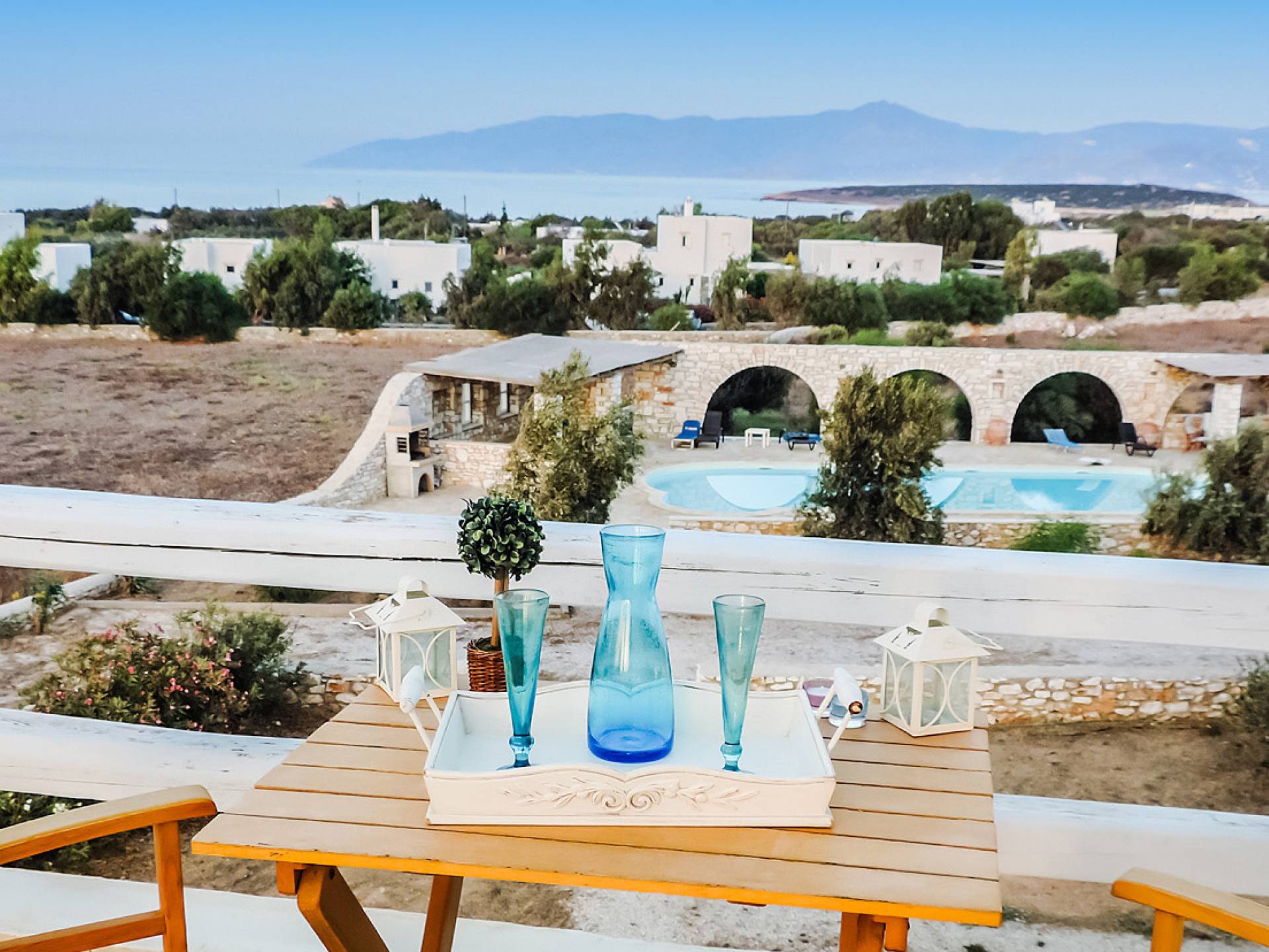 Il complesso è composto da cinque ville in affitto di capacità 4-14 persone. Tutte le ville sono progettate secondo la tradizionale architettura cicladica in modo che vi sia assoluta armonia con l'ambiente. I balconi e le terrazze offrono viste panoramiche sul Mar Egeo e sull'isola di Naxos. Le Ville sono separate da piccoli recinti in pietra e piantumazione. Ogni villa ha il proprio giardino, parcheggio coperto per due auto e ampie verande. Tutte le ville dispongono di cucine completamente attrezzate, TV e lettore DVD, ampio soggiorno, ampi terrazzi con tavoli da pranzo, camere da letto con letti matrimoniali o singoli, ampi bagni, ripostiglio, lavatrice e lavastoviglie, ferro e asse da stiro, wifi, aria condizionata in le camere da letto, camino.
