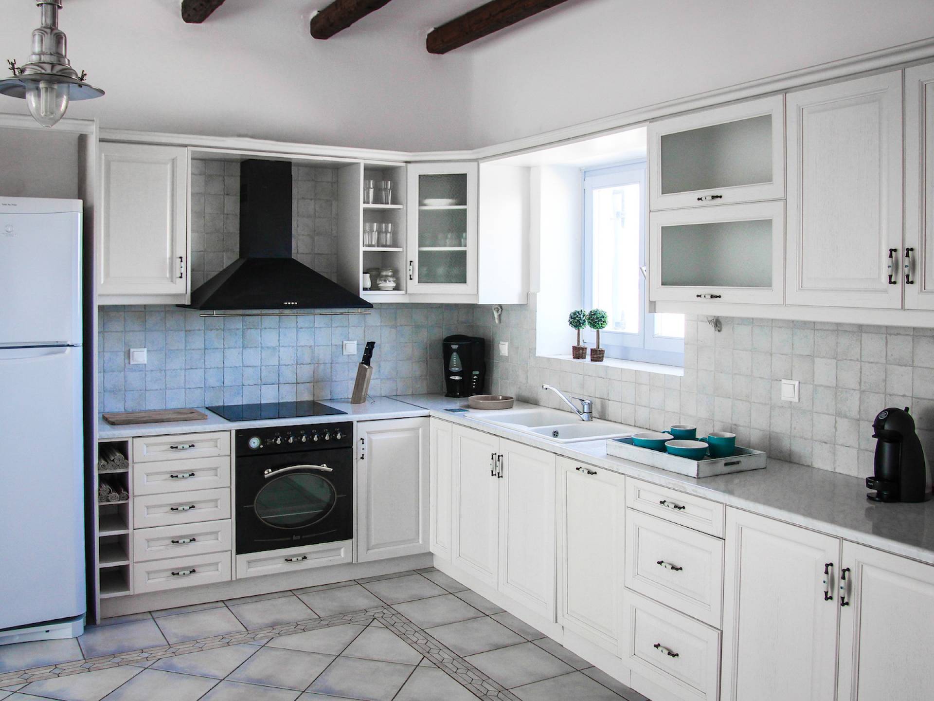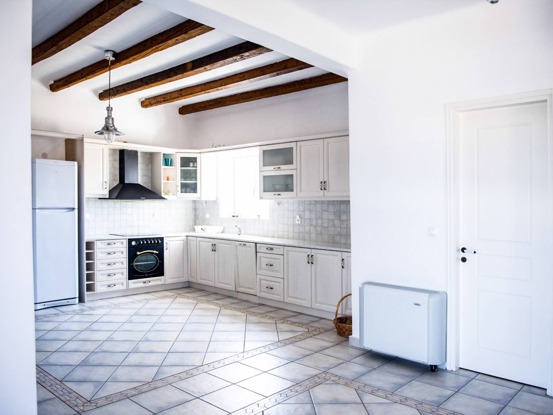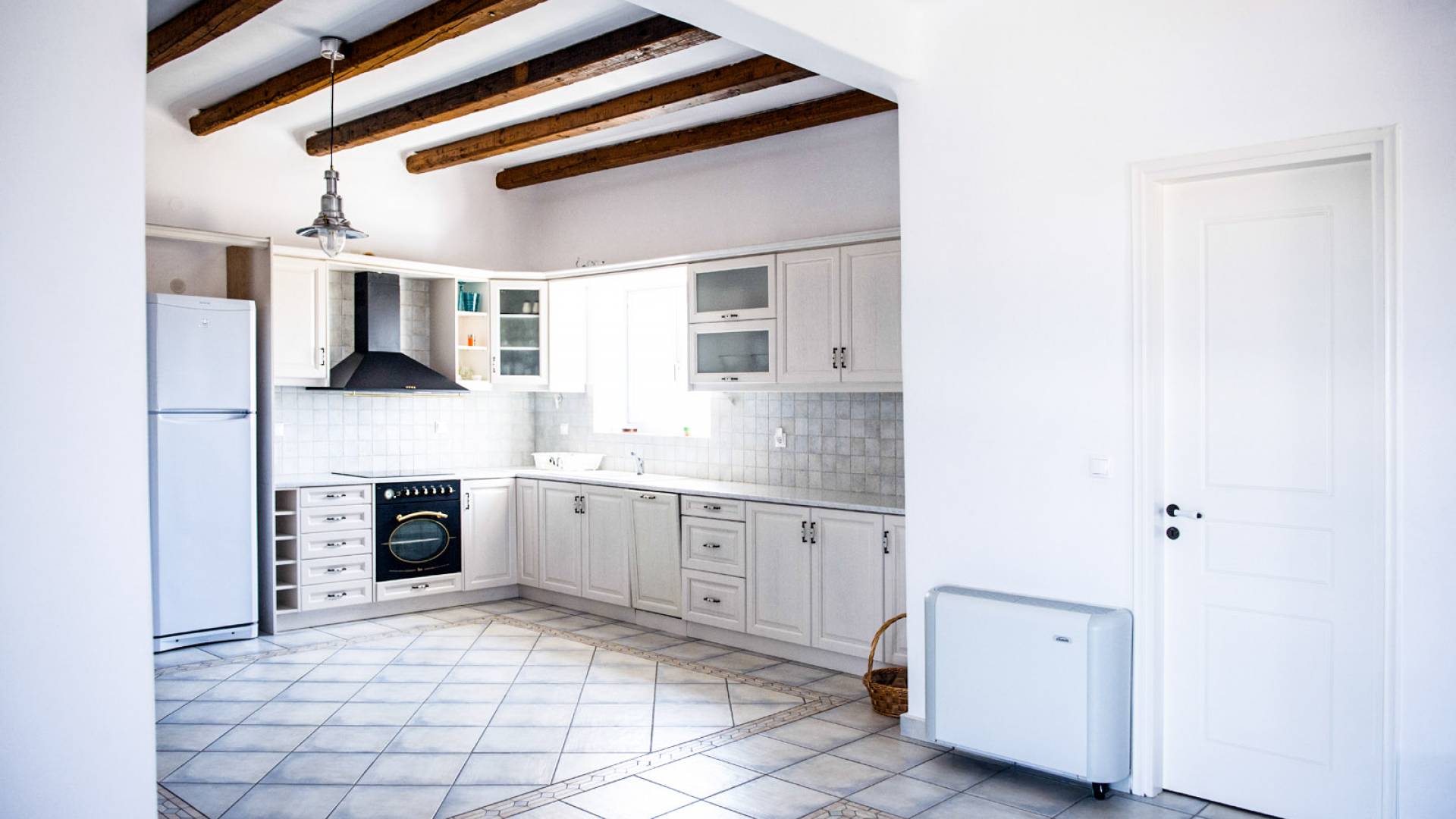 Al secondo livello c'è l'ingresso principale, una cucina, sala da pranzo, un grande soggiorno con camino, 1 bagno, e un semi-esterno con un grande tavolo da pranzo con una scala che conduce al giardino e la piscina. Al terzo livello ci sono 2 camere da letto, 1 bagno e verande con pergolato da cui si può vedere il golfo di Naoussa, la spiaggia di Lageri, Santa Maria e l'isola di Naxos.