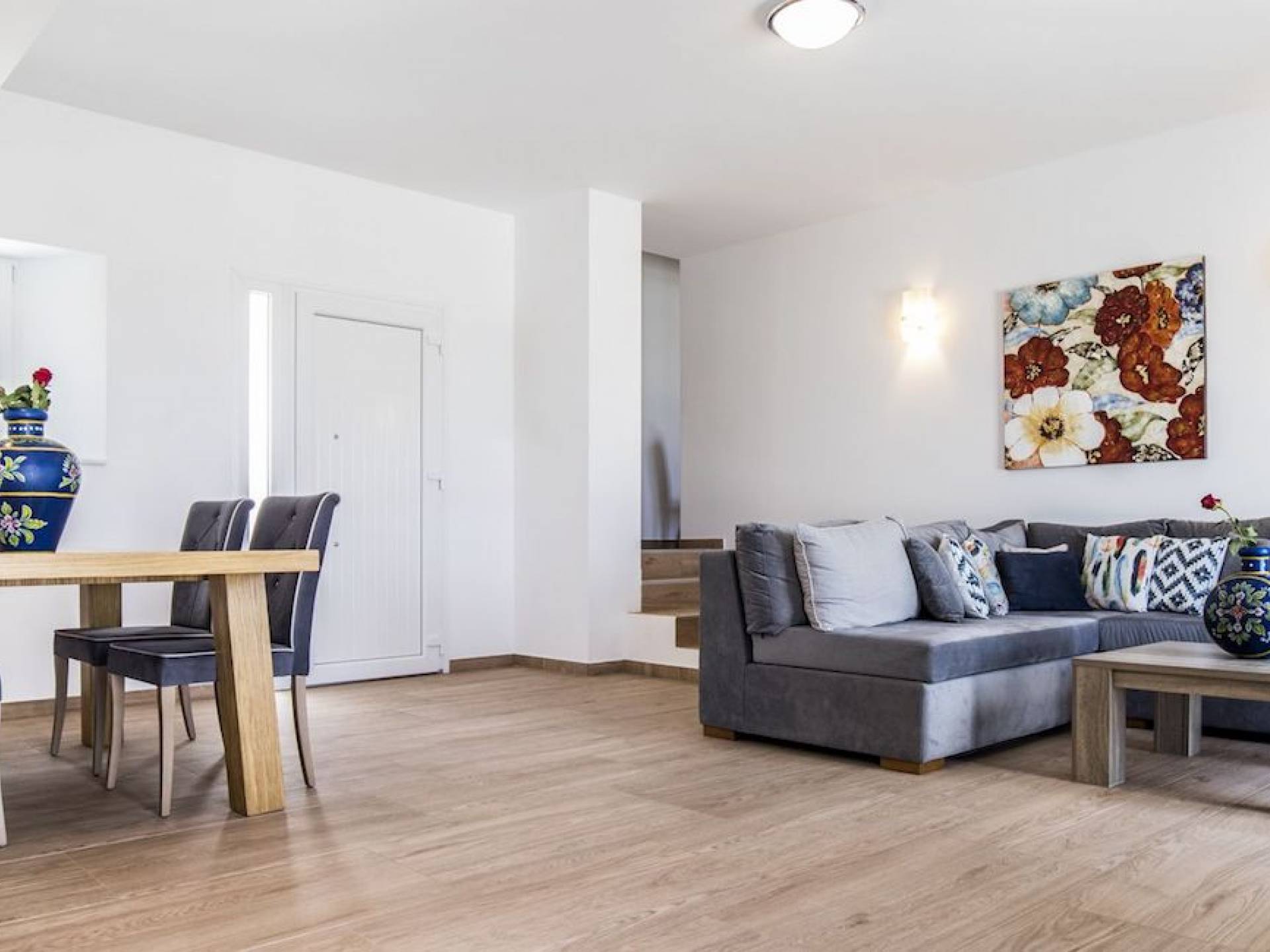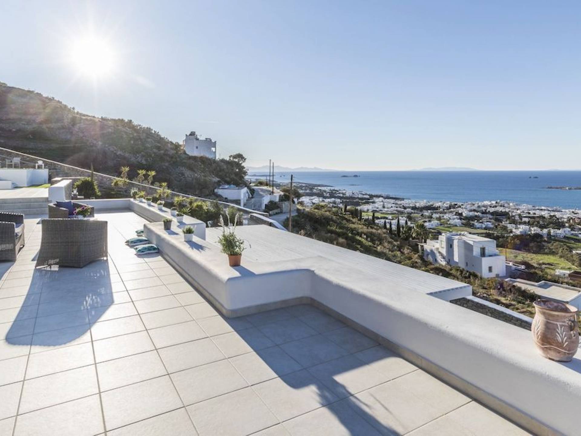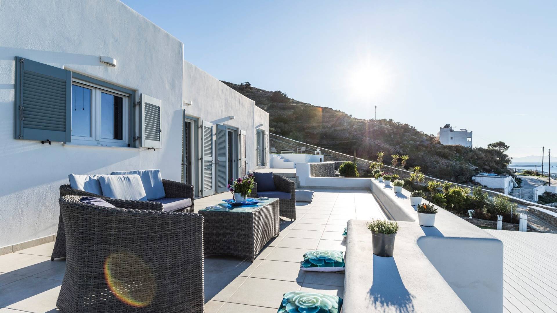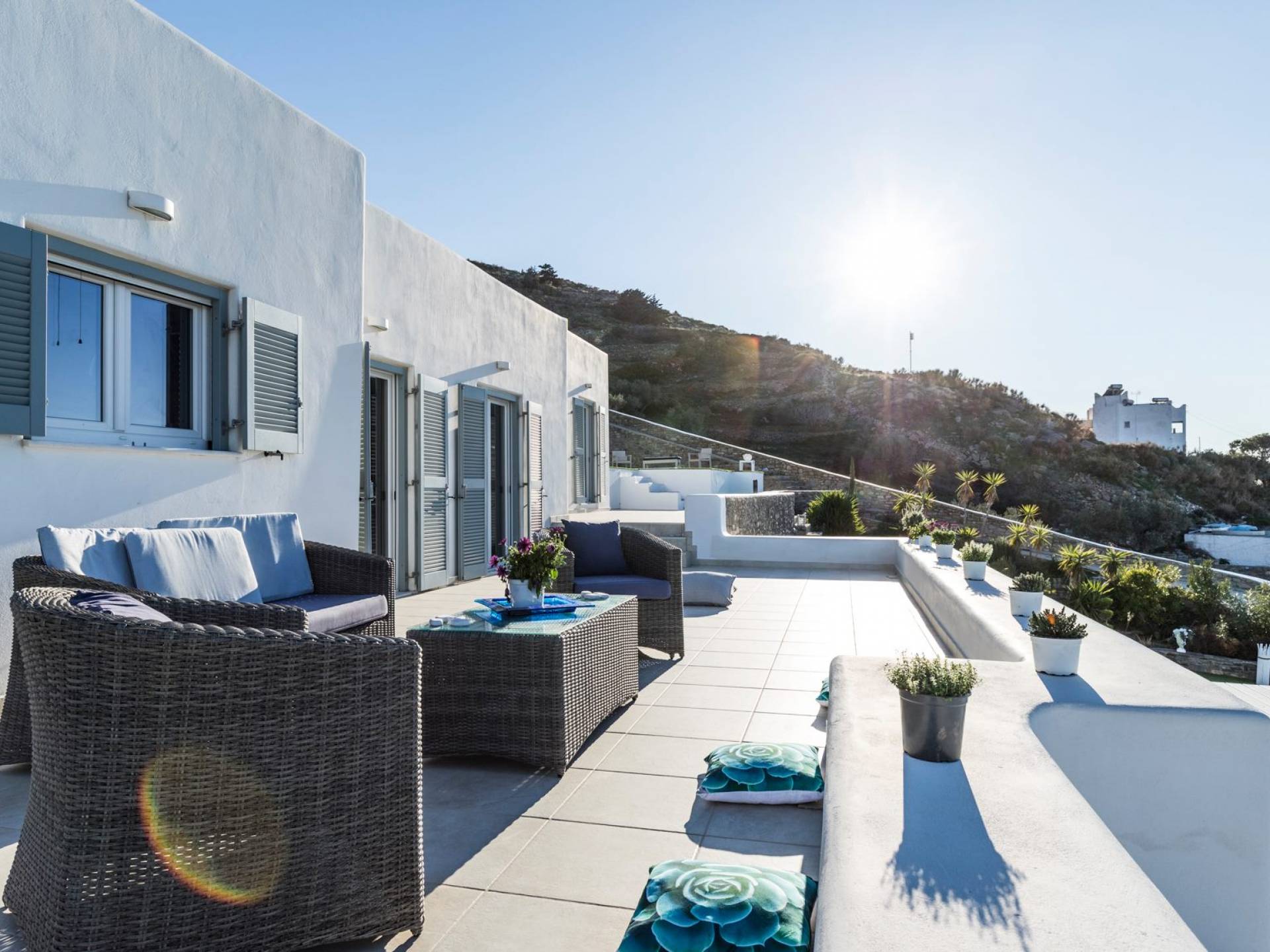 L'equilibrio dei materiali e degli elementi decorativi con la semplicità dello spazio, esalta la serenità e offre al visitatore un soggiorno confortevole e lussuoso. I servizi della villa coprono anche il visitatore più esigente, avendo tutti i comfort che ci si aspetterebbe di trovare in una moderna residenza. Dalla cucina completamente attrezzata, alle camere confortevoli e climatizzate, tutto è stato pensato e realizzato per offrirvi un'esperienza di soggiorno indimenticabile. Lascia le porte e le finestre aperte per goderti il sole glorioso che inonda la casa e la magia del mare che si diffonde davanti a te così come il bellissimo tramonto!
