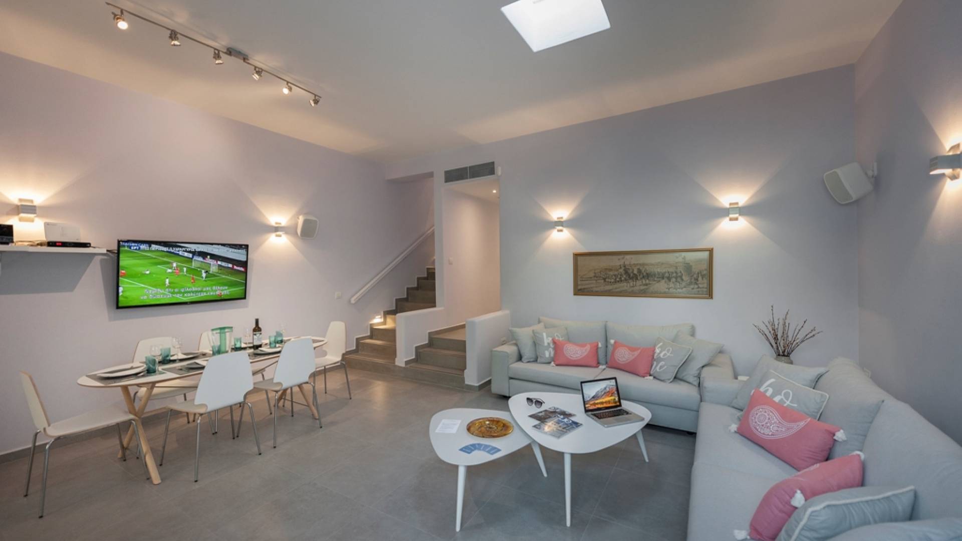 3 camere matrimoniali con Smart TV (Netflix ecc.), 3 bagni e 1 WC, soggiorno con tavolo da pranzo per 8 persone. Grande terrazza al 1 ° piano, cortile anteriore e posteriore con tavoli in marmo.