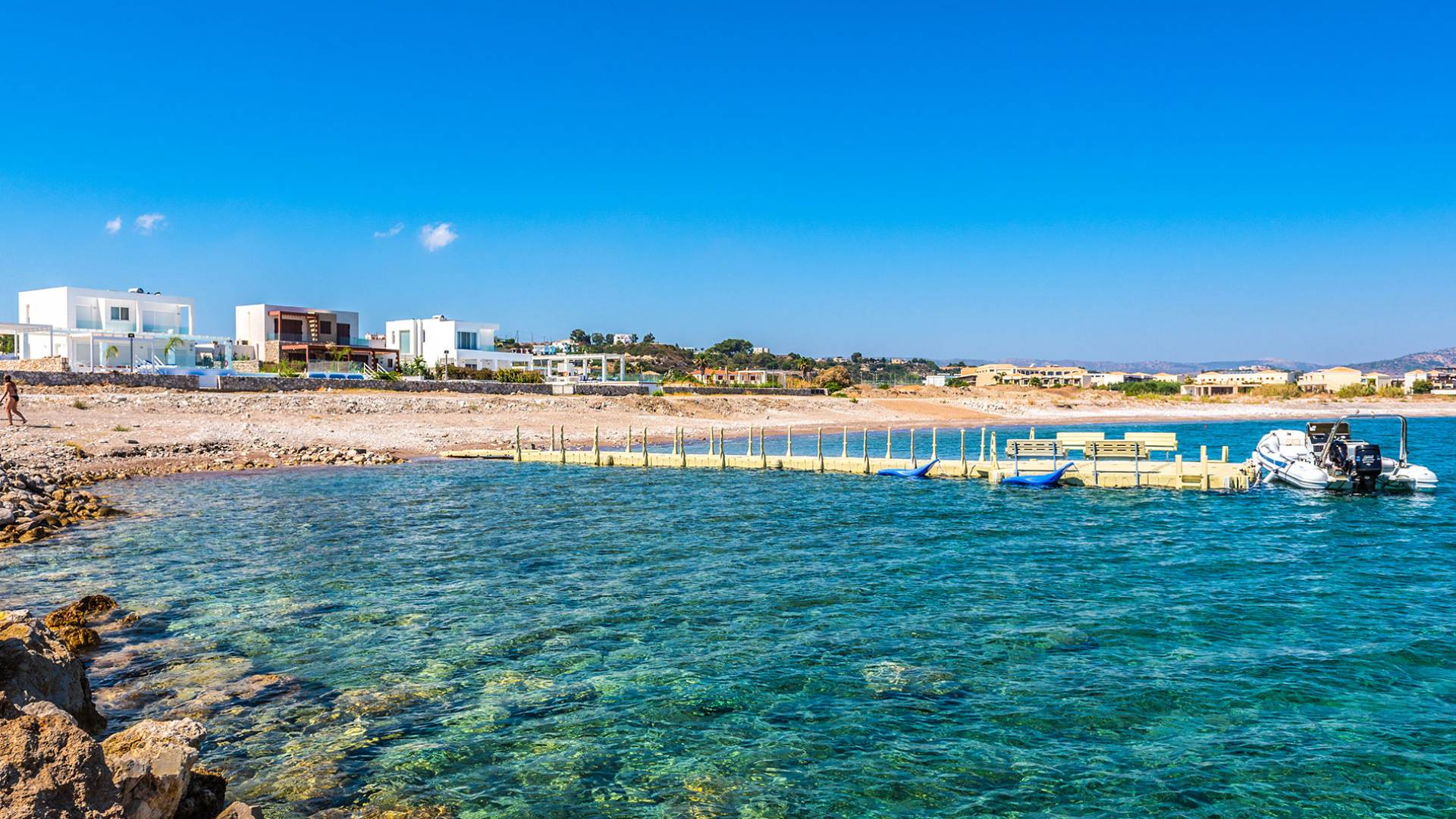 La località di Kolymbia, dove si trova la villa, offre eccellenti taverne sul mare, caffetterie, supermercati, negozi di souvenir e locali notturni. Durante il giorno, i visitatori possono praticare una varietà di sport acquatici in spiaggia, gite in barca e altre attività estive. La villa sulla spiaggia di Maria è anche una base ideale per coloro che desiderano sfruttare al massimo il loro tempo sull'isola visitando luoghi di importanza storica, culturale e di bellezza naturale. Lindos e la sua famosa antica Acropoli greca sono a soli 30 minuti di auto. La città di Rodi e la città medievale, un monumento del patrimonio culturale dell'UNESCO, distano solo 25 km dalla villa. 7 sorgenti, o “Epta Piges” come viene comunemente chiamata, è un luogo di bellezza naturale unico e una riserva faunistica raggiungibile in auto in 15 minuti.