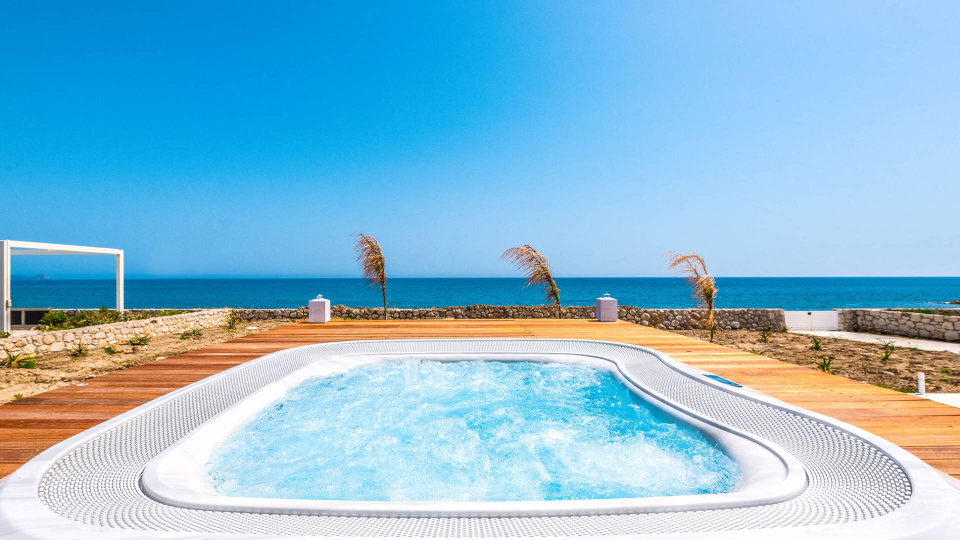 Colore blu, sole e lusso, niente può battere questa combinazione. Cos'altro c'è da chiedere per le tue vacanze? Concediti una piscina privata riscaldata nell'intimità della tua villa, sia interna che esterna. L'acqua è curativa e terapeutica e laverà…