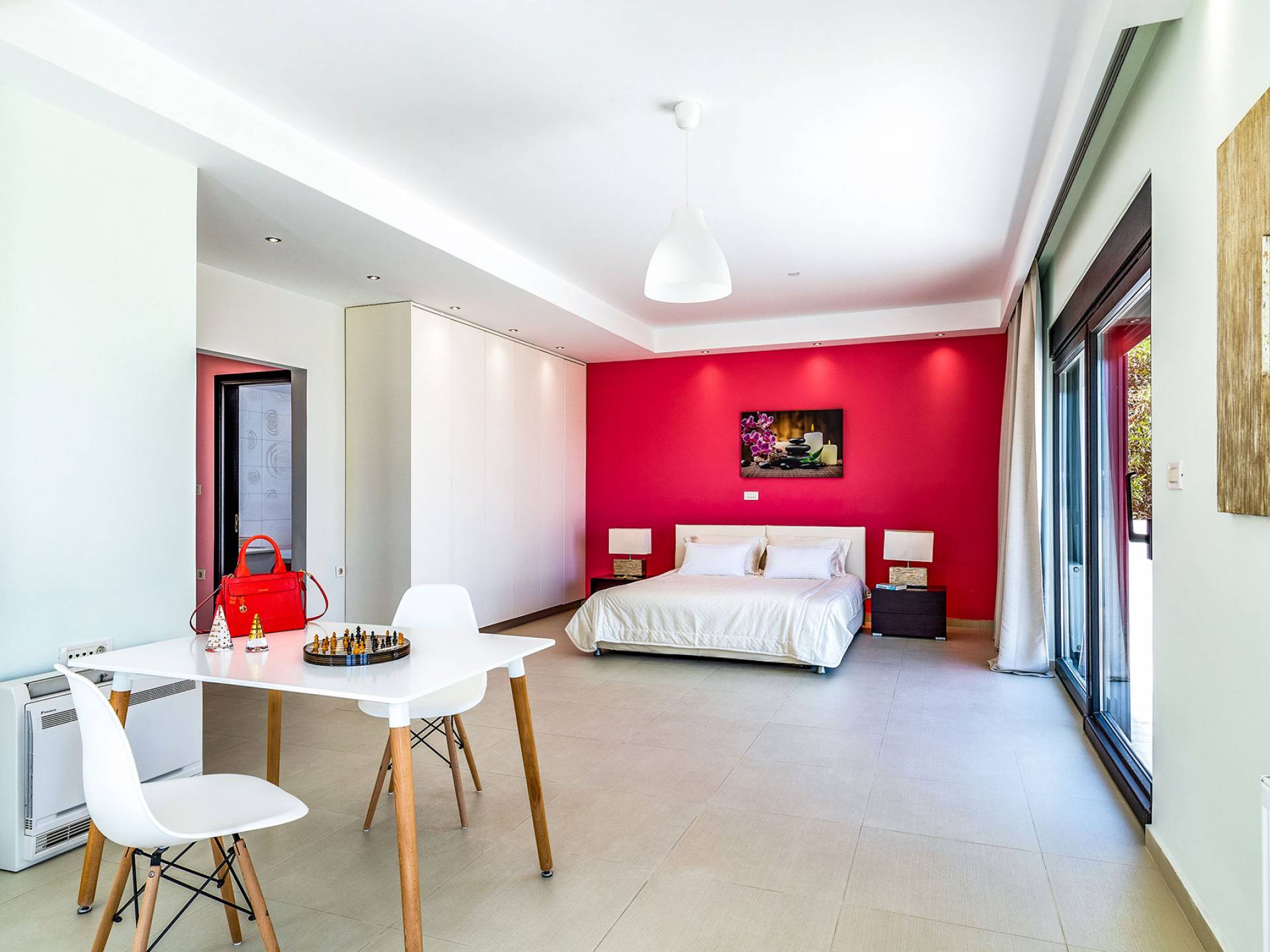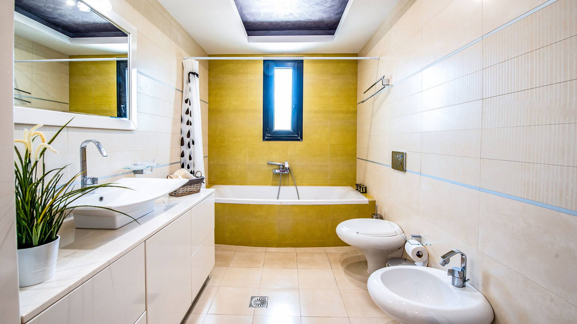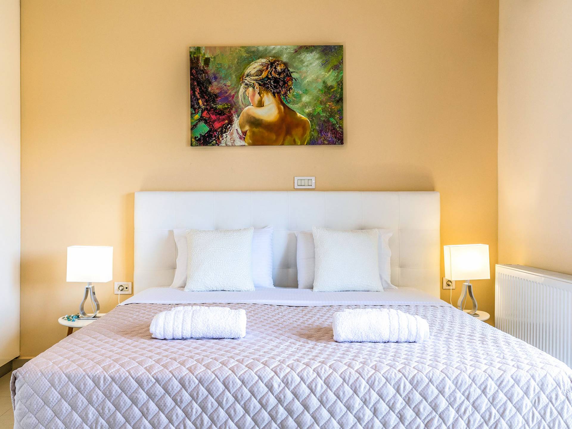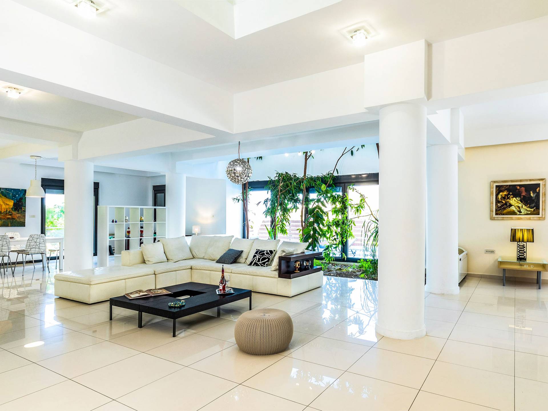 La villa offre camere spaziose e lussuose che si aprono su balconi privati e aggiungendo il divano letto matrimoniale può ospitare fino a 8 persone. Dispone inoltre di una cucina funzionale, completamente attrezzata con elettrodomestici moderni, una confortevole zona pranzo, un soggiorno a pianta aperta, un centro di intrattenimento con una grande TV a schermo piatto, un'elegante sala studio con biblioteca e ampi bagni con idromassaggio. La casa è progettata per offrire un soggiorno confortevole agli ospiti con tutto il necessario per farli sentire a casa. Ci sono molti servizi e caratteristiche come aria condizionata in tutti i due piani, connessione internet ad alta velocità, lavatrice e ferro da stiro, asciugacapelli, cassetta di sicurezza, ascensore, ampie verande arredate con vista mare, parcheggio privato, piscina e Attrezzature per il barbecue.