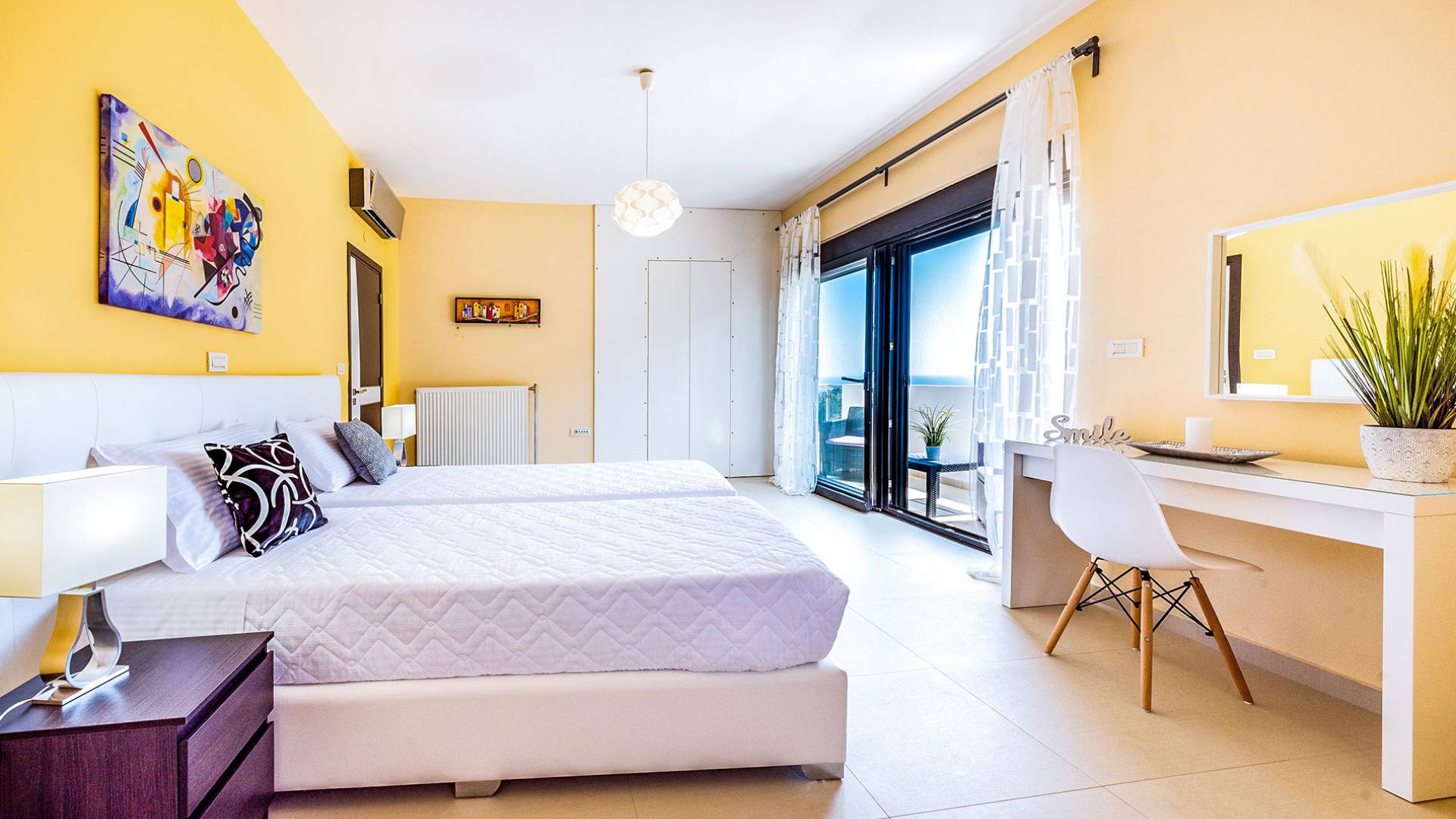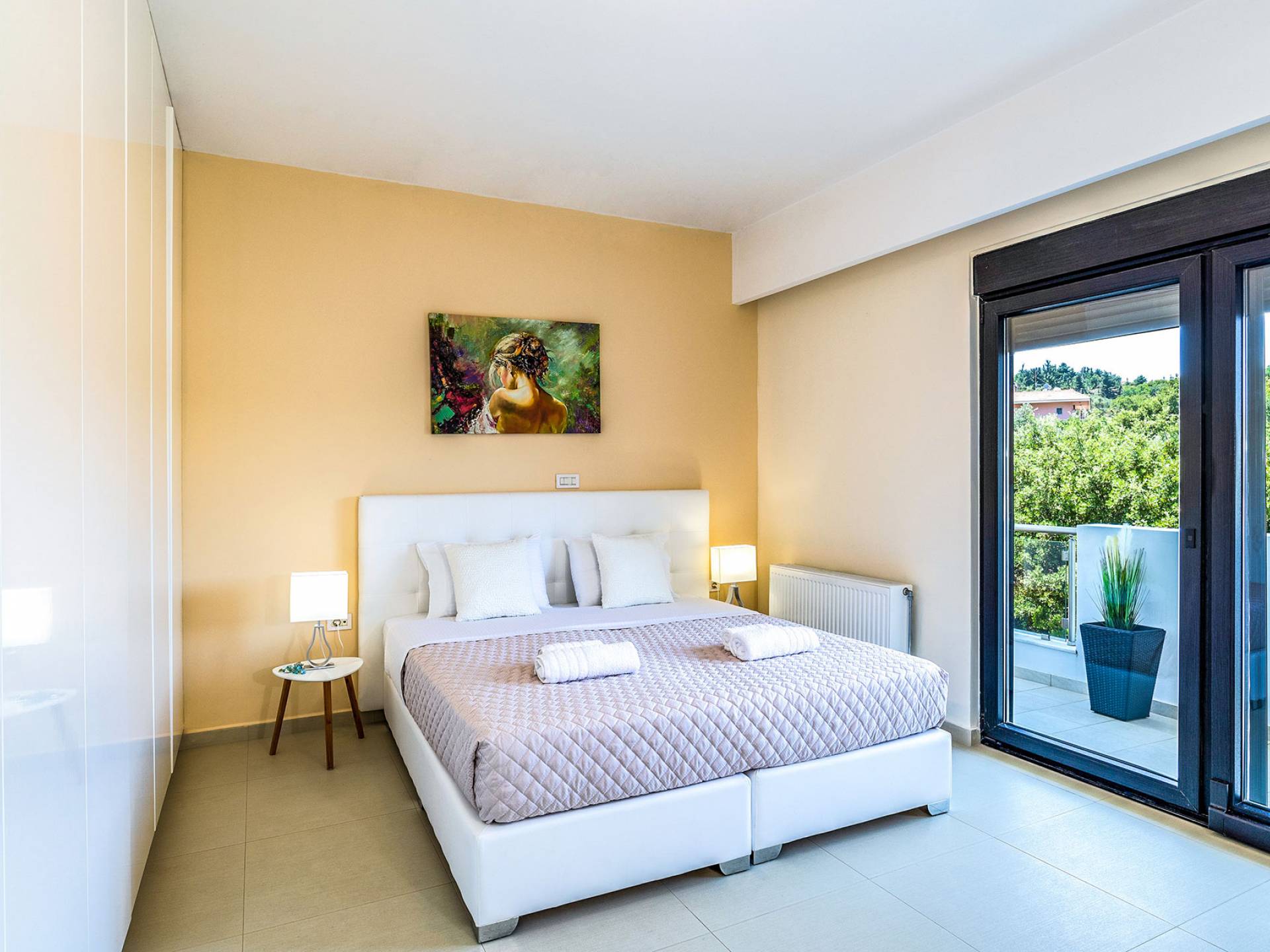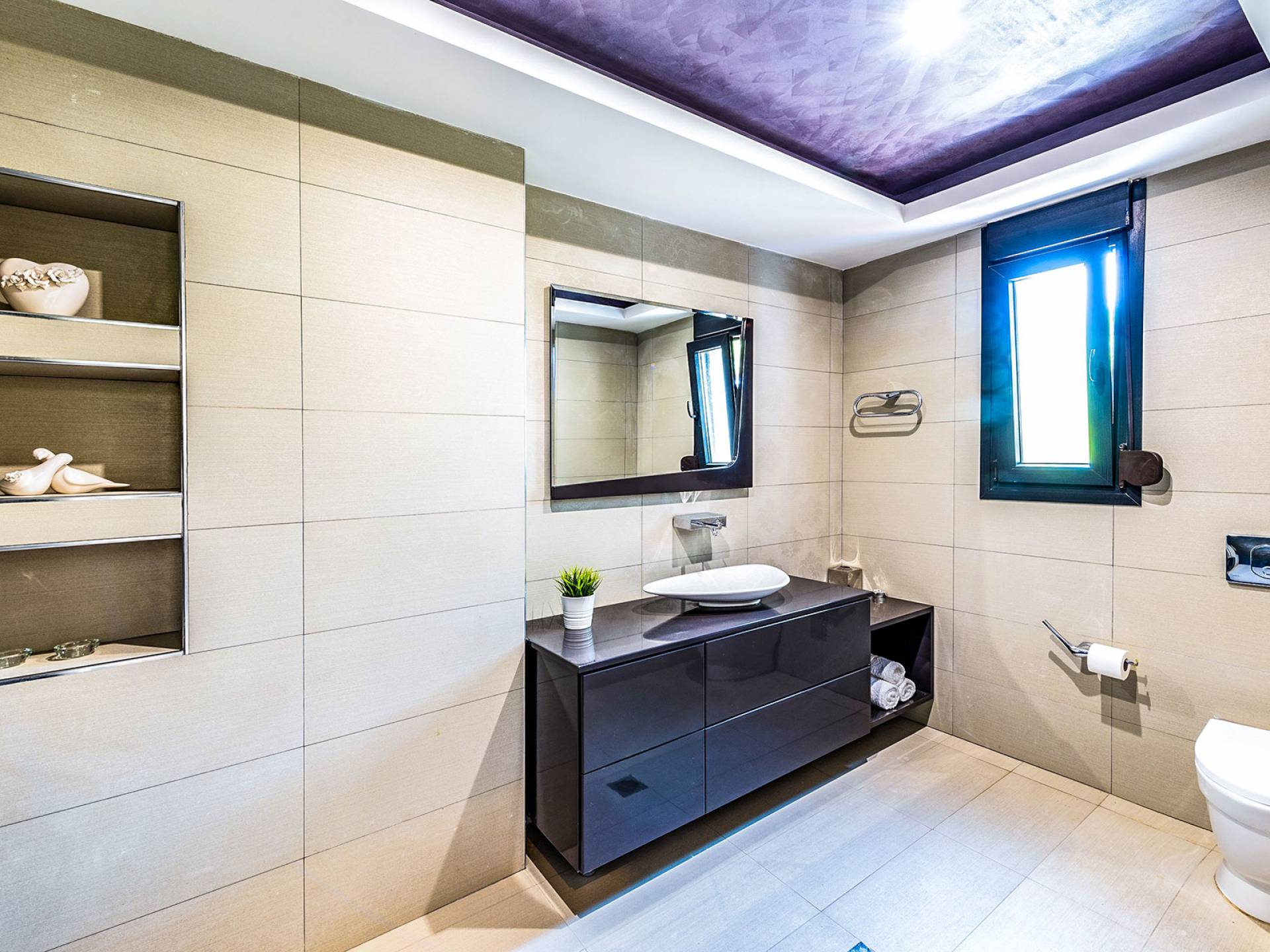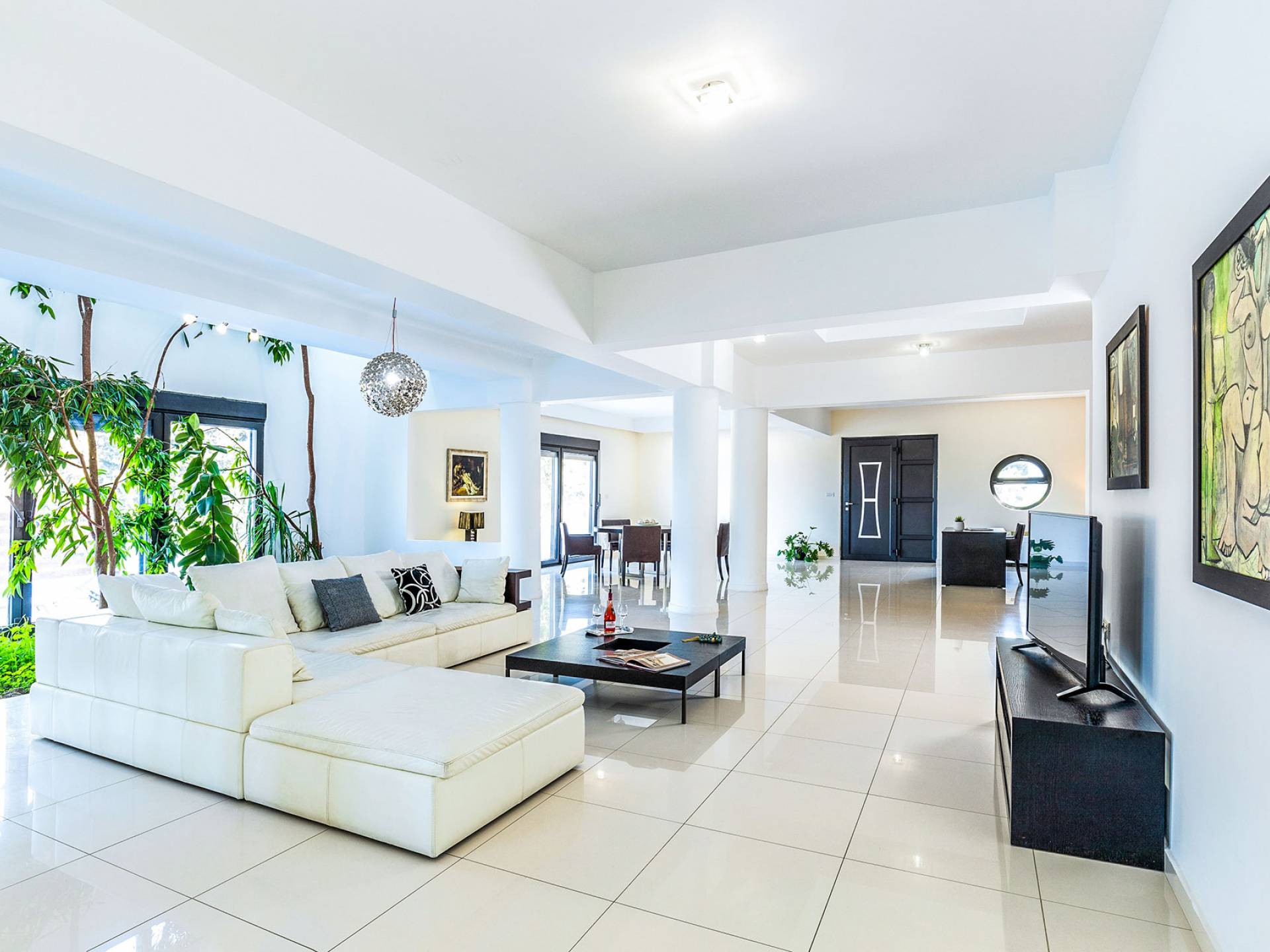 La villa offre camere spaziose e lussuose che si aprono su balconi privati e aggiungendo il divano letto matrimoniale può ospitare fino a 8 persone. Dispone inoltre di una cucina funzionale, completamente attrezzata con elettrodomestici moderni, una confortevole zona pranzo, un soggiorno a pianta aperta, un centro di intrattenimento con una grande TV a schermo piatto, un'elegante sala studio con biblioteca e ampi bagni con idromassaggio. La casa è progettata per offrire un soggiorno confortevole agli ospiti con tutto il necessario per farli sentire a casa. Ci sono molti servizi e caratteristiche come aria condizionata in tutti i due piani, connessione internet ad alta velocità, lavatrice e ferro da stiro, asciugacapelli, cassetta di sicurezza, ascensore, ampie verande arredate con vista mare, parcheggio privato, piscina e Attrezzature per il barbecue.