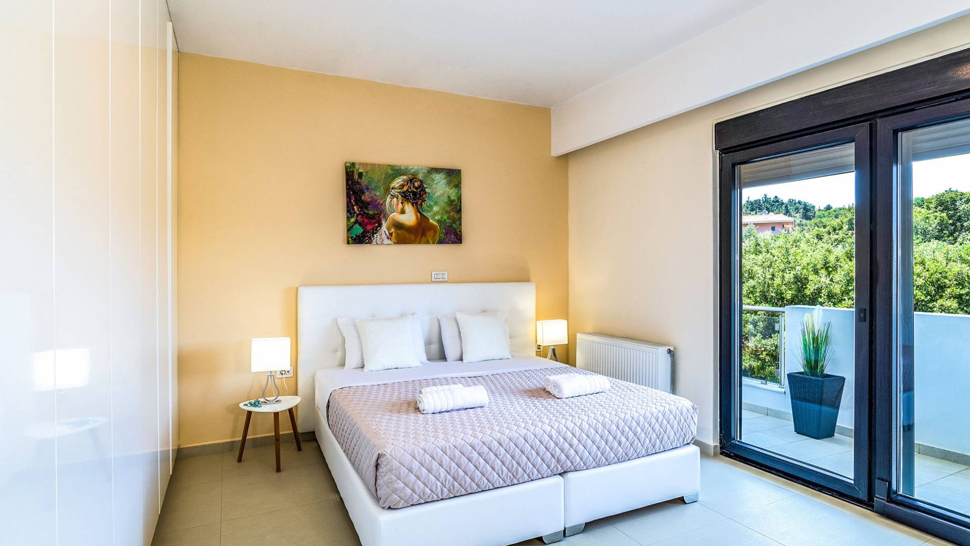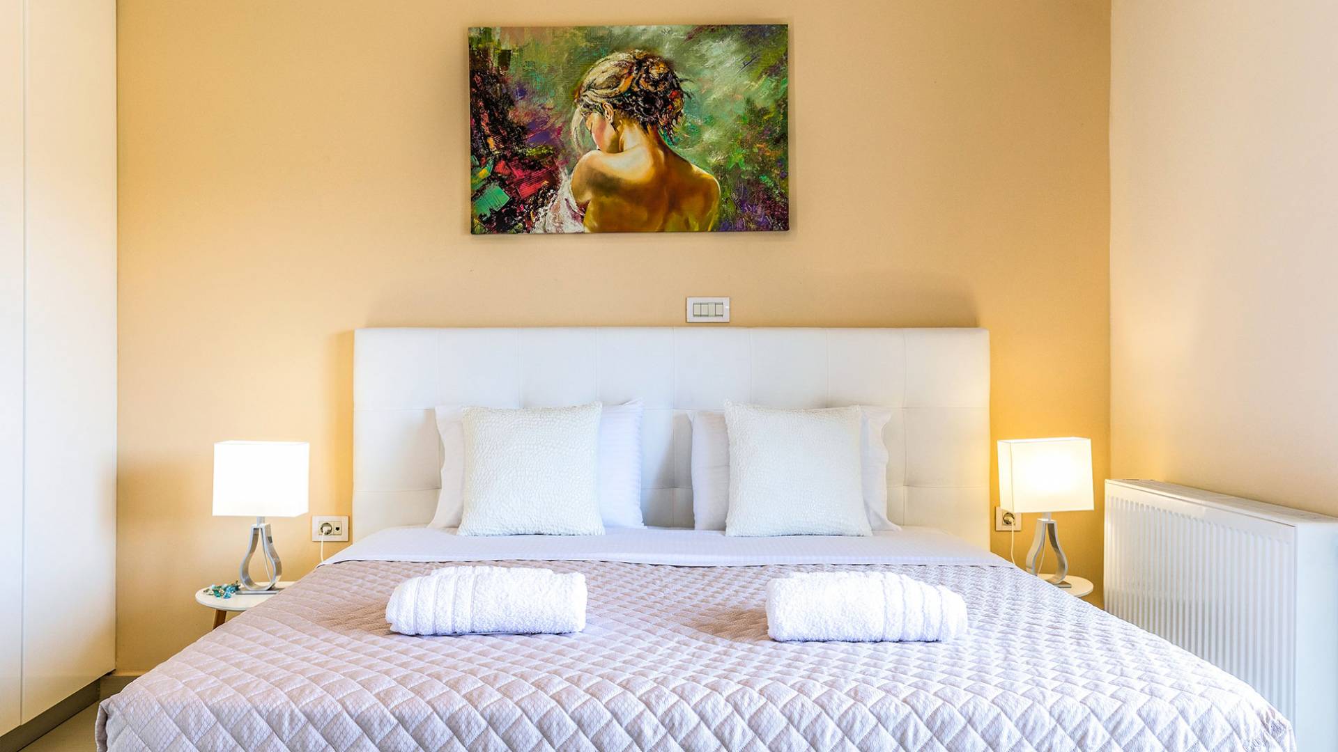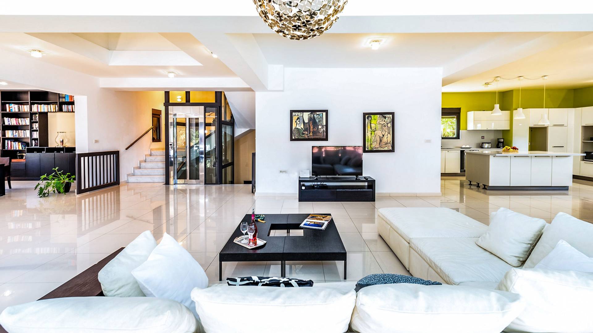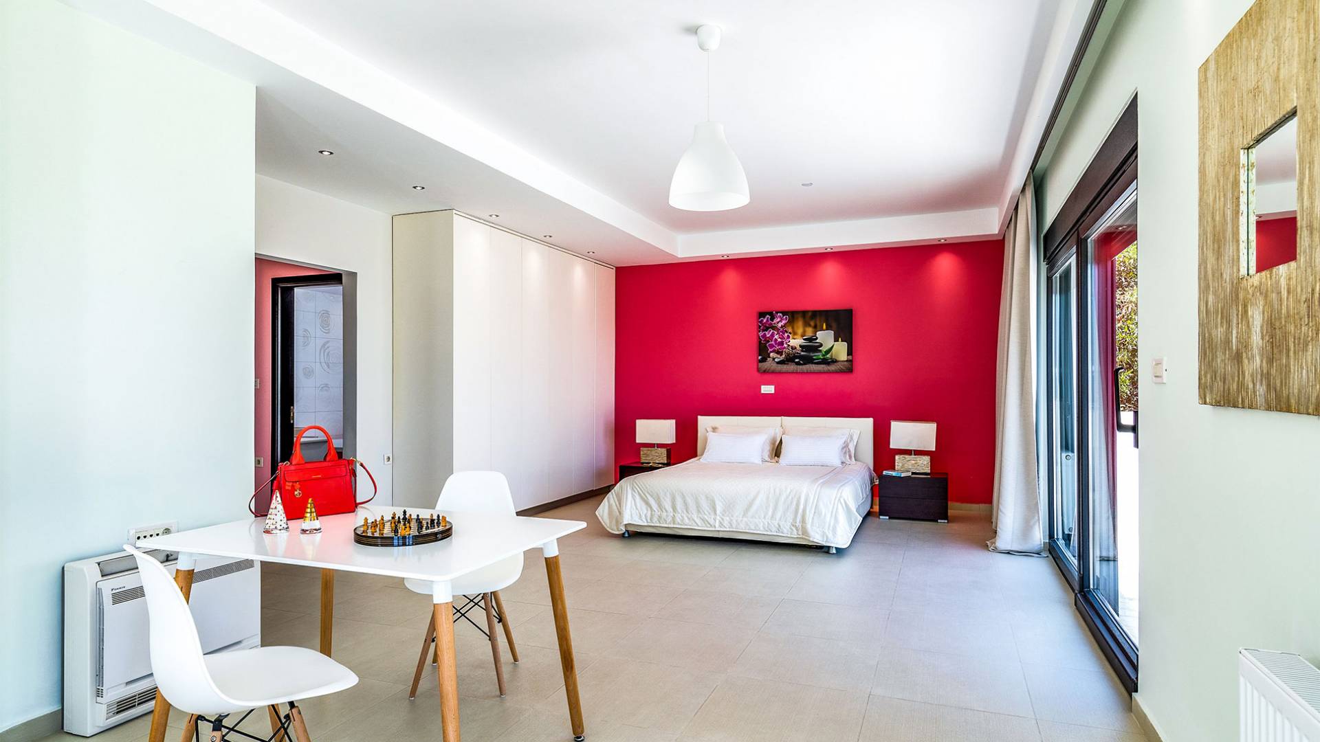 La villa offre camere spaziose e lussuose che si aprono su balconi privati e aggiungendo il divano letto matrimoniale può ospitare fino a 8 persone. Dispone inoltre di una cucina funzionale, completamente attrezzata con elettrodomestici moderni, una confortevole zona pranzo, un soggiorno a pianta aperta, un centro di intrattenimento con una grande TV a schermo piatto, un'elegante sala studio con biblioteca e ampi bagni con idromassaggio. La casa è progettata per offrire un soggiorno confortevole agli ospiti con tutto il necessario per farli sentire a casa. Ci sono molti servizi e caratteristiche come aria condizionata in tutti i due piani, connessione internet ad alta velocità, lavatrice e ferro da stiro, asciugacapelli, cassetta di sicurezza, ascensore, ampie verande arredate con vista mare, parcheggio privato, piscina e Attrezzature per il barbecue.