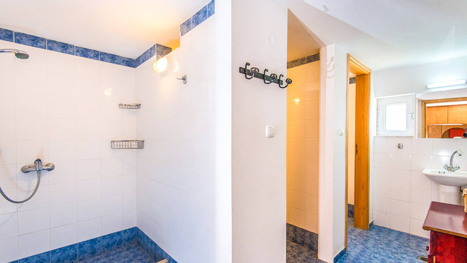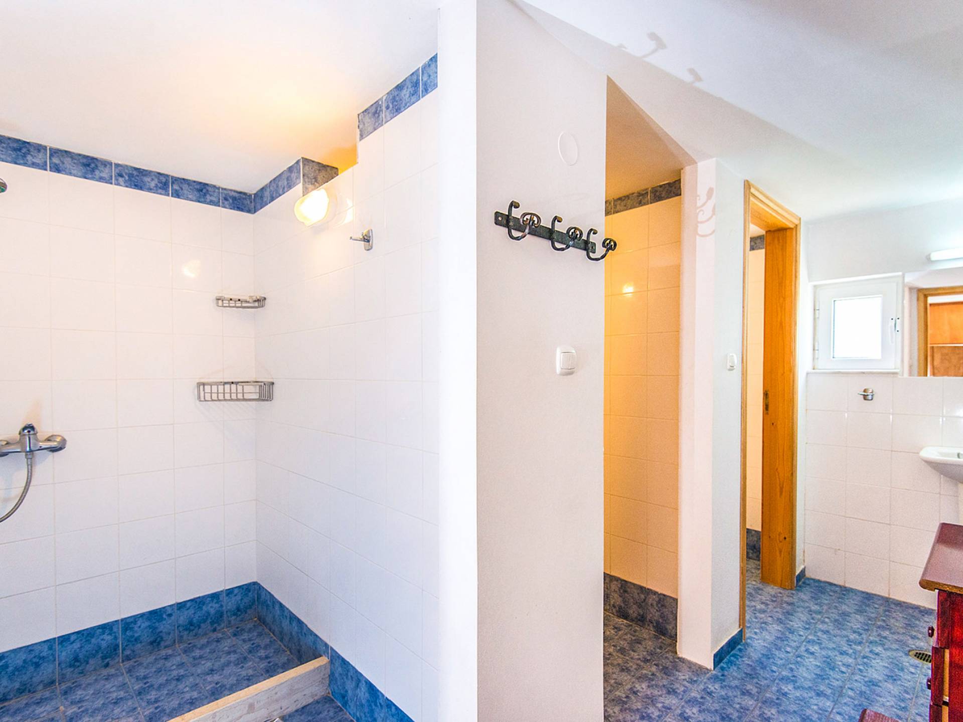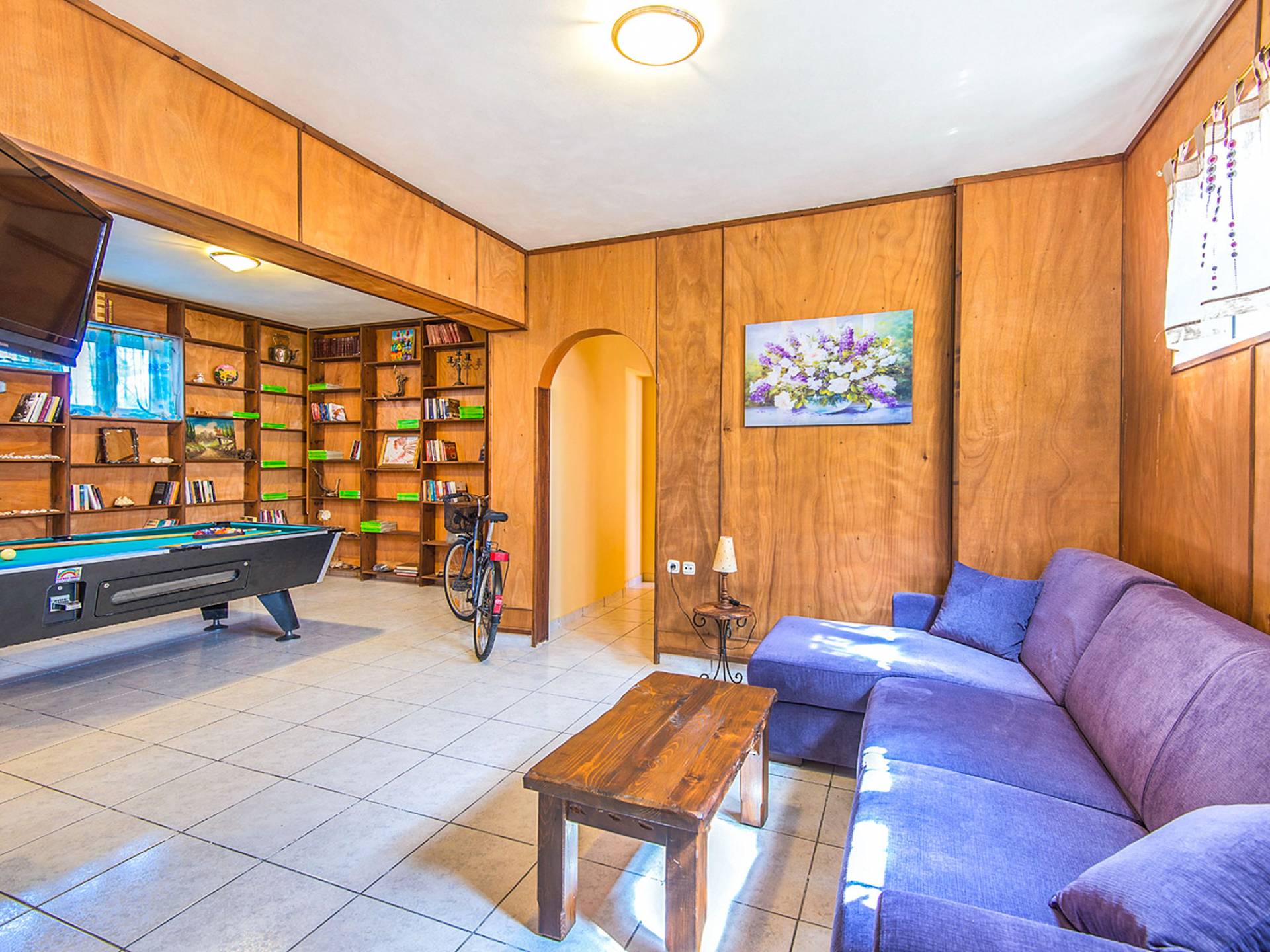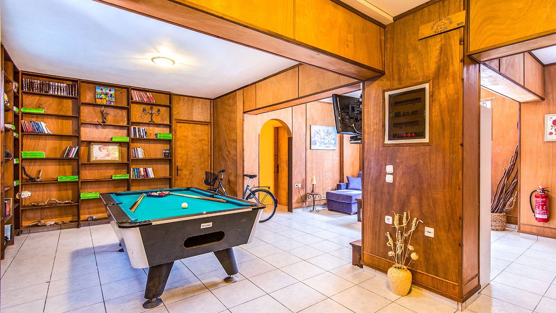 Al piano inferiore troverete la sala giochi, la biblioteca, la sala TV con un grande divano letto, il biliardo e il biliardino per preziosi momenti di gioco, mentre due camere da letto extra climatizzate sono l'ideale per un pisolino tra il divertimento e giochi. Le camere dispongono di 2 docce per rinfrescarsi dopo una giornata di mare o in piscina, mentre accanto al bagno si trova il modernamente attrezzato locale lavatrice con un congelatore extra.