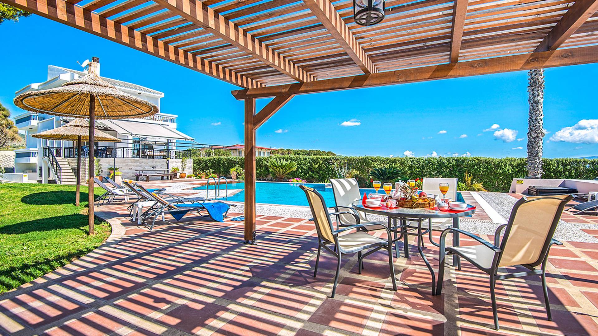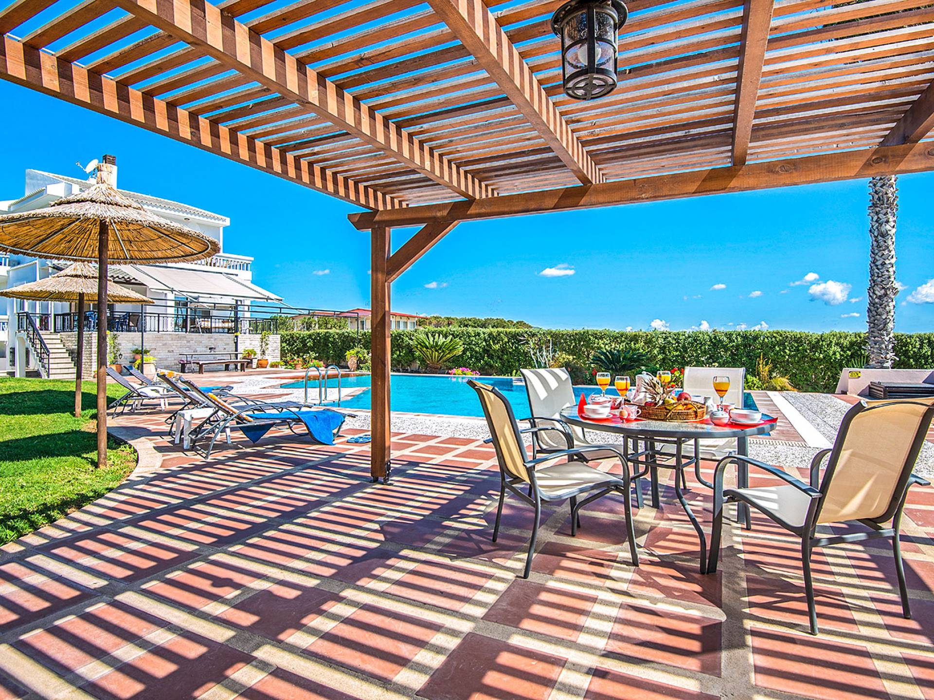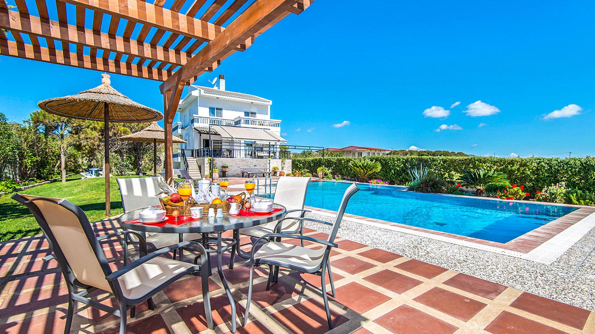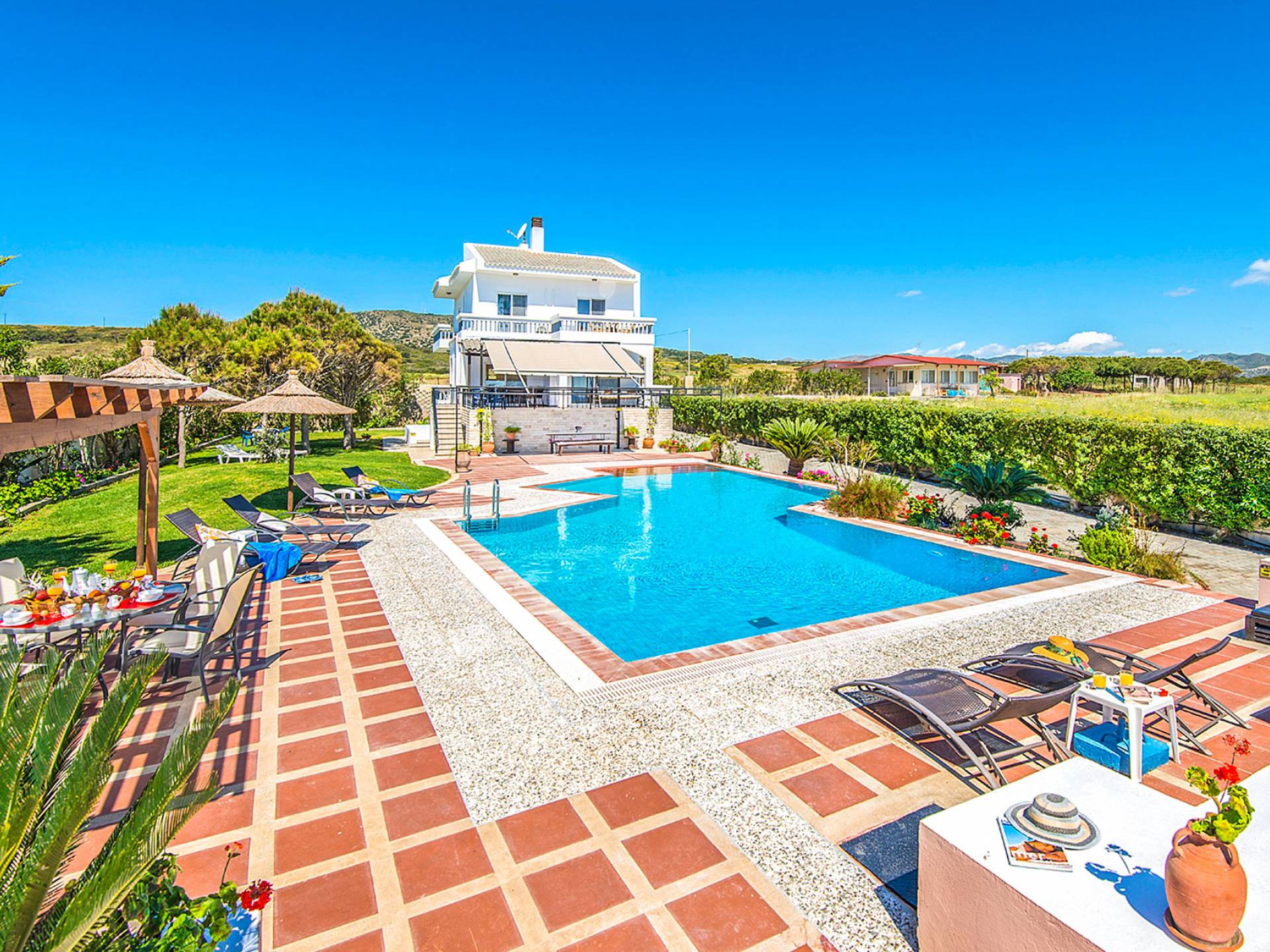 La Villa offre una sistemazione ideale per un soggiorno indimenticabile, sia che stiate cercando una fuga romantica, sia che stiate cercando una vacanza in famiglia con stile. Il suo ampio spazio abitativo ospita comodamente fino a dieci persone, mentre i 1,5 acri di terreno, insieme alla piscina privata (13 x 8 m) soddisferanno sicuramente le vostre esigenze all'aperto. Alkyoni Villa è una villa di 210 mq. proprietà, completamente arredata e finemente decorata che soddisferà senza dubbio ogni vostra esigenza.