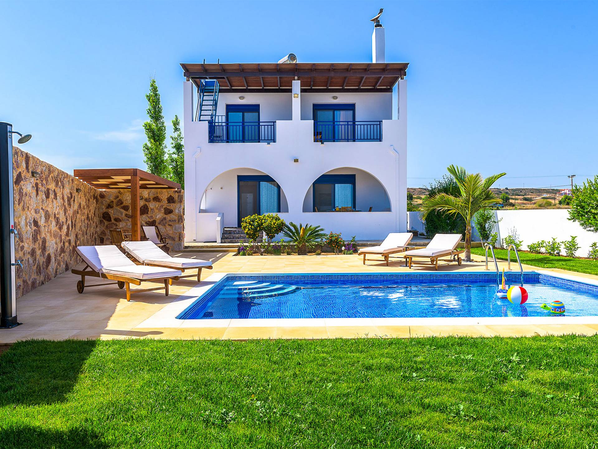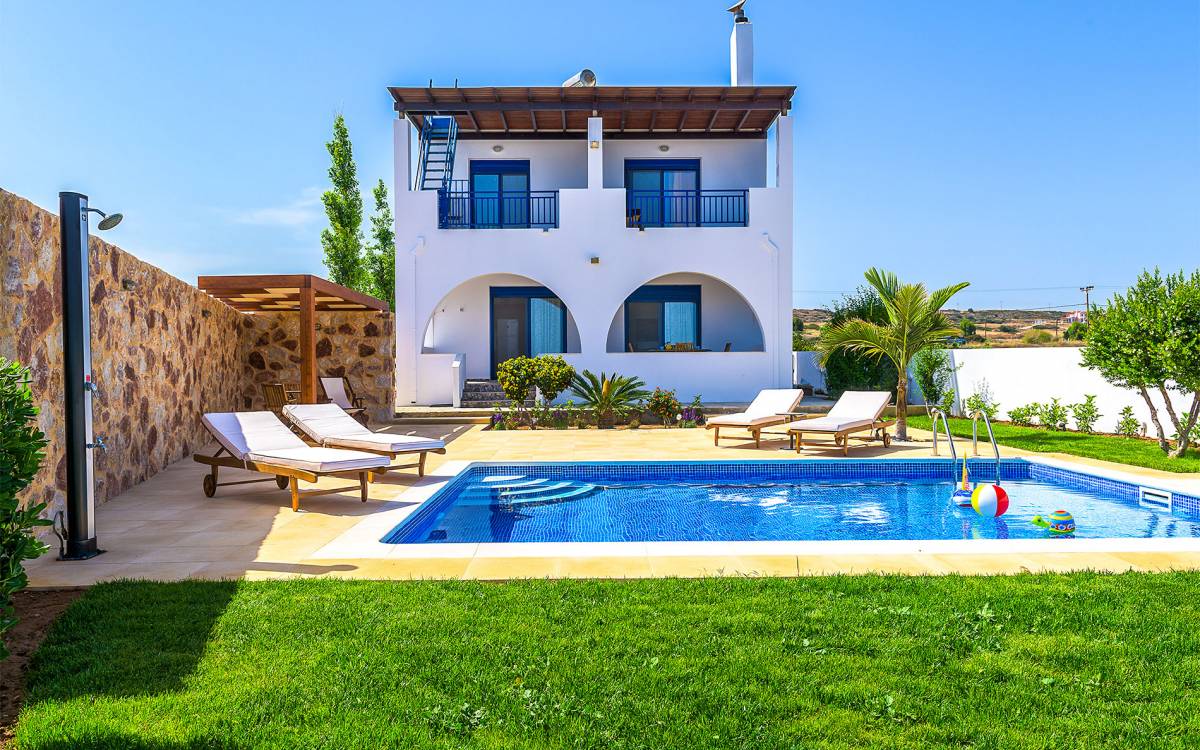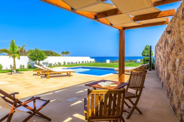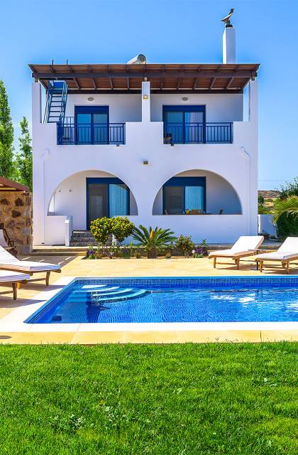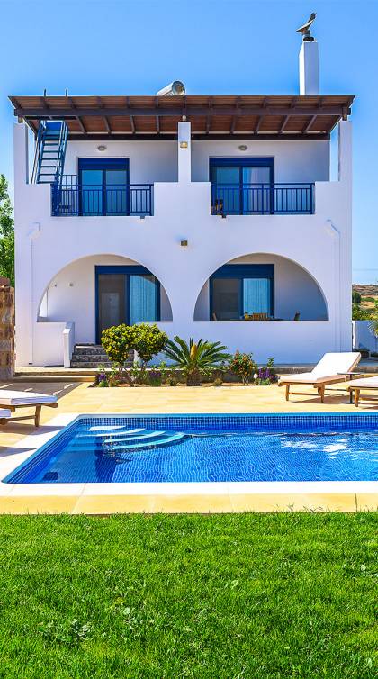 Deep Blue Villa Rhodes è una villa di lusso in affitto con 4 camere da letto e piscina privata. Deep Blue Villa è una bellissima proprietà in una tenuta privata con splendide viste sul mare situata a Lachania. La villa è disposta su due piani con un appartamento separato su ogni piano e può ospitare comodamente le esigenze di vacanza fino a 10 persone. Ideale per coppie, amici e famiglie, questa villa rappresenta l'ambiente ideale per una rilassante vacanza estiva nella tranquilla parte meridionale di Rodi.