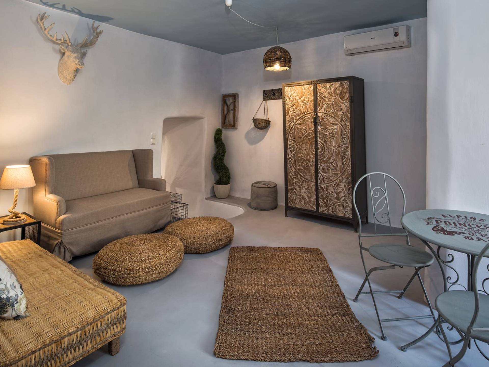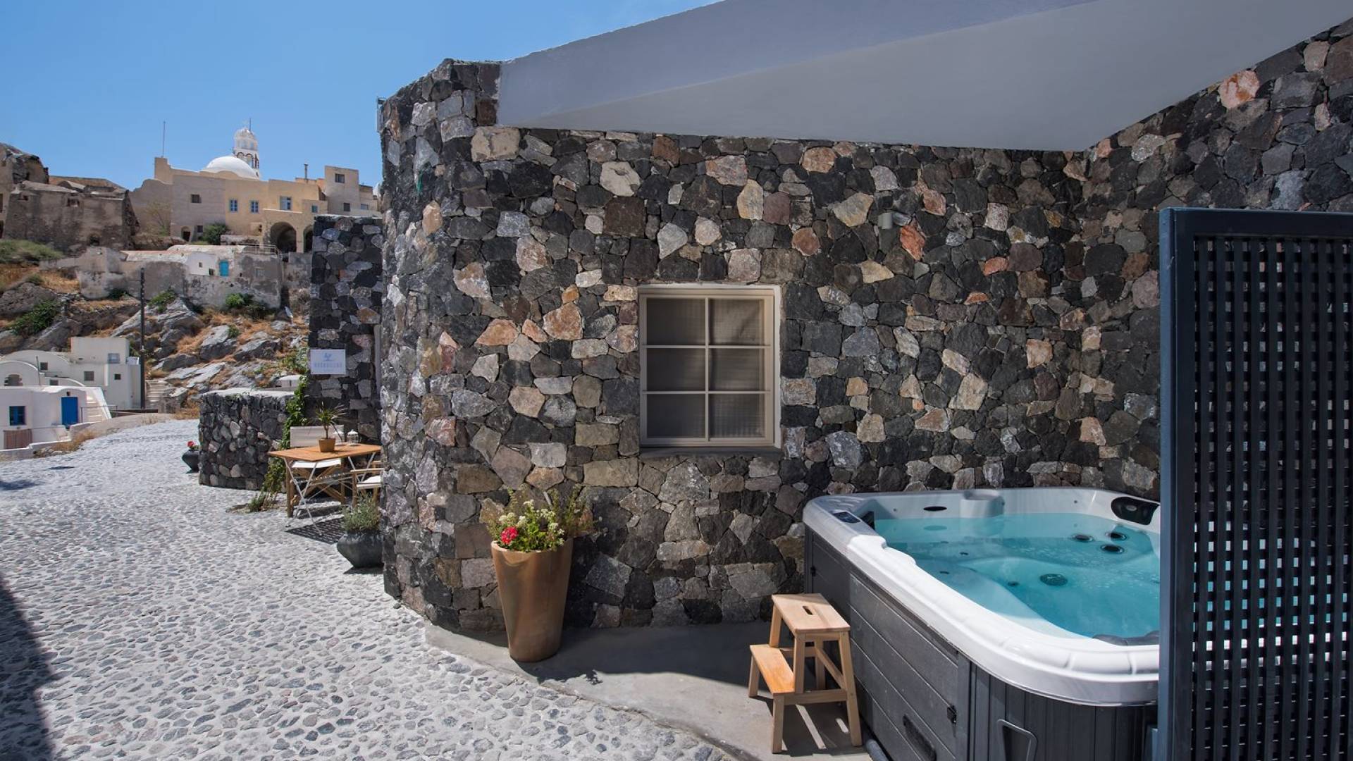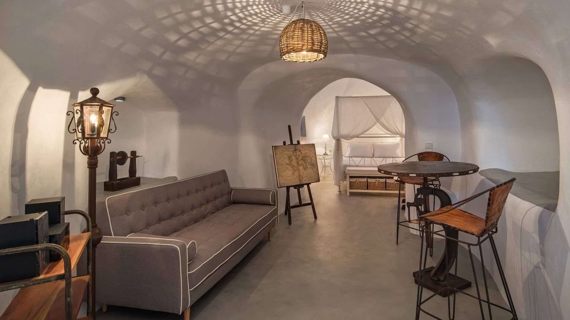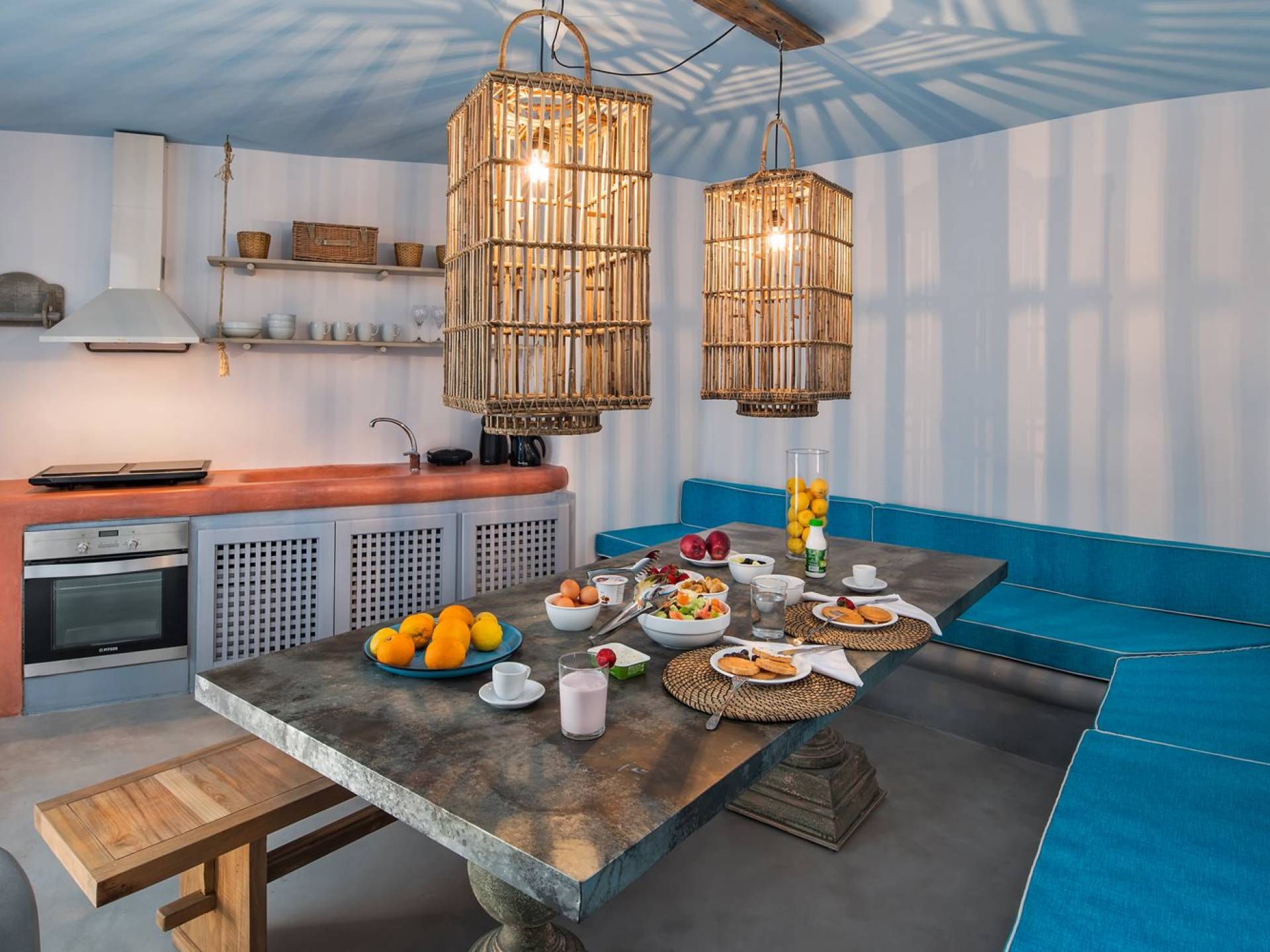 L'esclusiva villa a cupola, scavata nel terreno roccioso dell'antico villaggio di Emporio, è costruita in armonia con la morfologia unica dell'isola creata dal vulcano ed è fortemente influenzata dall'architettura tradizionale del Mar Egeo. Insieme alla decorazione sognante e selezionata con cura, il risultato è un ambiente di insolita libertà di espressione che ti fa sentire consapevole, gioioso ed equilibrato.