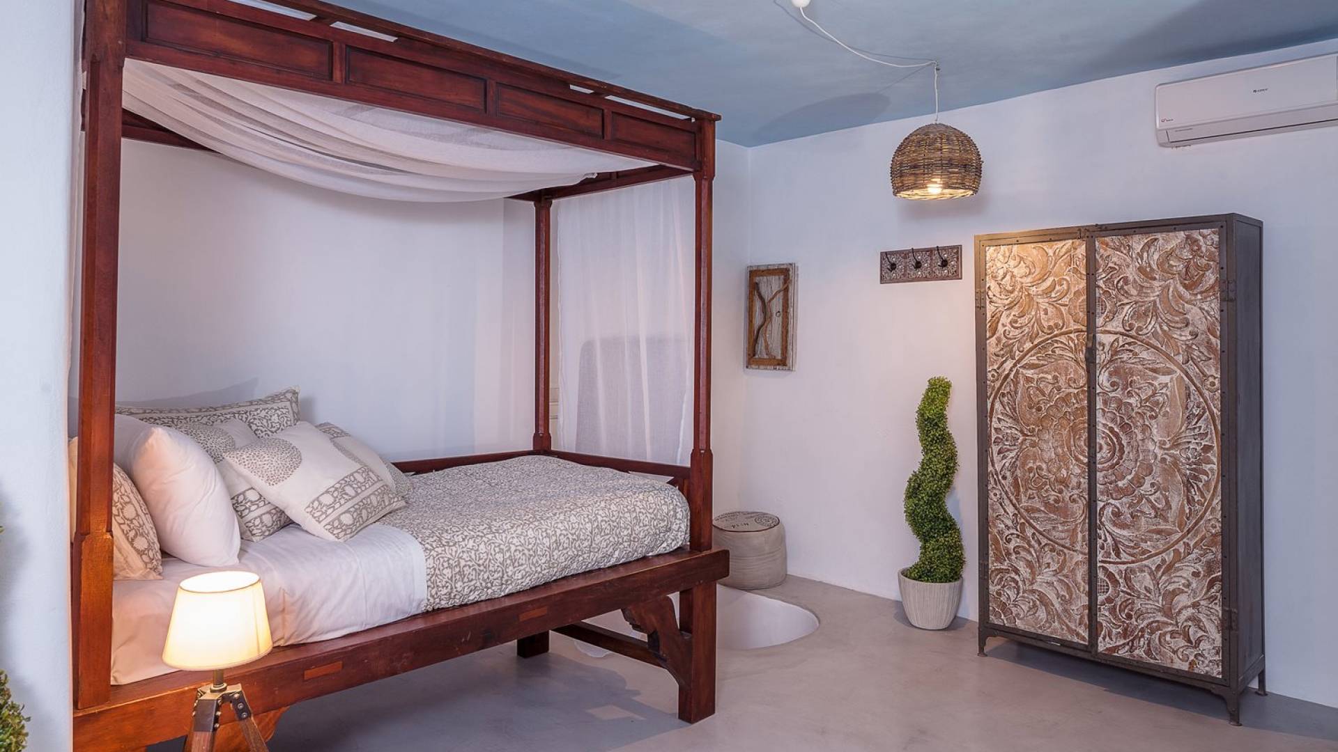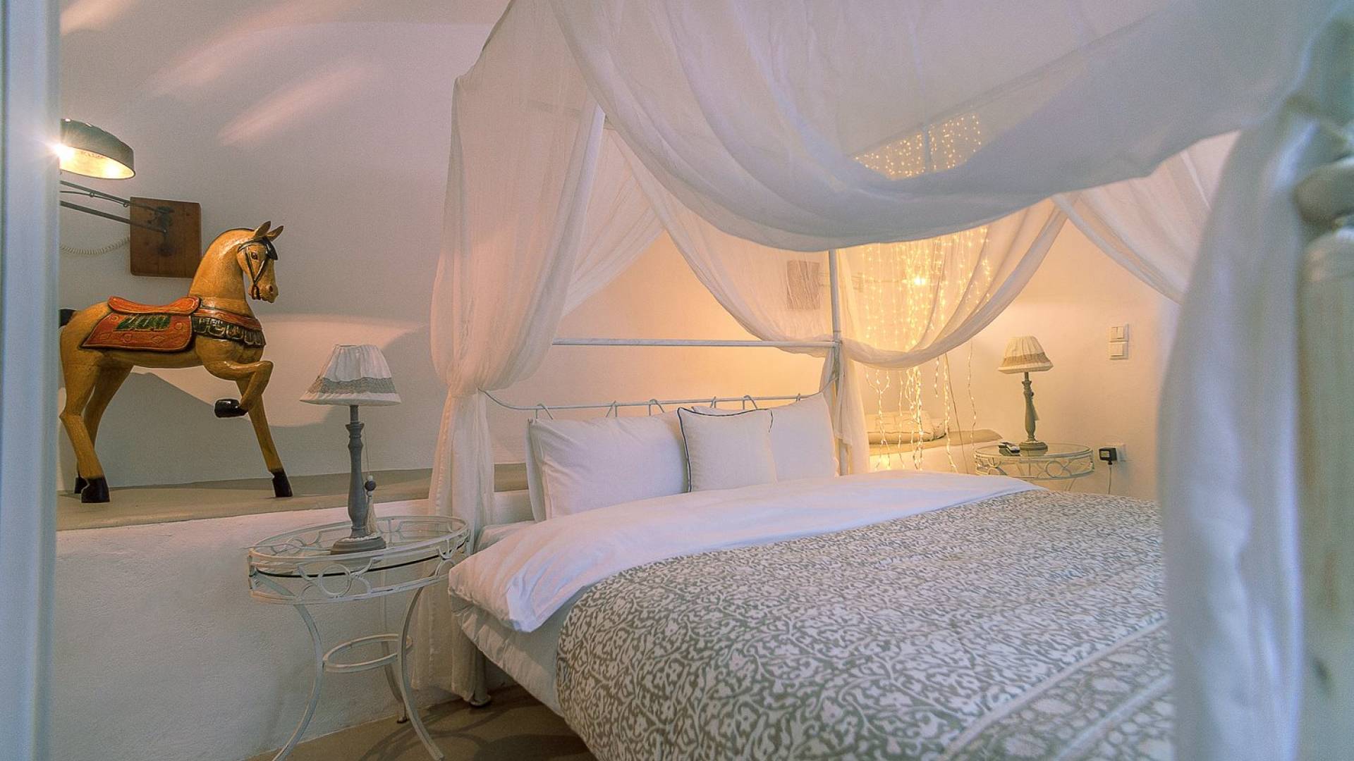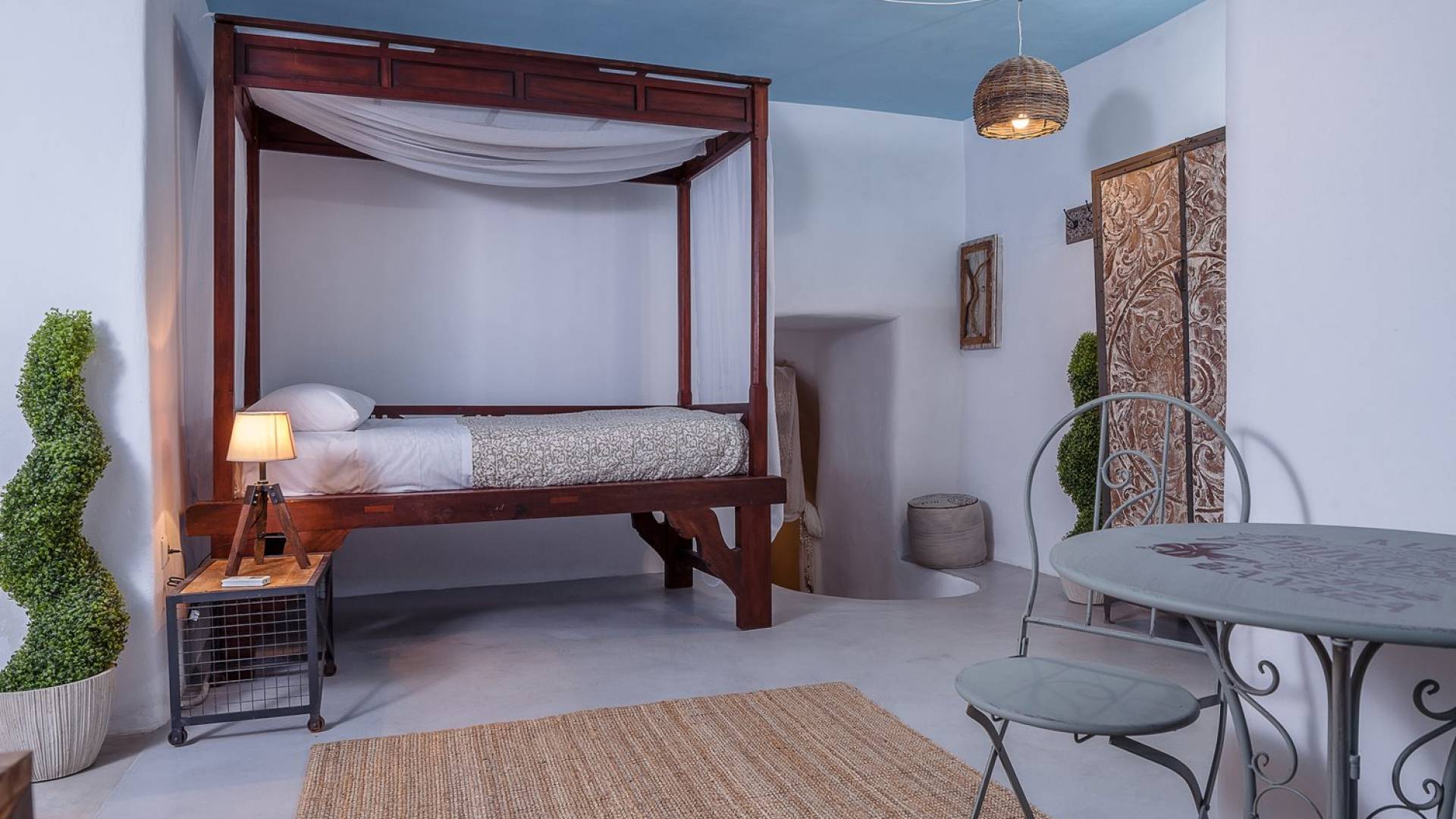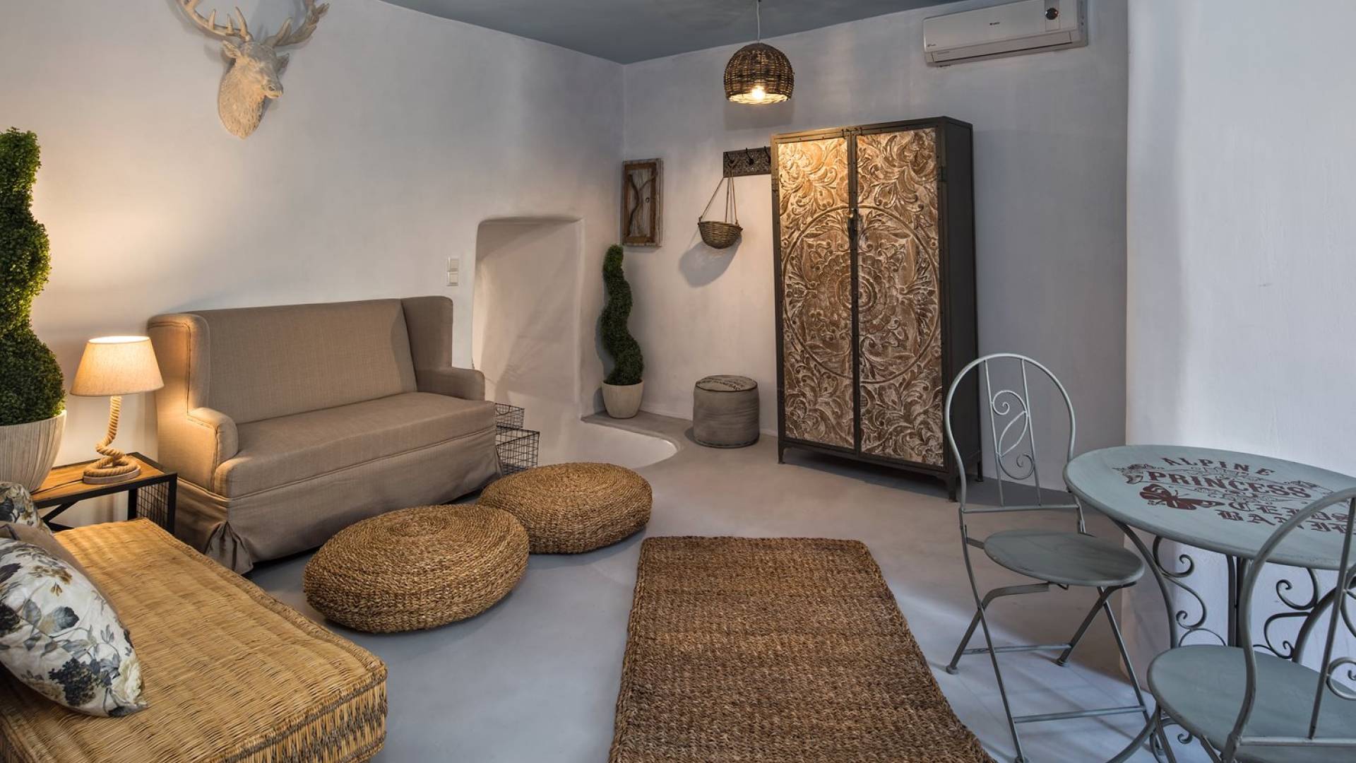 L'esclusiva villa a cupola, scavata nel terreno roccioso dell'antico villaggio di Emporio, è costruita in armonia con la morfologia unica dell'isola creata dal vulcano ed è fortemente influenzata dall'architettura tradizionale del Mar Egeo. Insieme alla decorazione sognante e selezionata con cura, il risultato è un ambiente di insolita libertà di espressione che ti fa sentire consapevole, gioioso ed equilibrato.