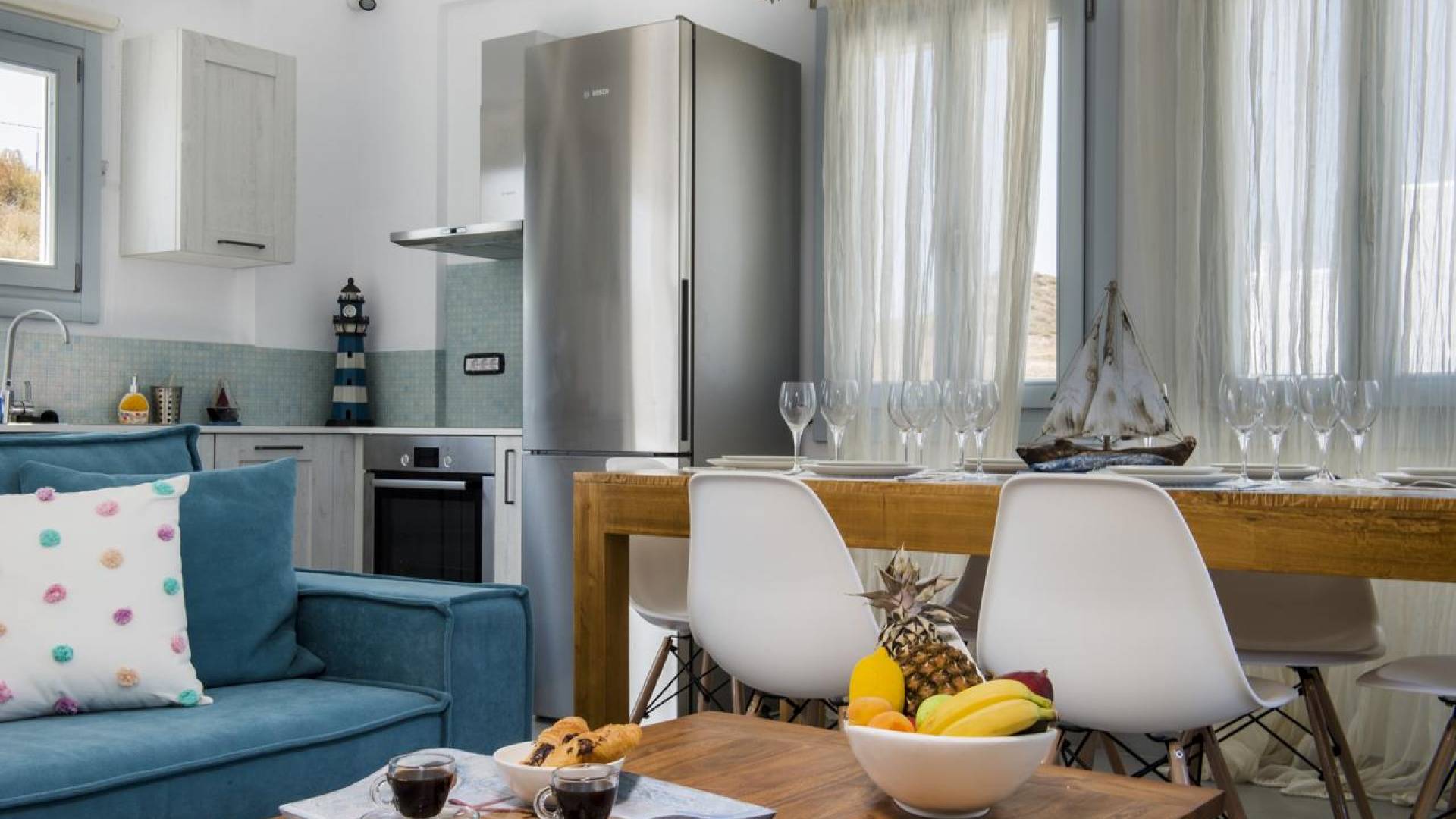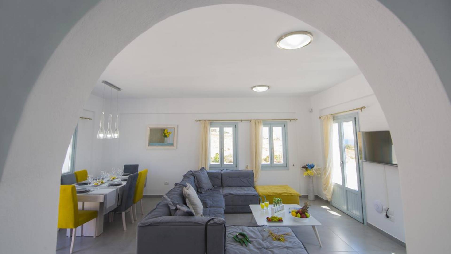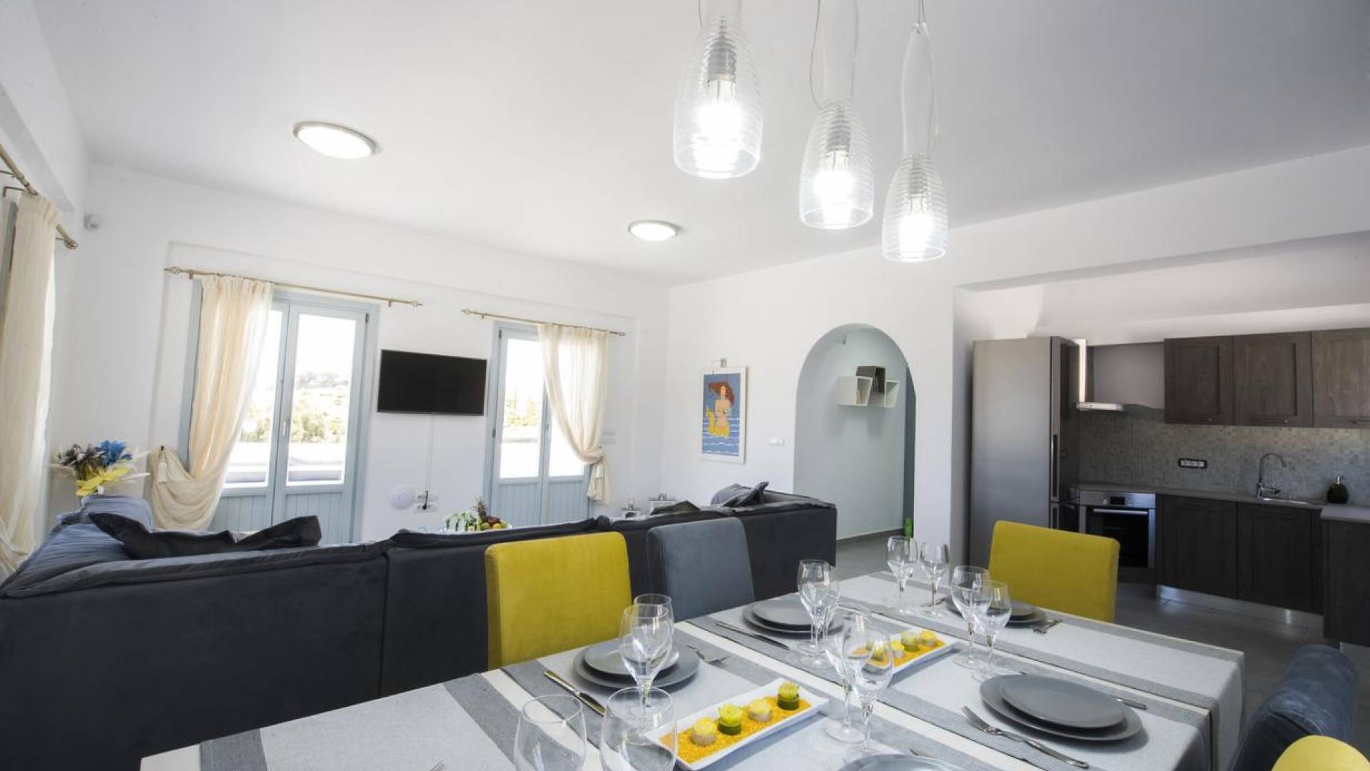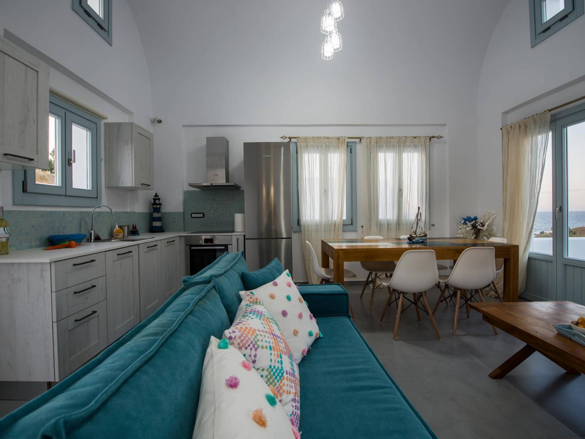 Sea and Sand Villa Santorini è composta da Sea villa (6 posti letto), Sand villa (4 posti letto) e l'appartamento di lusso di 25 mq (2 posti letto).