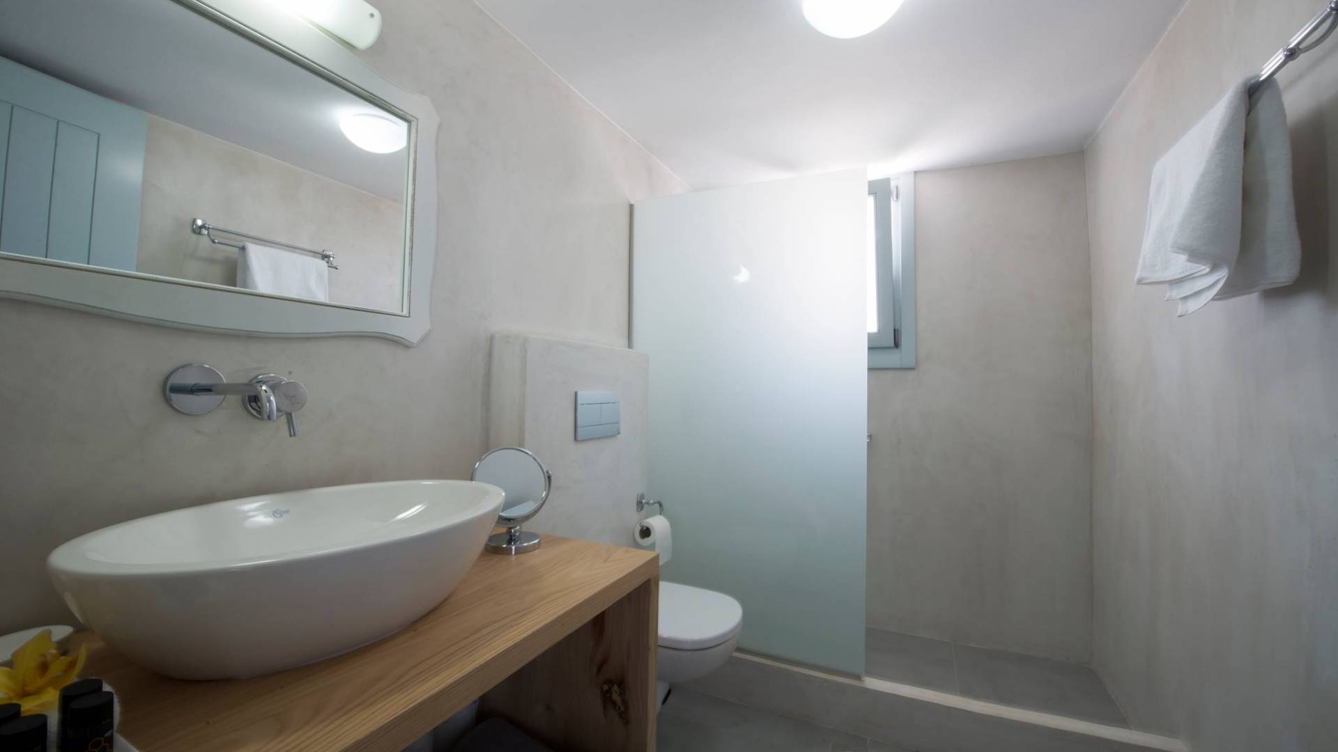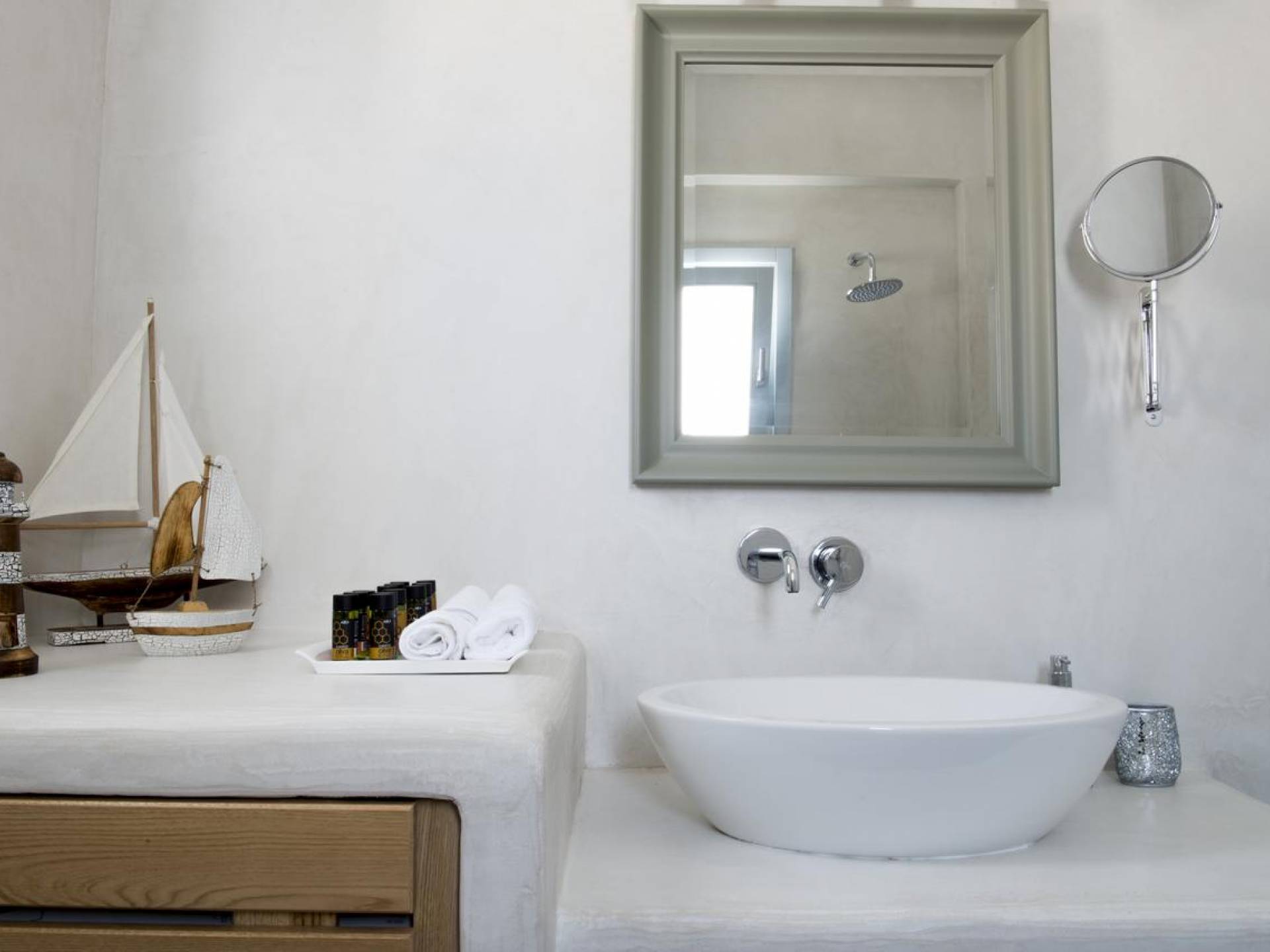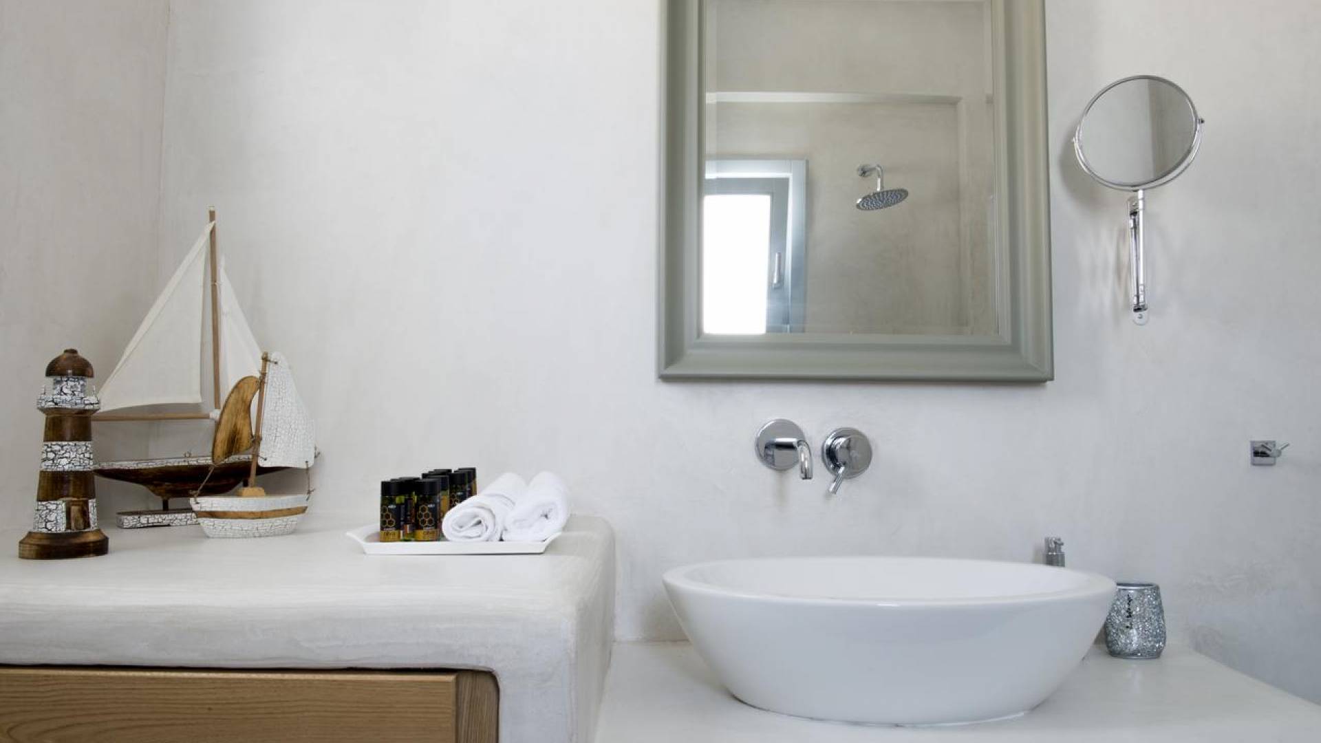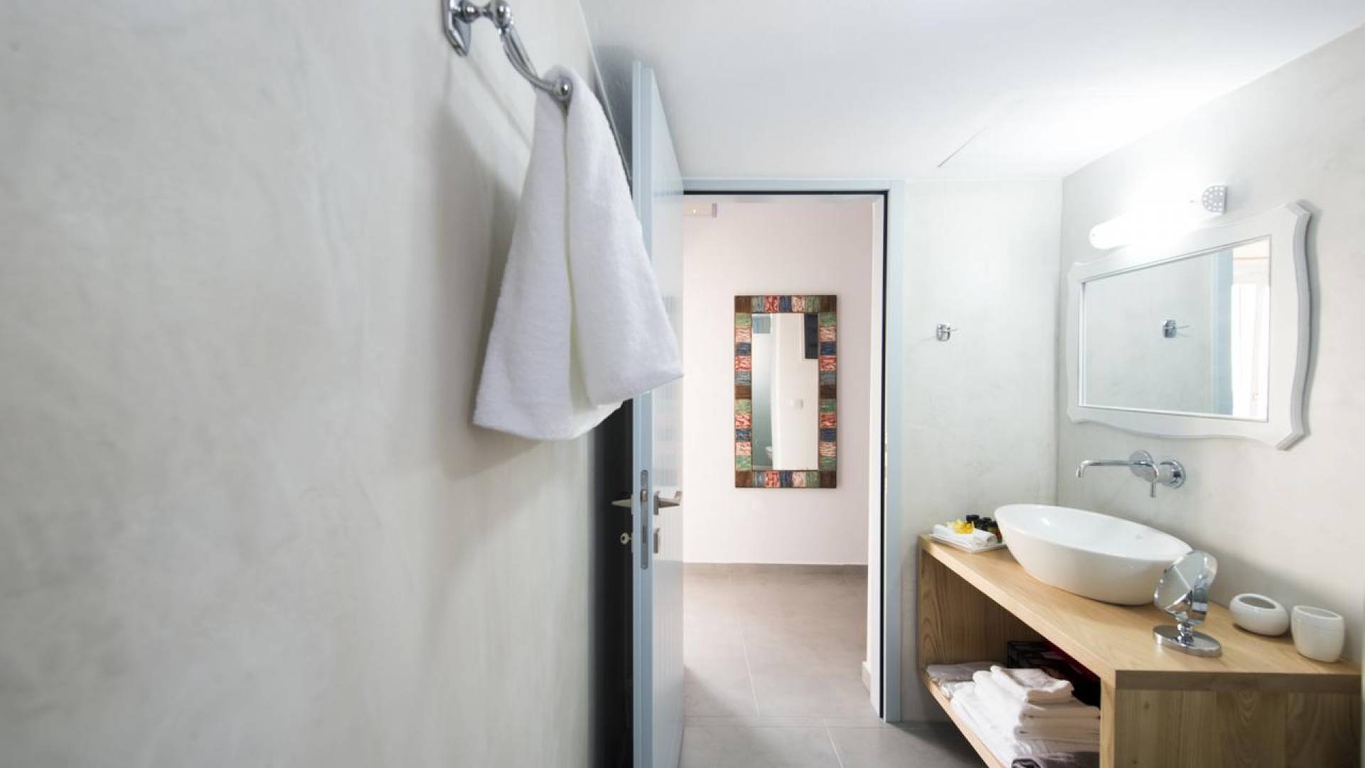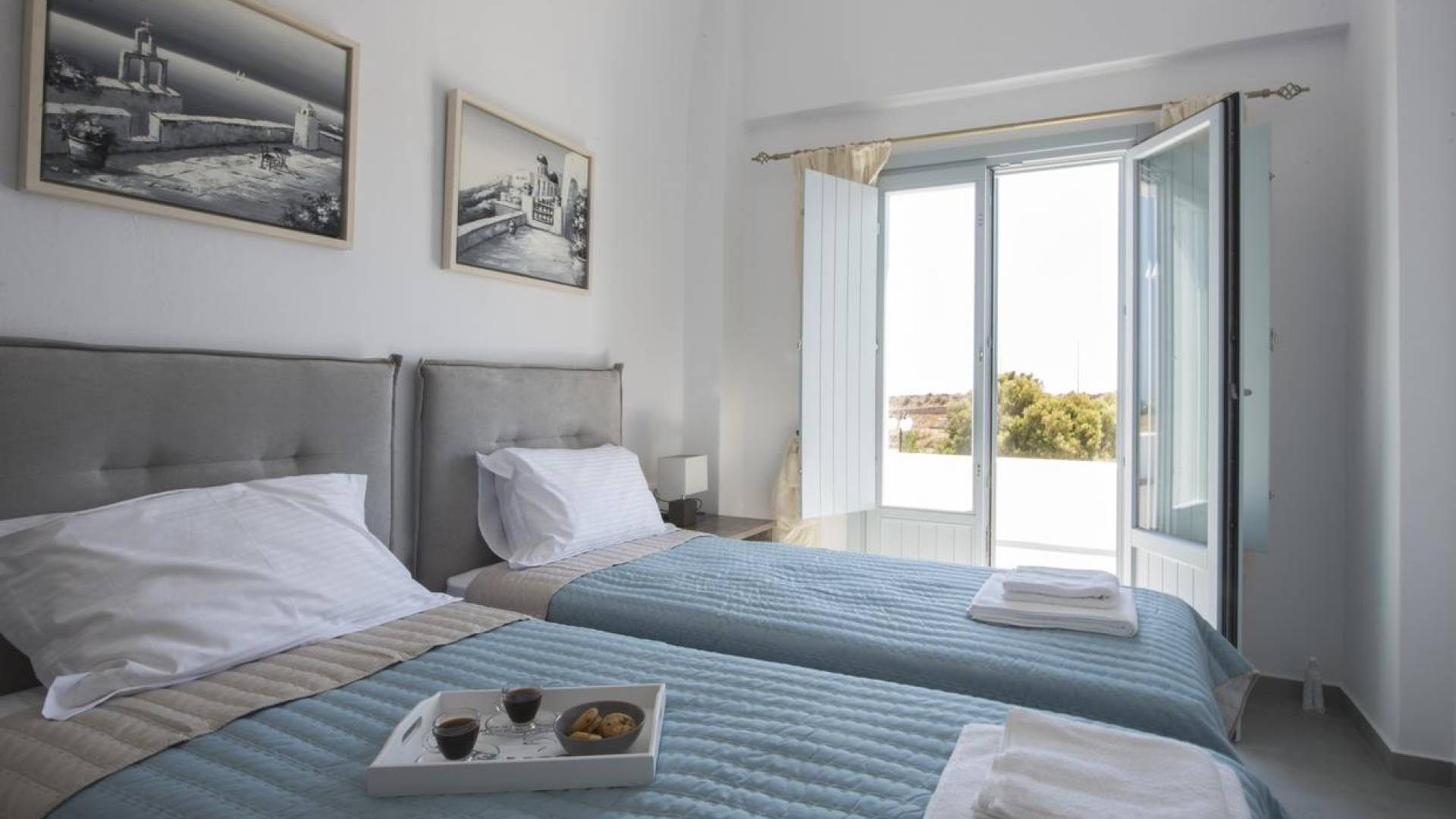 Sea and Sand Villa Santorini è composta da Sea villa (6 posti letto), Sand villa (4 posti letto) e l'appartamento di lusso di 25 mq (2 posti letto).