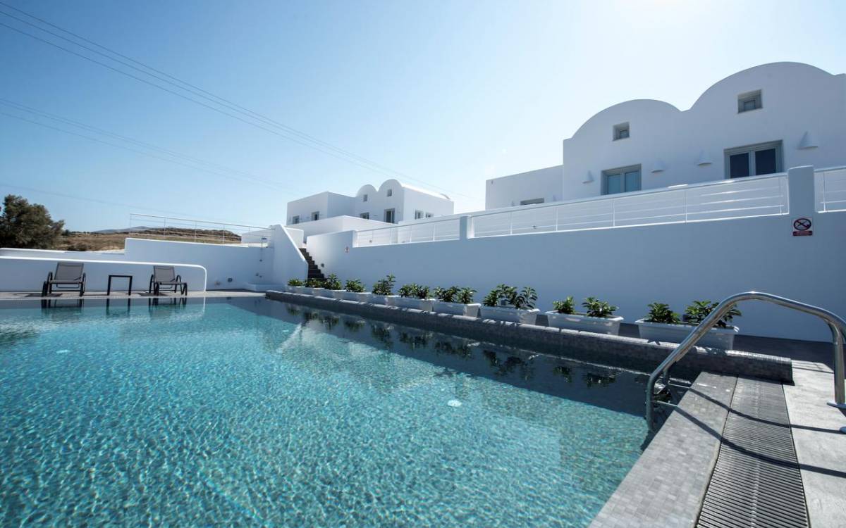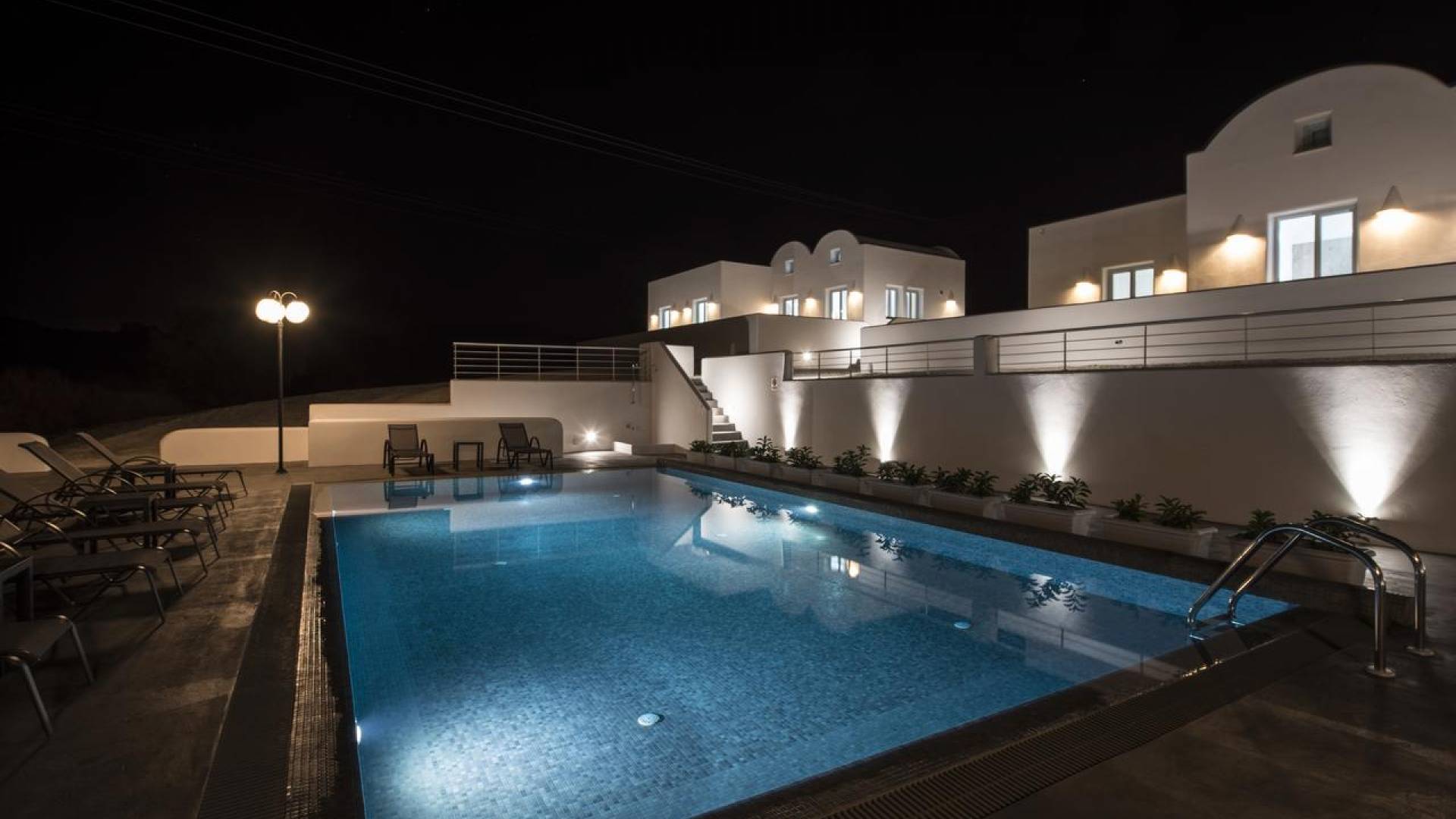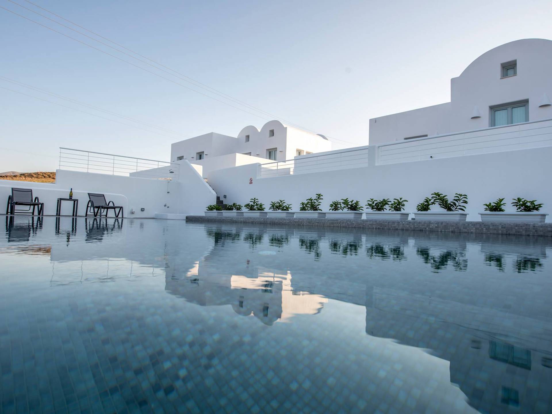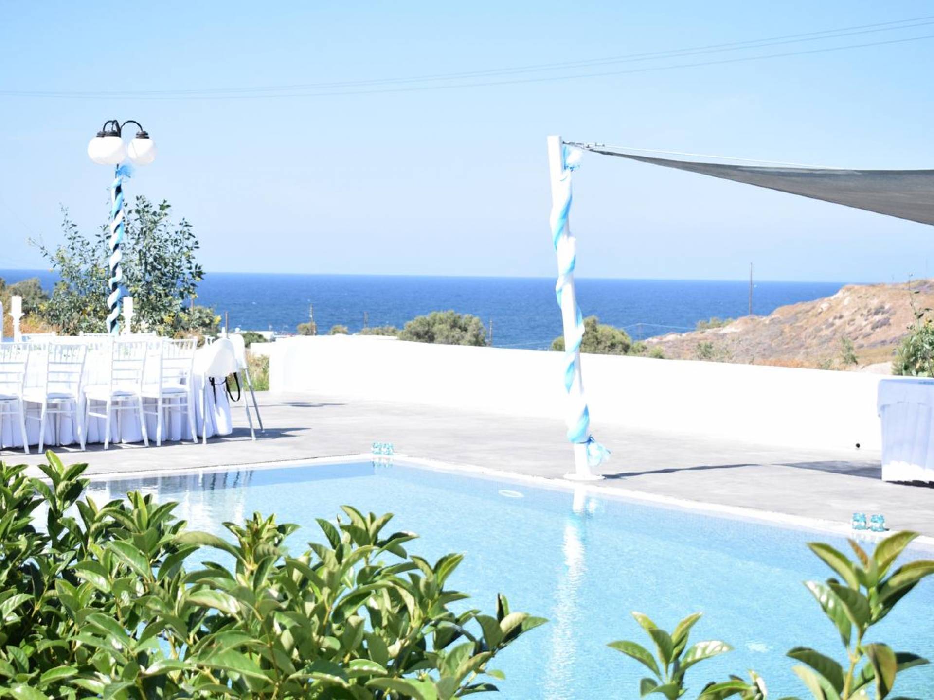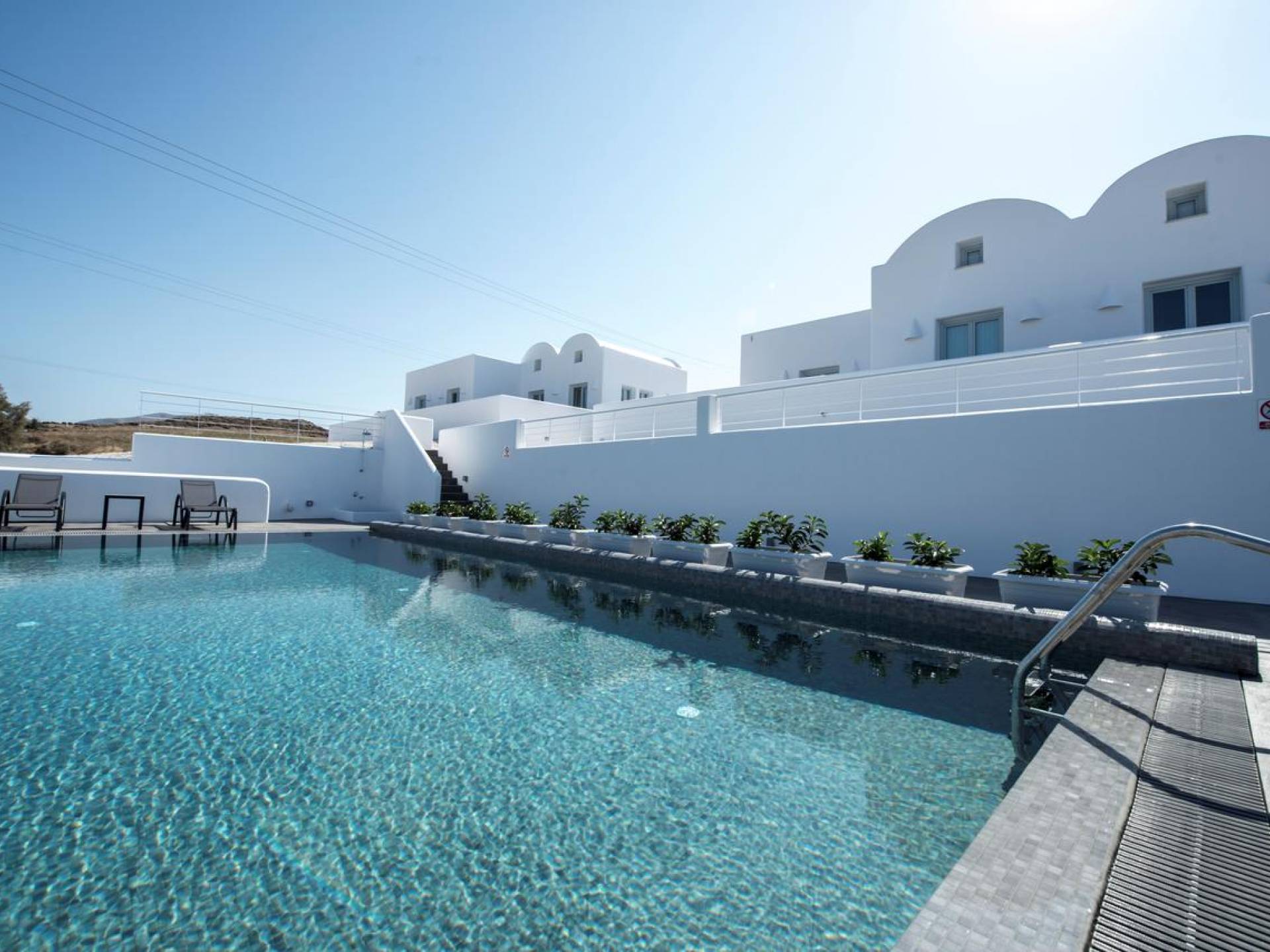 Sea and Sand Luxury Villa a Santorini, costruita nel 2015 con l'obiettivo principale di offrire ai visitatori il tempo di qualità che meritano per una vacanza perfetta. Si trova privatamente in un terreno di 4000 mq, nella tranquilla zona di Exo Gialos, Karterados, vicino alla spiaggia organizzata di Monolithos, sul lato orientale dell'isola con vista panoramica sul mare e ampio spazio esterno. La villa mescola elementi moderni e tradizionali, rispettando allo stesso tempo l'architettura locale. La grande piscina situata nell'area esterna offre liberamente agli ospiti assoluto relax sotto il sole, mentre è circondata da una veranda per prendere il sole con moderne sdraio, tavolini e doccia esterna.