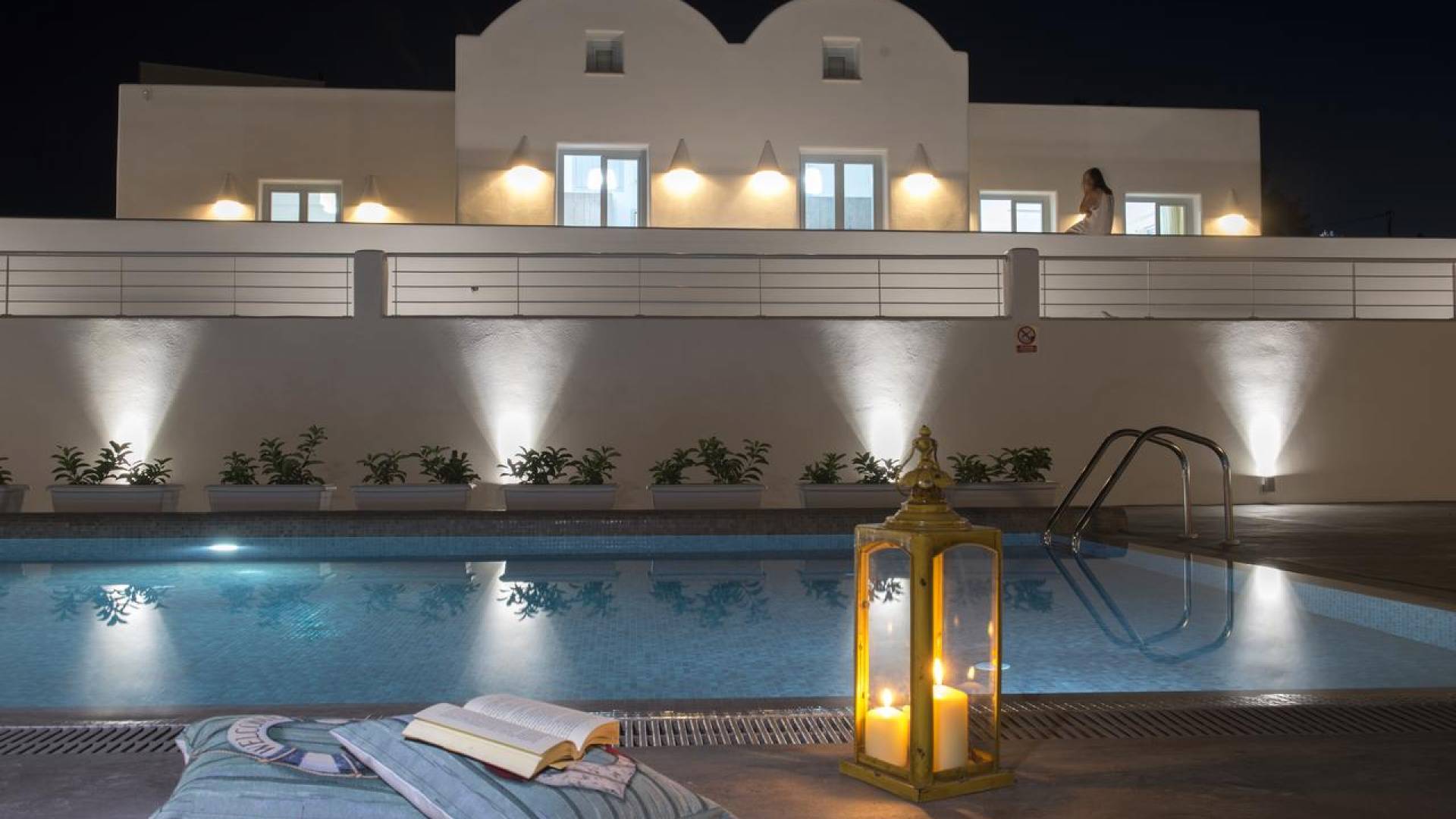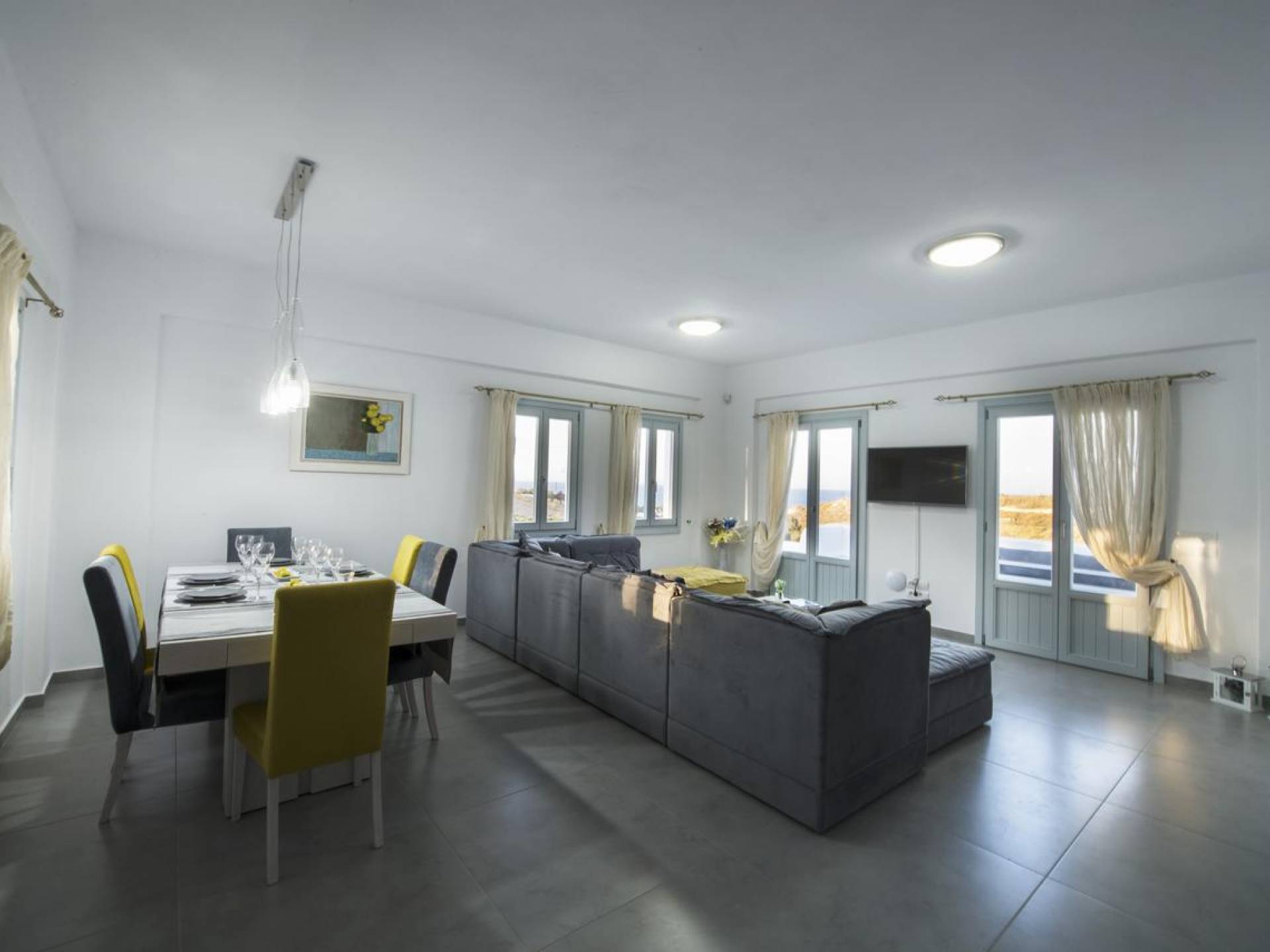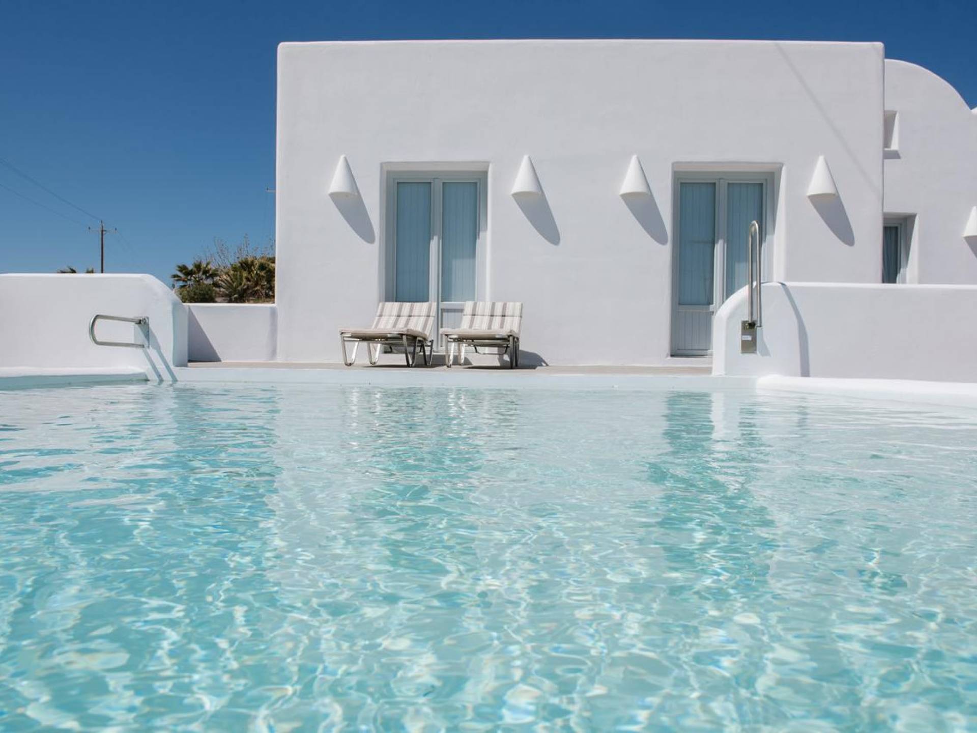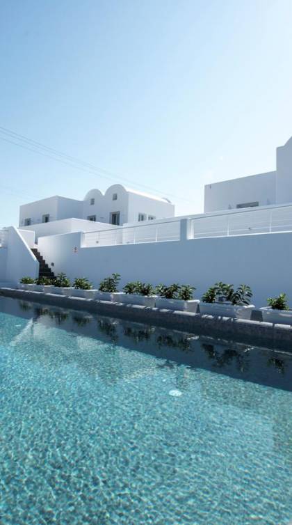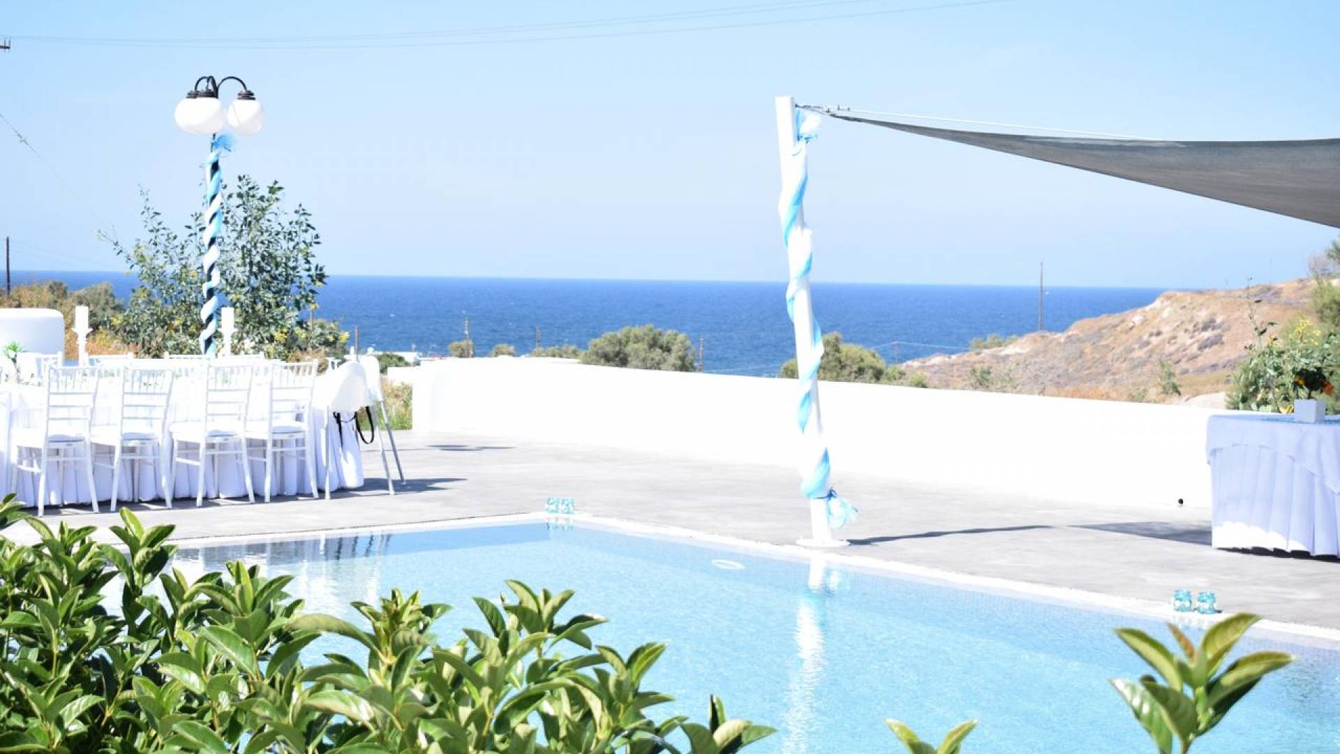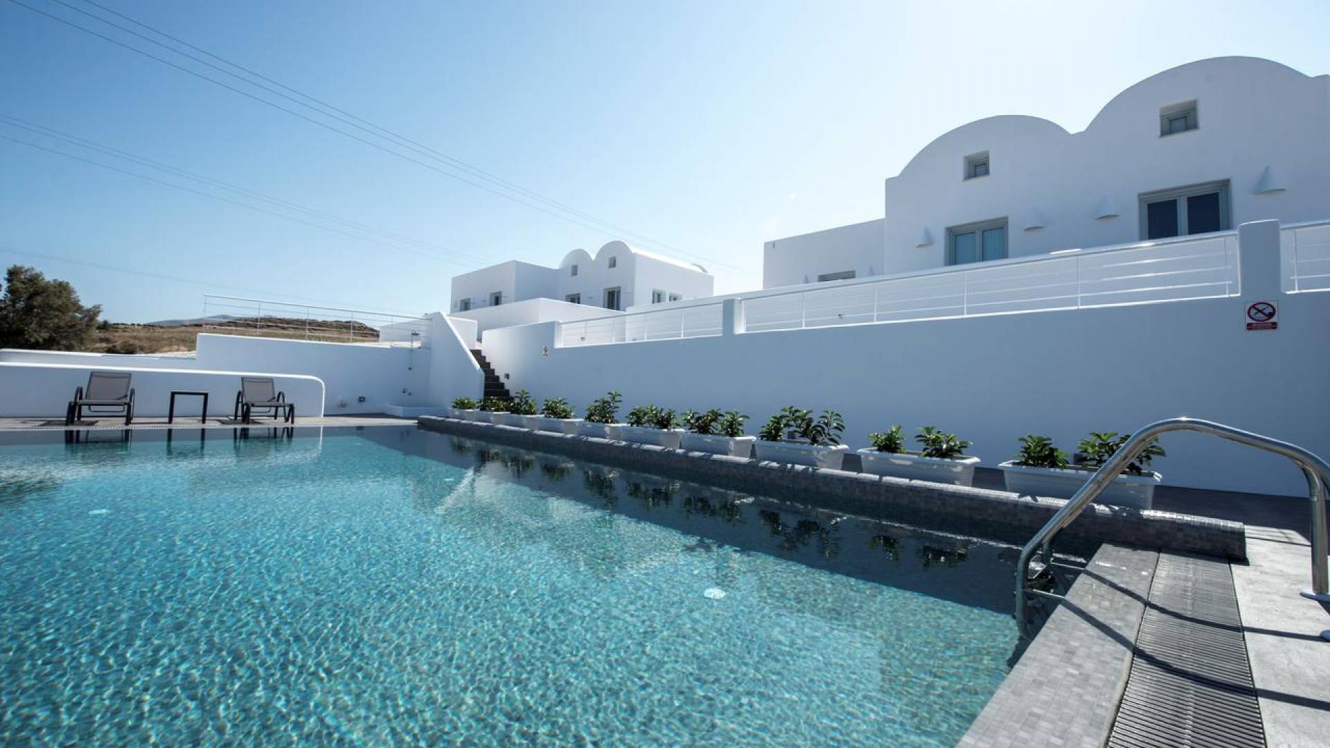 Sea and Sand Luxury Villa a Santorini, costruita nel 2015 con l'obiettivo principale di offrire ai visitatori il tempo di qualità che meritano per una vacanza perfetta. Si trova privatamente in un terreno di 4000 mq, nella tranquilla zona di Exo Gialos, Karterados, vicino alla spiaggia organizzata di Monolithos, sul lato orientale dell'isola con vista panoramica sul mare e ampio spazio esterno. La villa mescola elementi moderni e tradizionali, rispettando allo stesso tempo l'architettura locale. La grande piscina situata nell'area esterna offre liberamente agli ospiti assoluto relax sotto il sole, mentre è circondata da una veranda per prendere il sole con moderne sdraio, tavolini e doccia esterna.