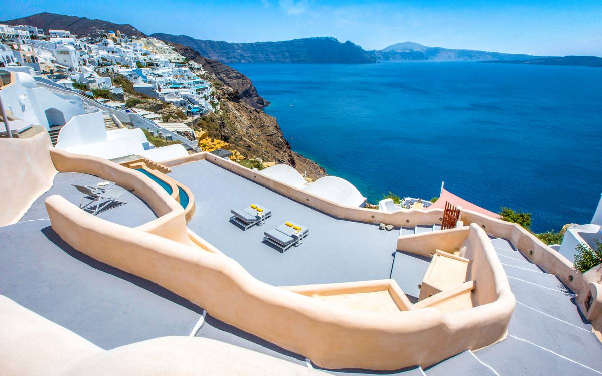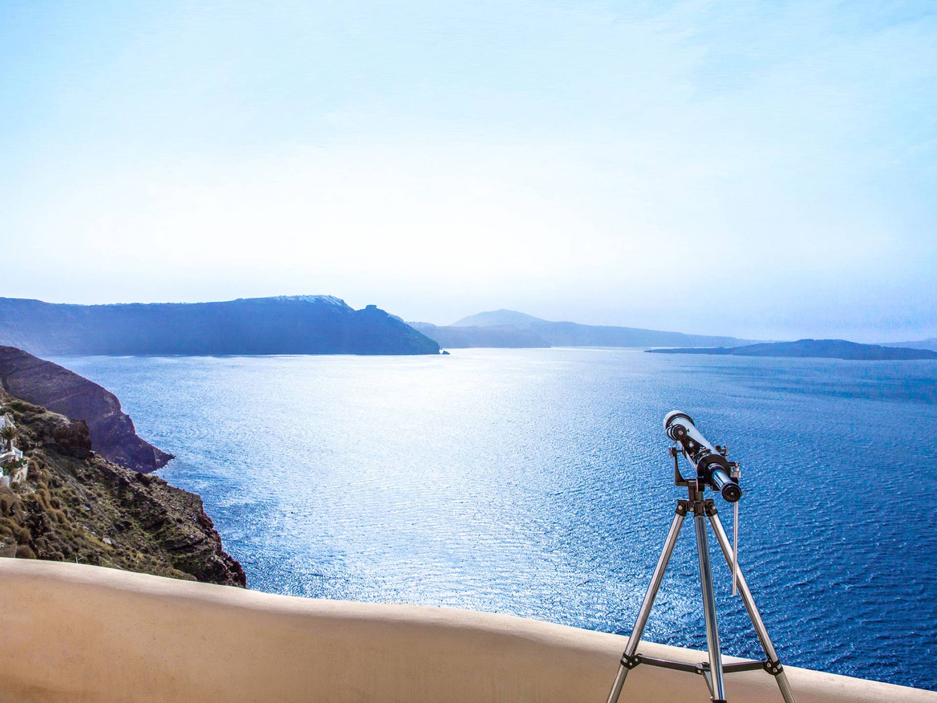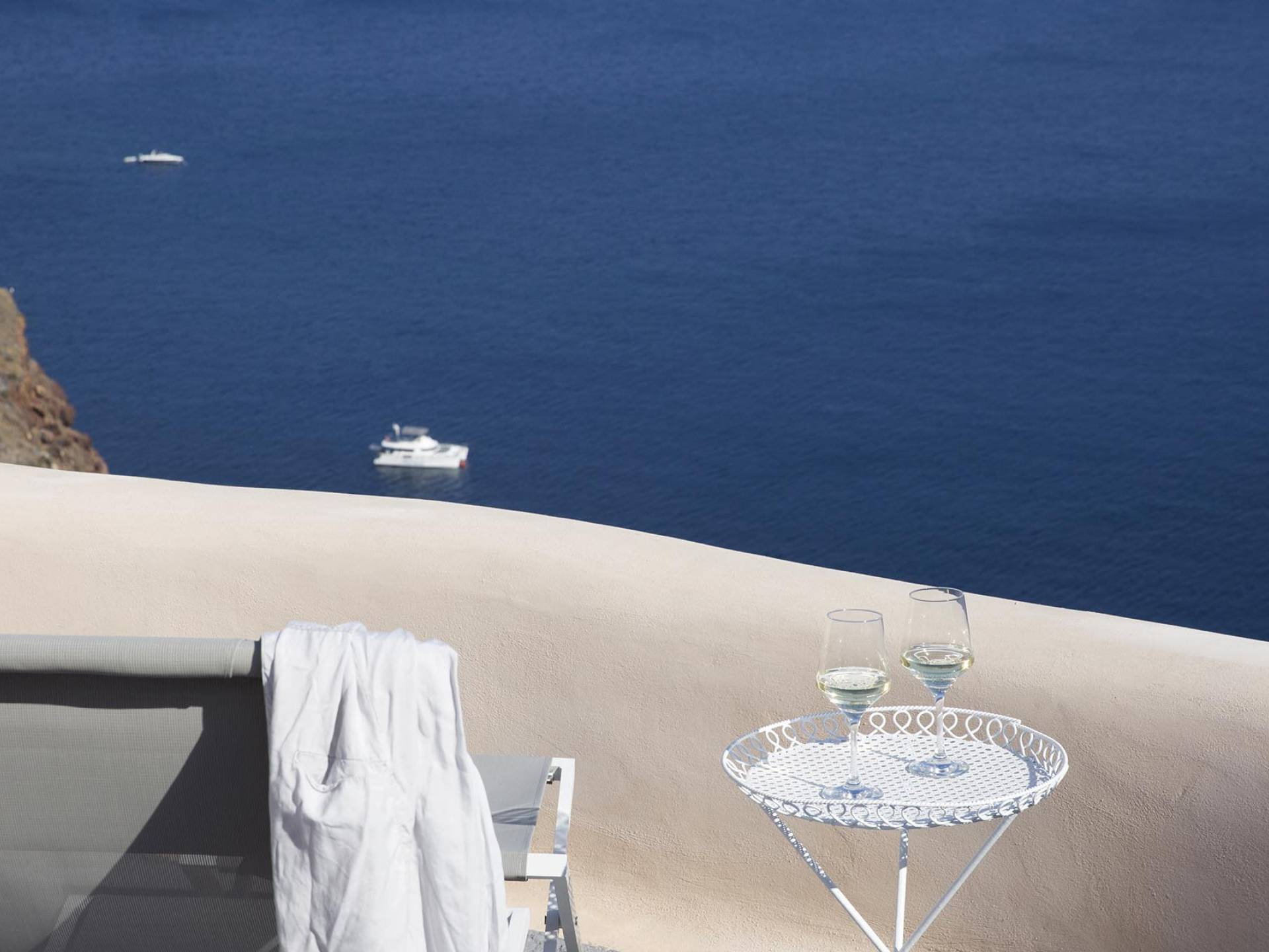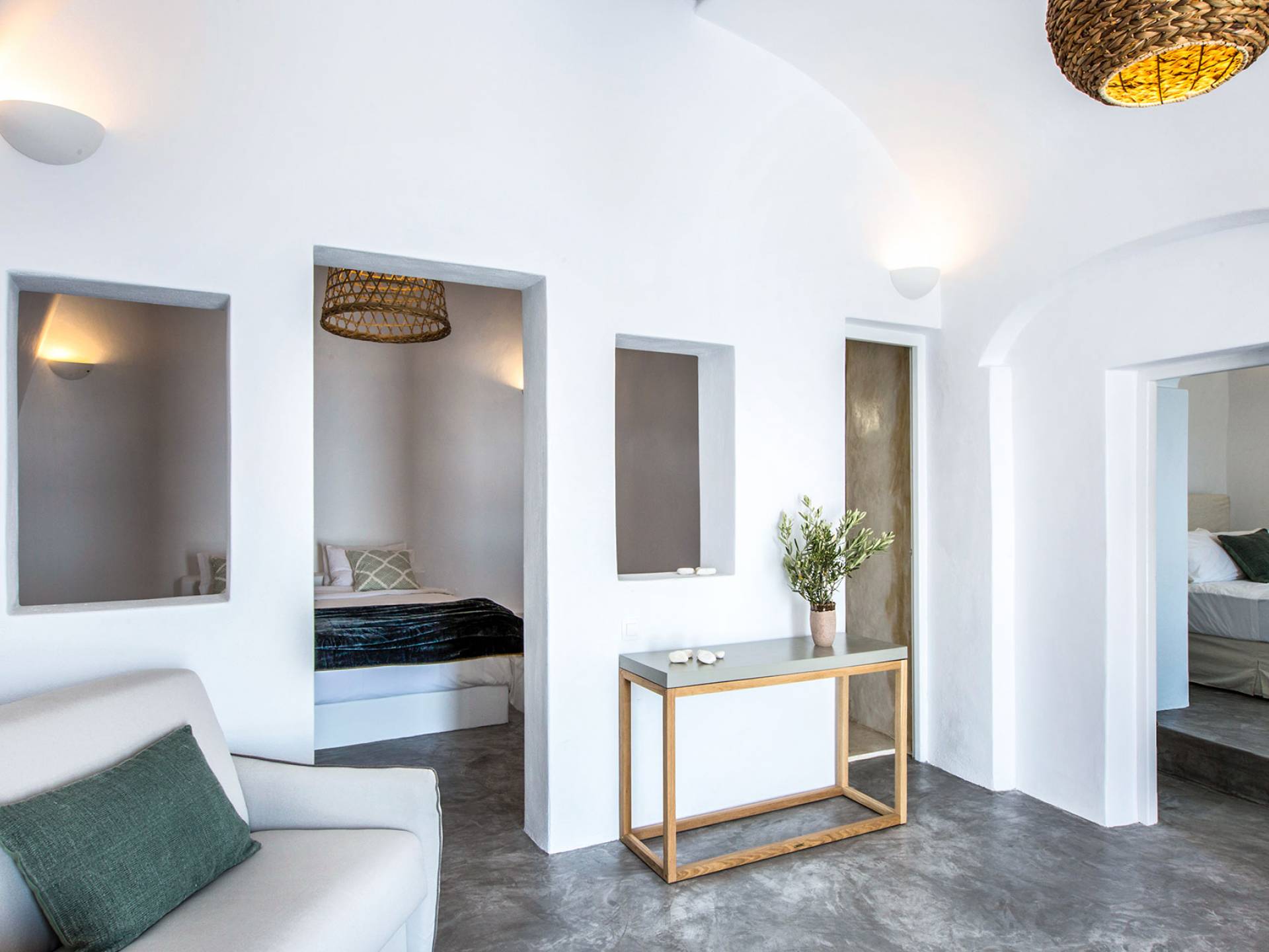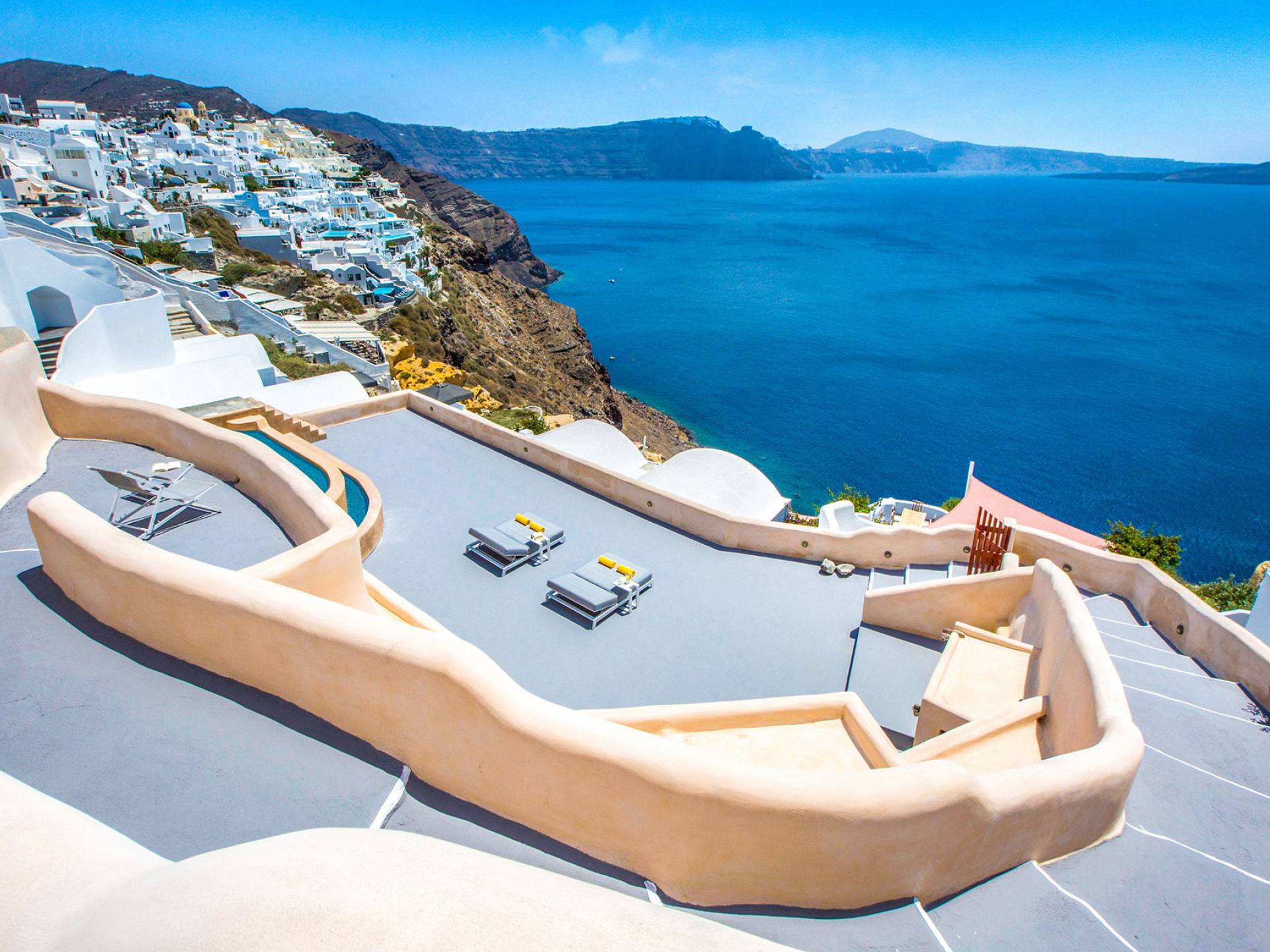 Entrambe le suite condividono un'incredibile terrazza privata di 340 mq. e una piscina a sfioro di 70 mq con una vista mozzafiato sulla Caldera. Una bella cucina completamente attrezzata si trova a pochi passi da entrambe le suite. Che tu stia scaldando uno spuntino leggero, o preparando un pranzo o una cena semplice ed elegante (inoltre, lo chef può prepararlo per te, su richiesta), troverai tutto ciò di cui hai bisogno a portata di mano.