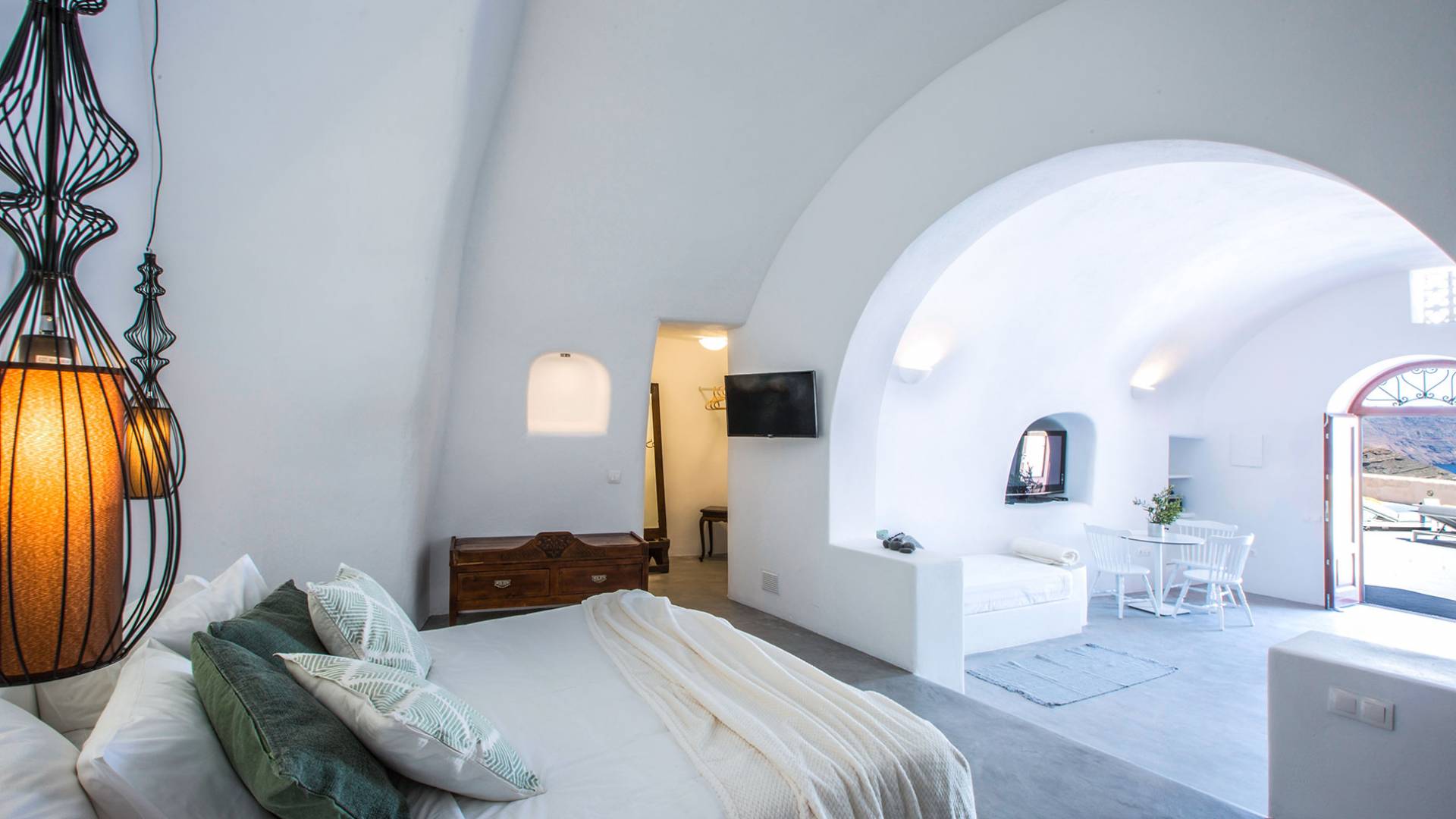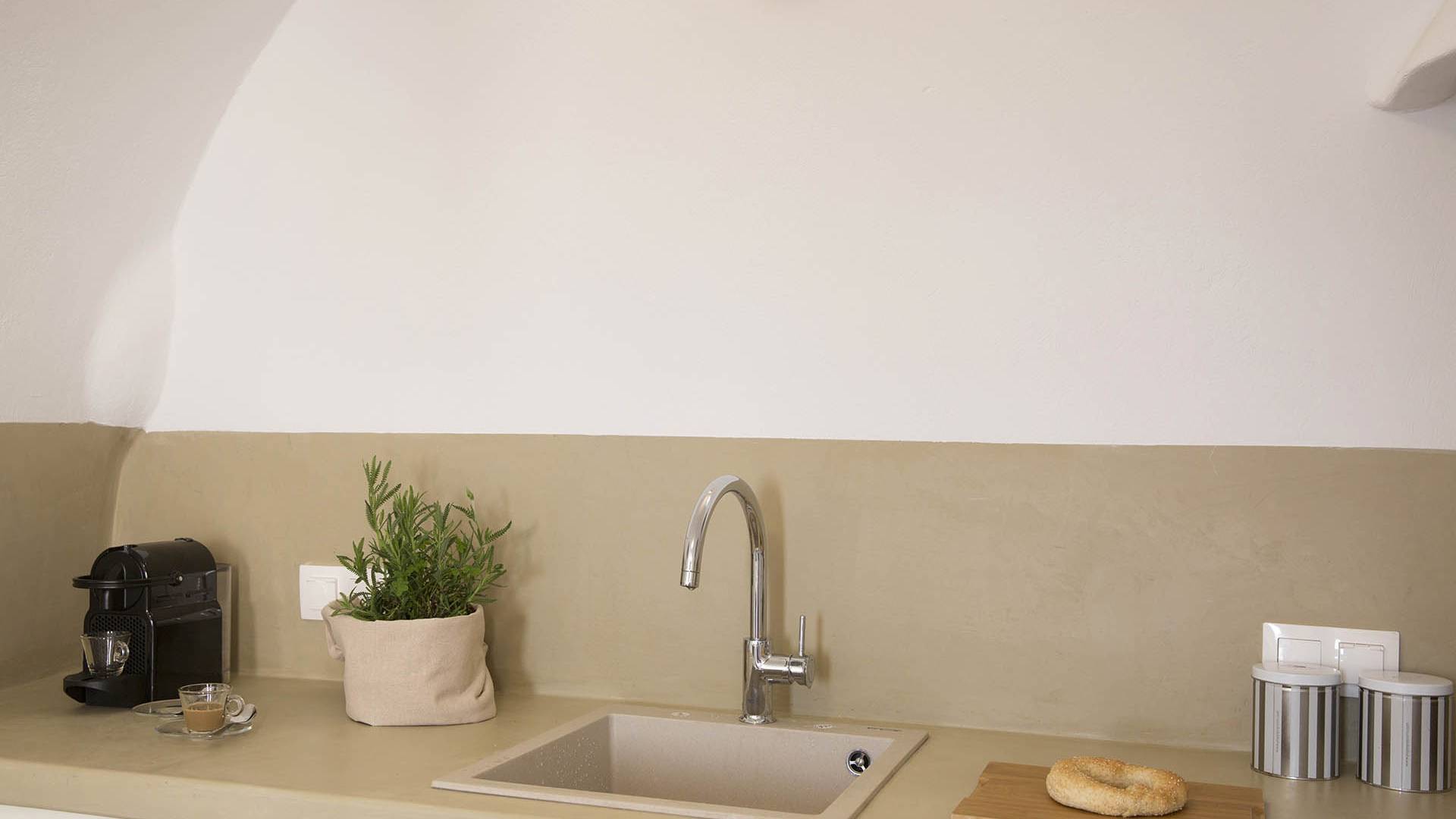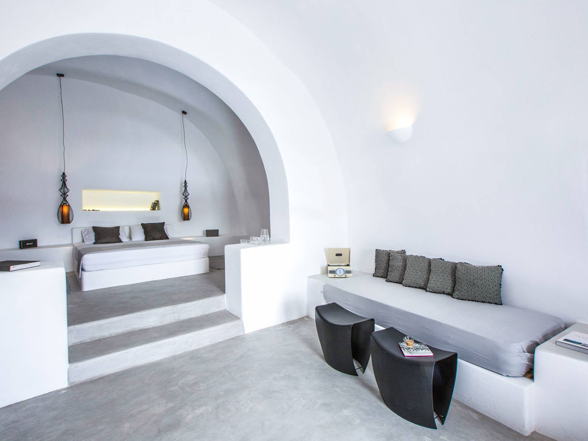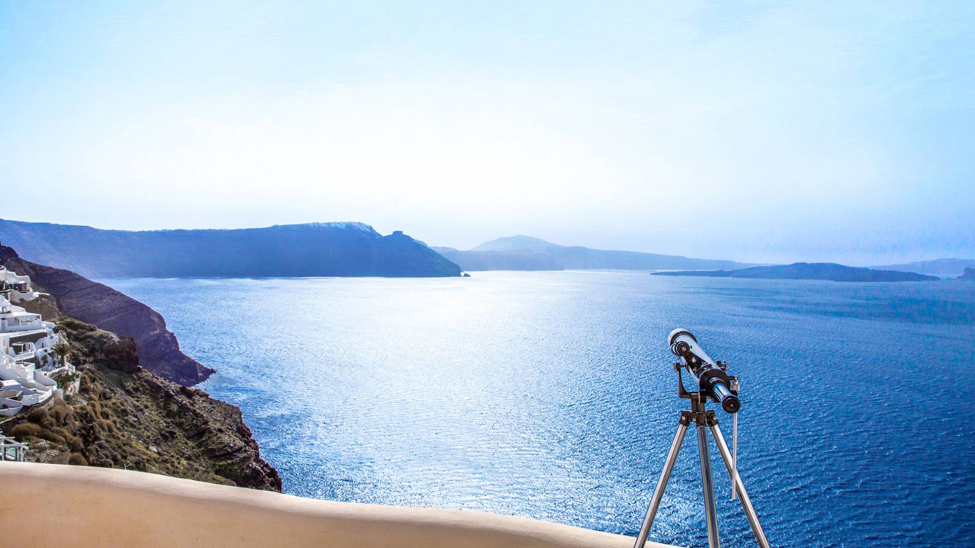 Entrambe le suite condividono un'incredibile terrazza privata di 340 mq. e una piscina a sfioro di 70 mq con una vista mozzafiato sulla Caldera. Una bella cucina completamente attrezzata si trova a pochi passi da entrambe le suite. Che tu stia scaldando uno spuntino leggero, o preparando un pranzo o una cena semplice ed elegante (inoltre, lo chef può prepararlo per te, su richiesta), troverai tutto ciò di cui hai bisogno a portata di mano.