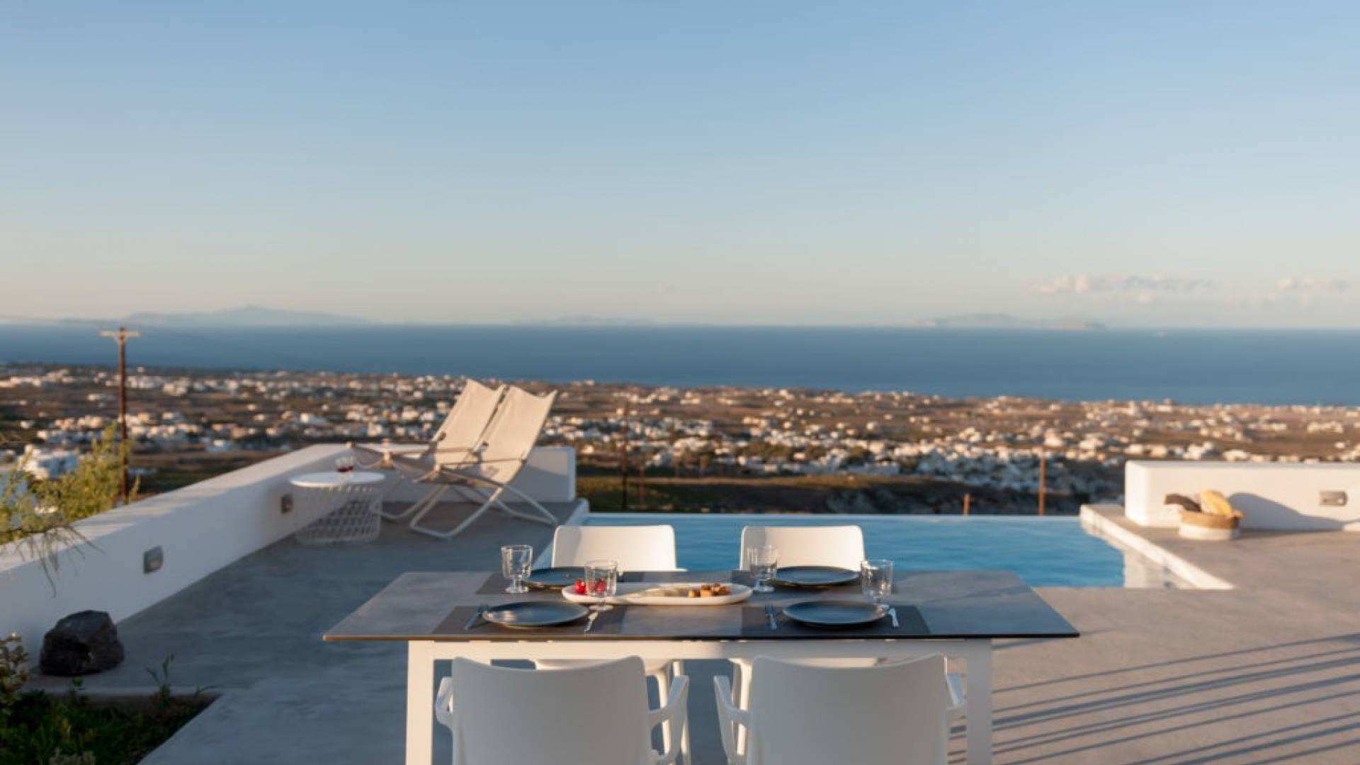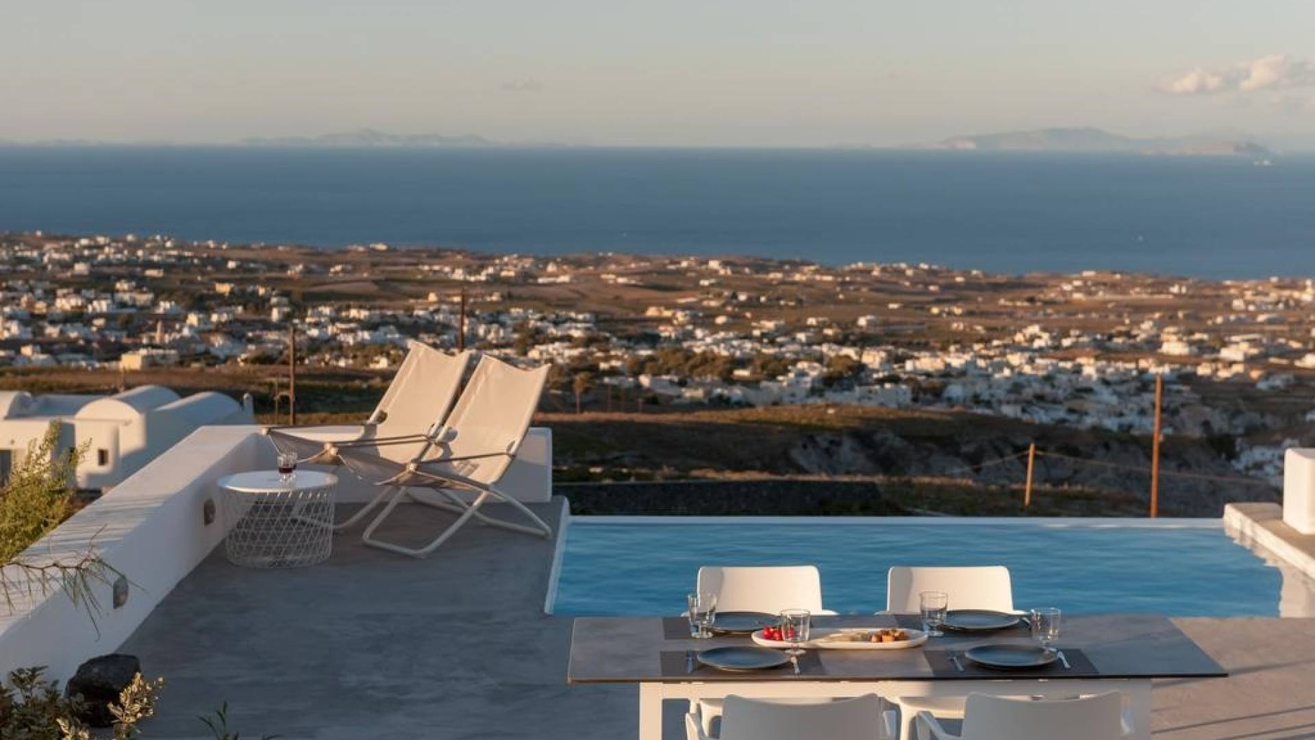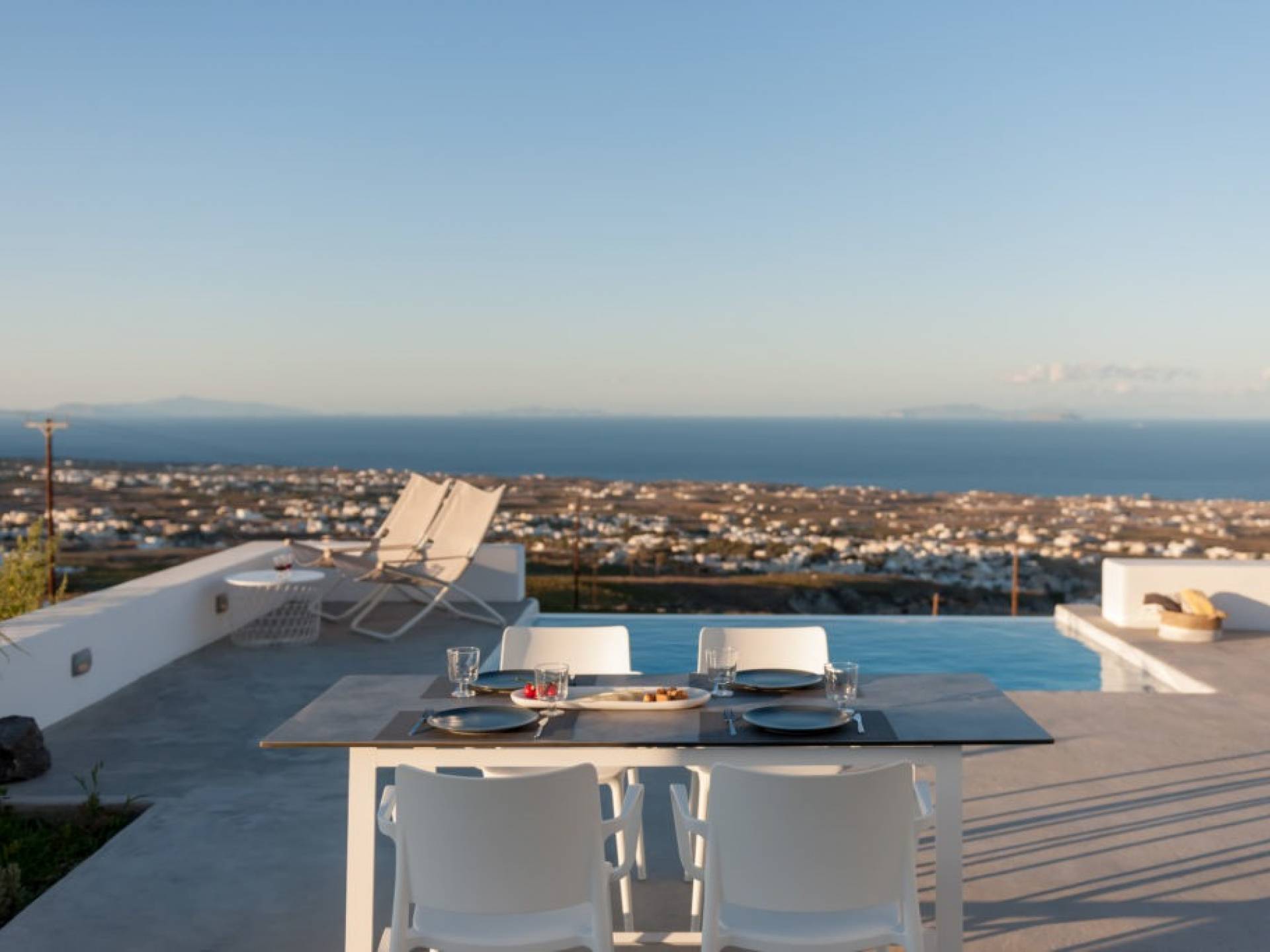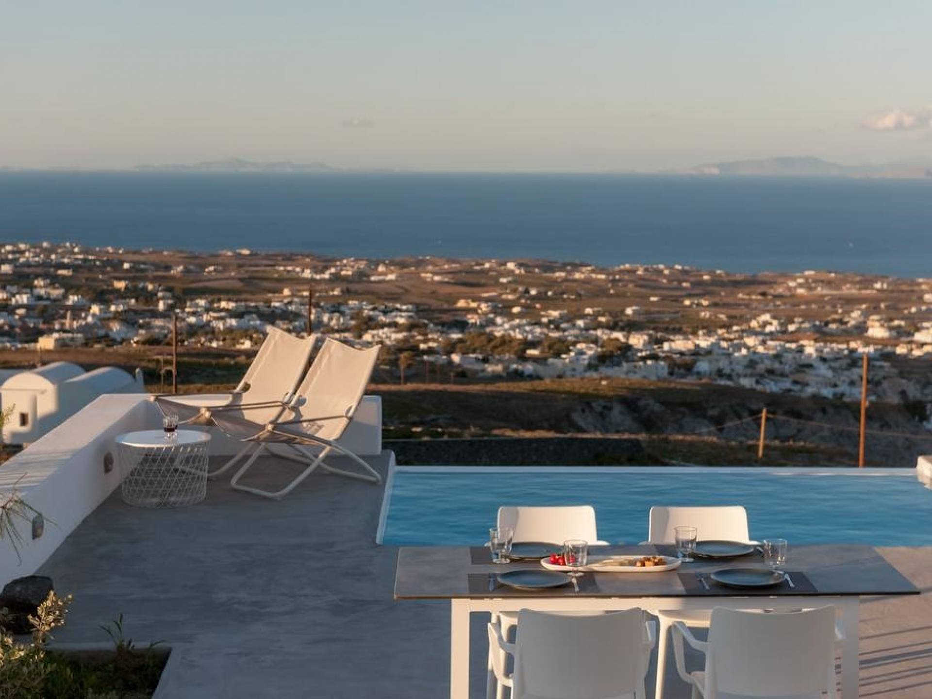 La posizione privilegiata del villaggio si affaccia sulla parte più grande dell'isola, offrendo viste mozzafiato sull'alba e sul Mar Egeo. Sandy Villa Santorini offre ampi spazi esterni. La villa ha la sua terrazza privata arredata con tavolo da pranzo, lettini e una piscina privata (con Jacuzzi) che si affaccia sulle splendide viste panoramiche sul mare, sul villaggio di Pyrgos e sul resto dell'isola. I panorami dell'alba sono il must delle case per coloro che stanno cercando di vedere questo bellissimo fenomeno fisico.