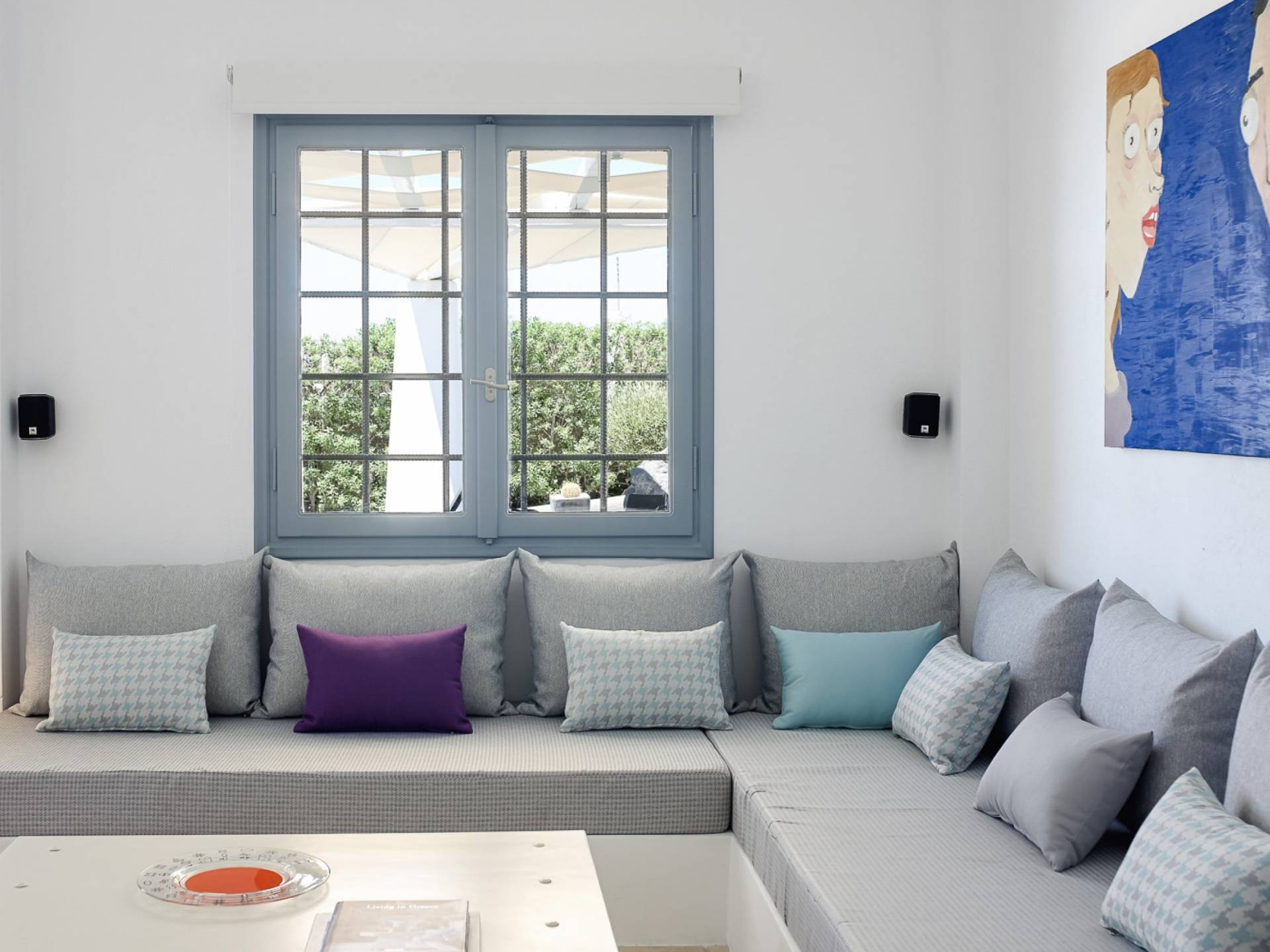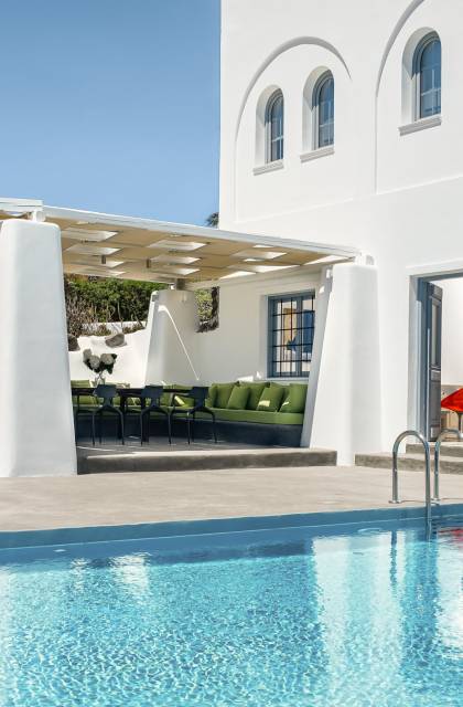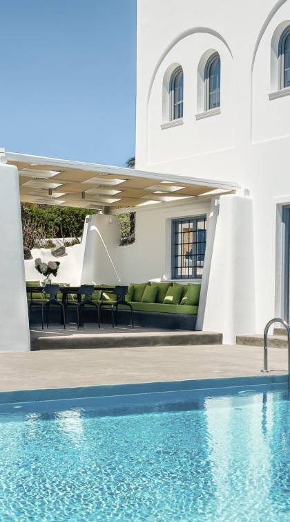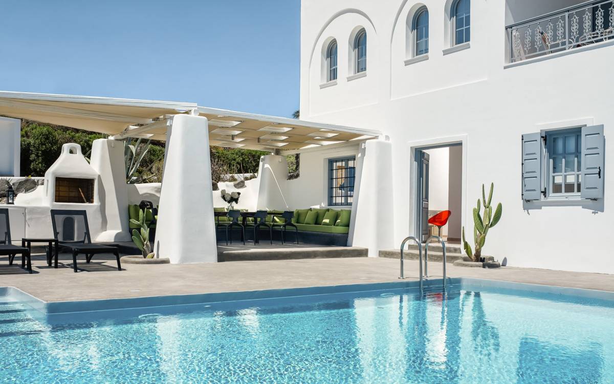 Elegantemente progettata e immersa nella brillante luce delle Cicladi, la tenuta è abbastanza spaziosa da ospitare fino a 14 ospiti nei suoi locali. La villa dispone di un ingresso indipendente su tutti e tre i livelli per garantire la massima privacy e tutti i comfort della casa per soddisfare le esigenze di ogni ospite. Le piscine private e le aree salotto all'aperto offrono viste suggestive sull'isola e sul blu del Mar Egeo.