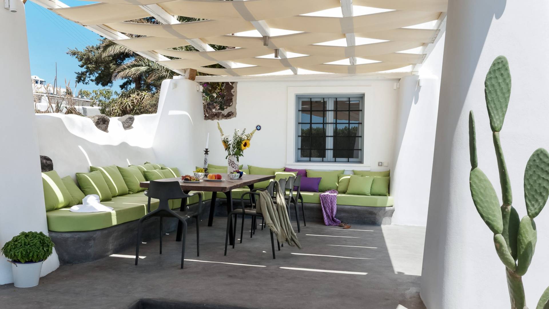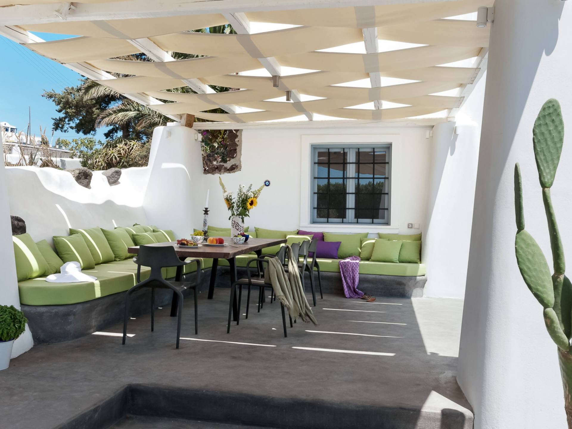 Christou Estate & Villas è l'ideale sia per una vacanza in famiglia che per un grande gruppo di amici o un evento speciale (matrimonio, anniversario, festa di compleanno). La disposizione del complesso consente a Christou Estate di avere la propria privacy e il senso di proprietà individuale. La tenuta promette privacy assoluta e un soggiorno indimenticabile per coloro che cercano di vivere l'autentica vita dell'isola di Santorini con tutti i comfort moderni.