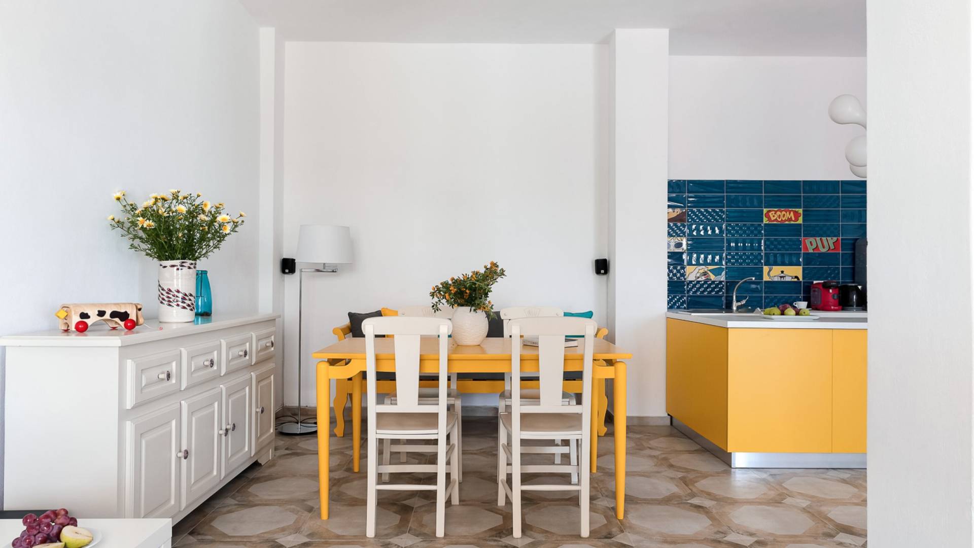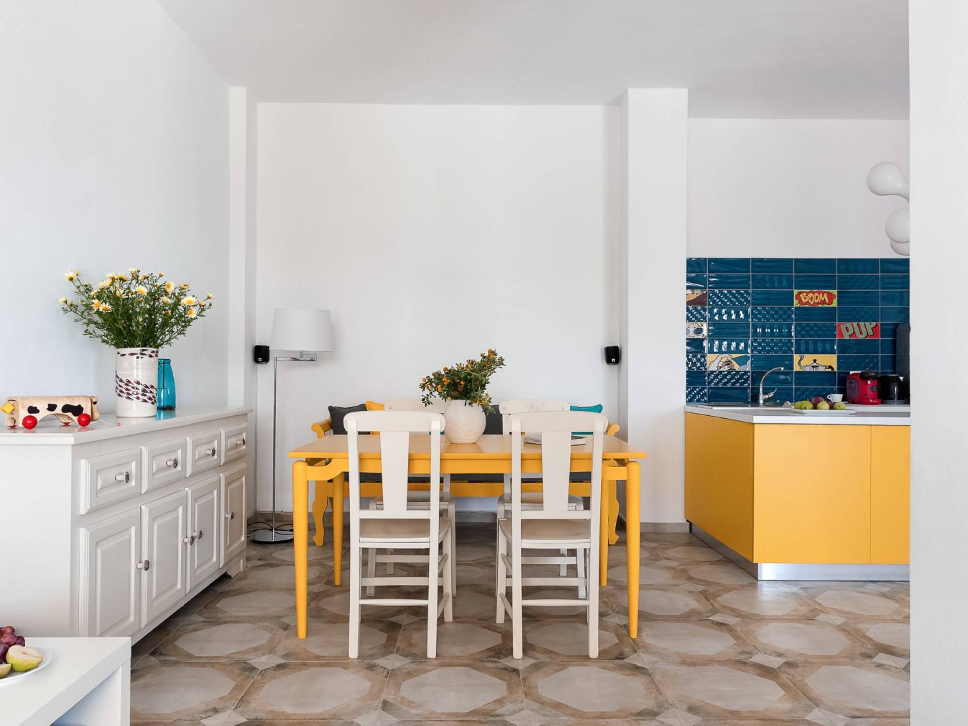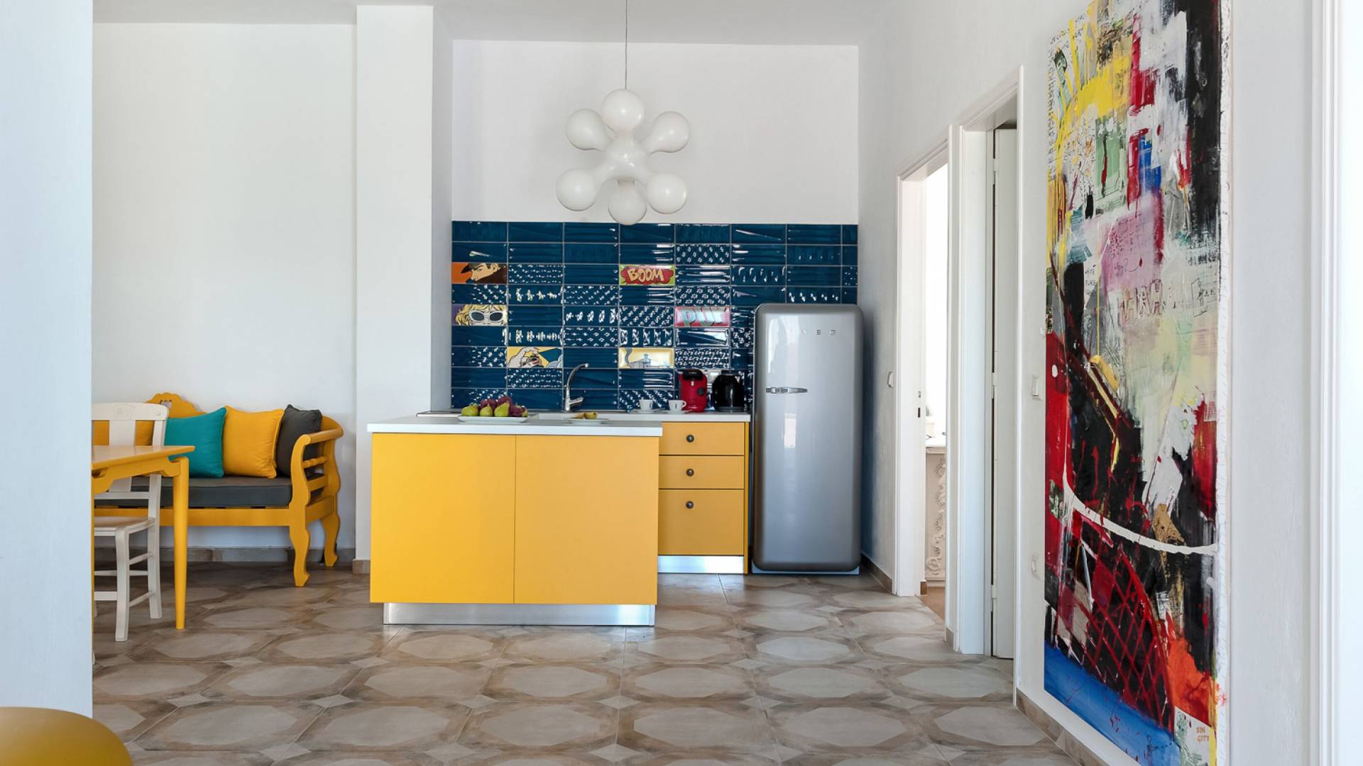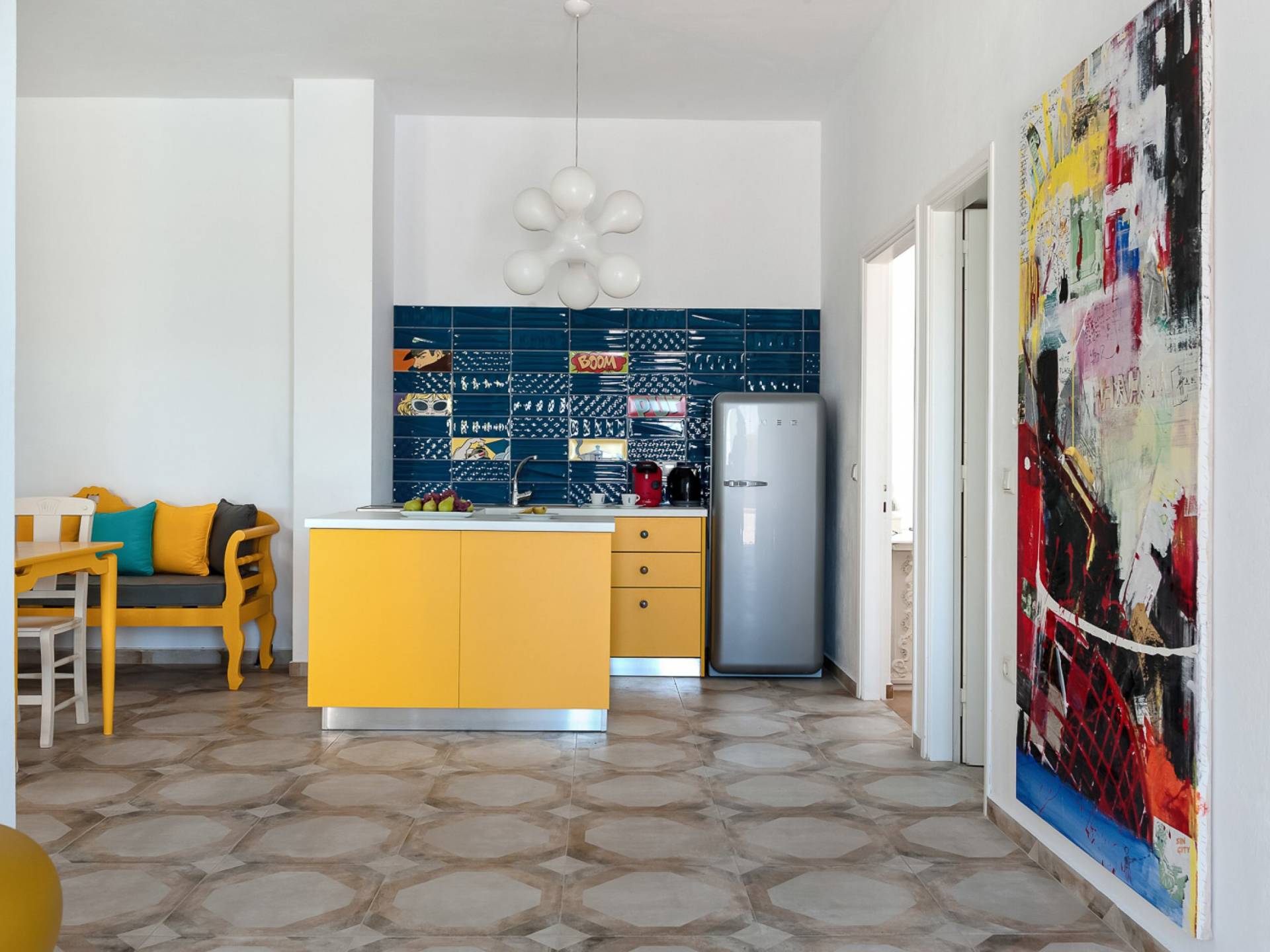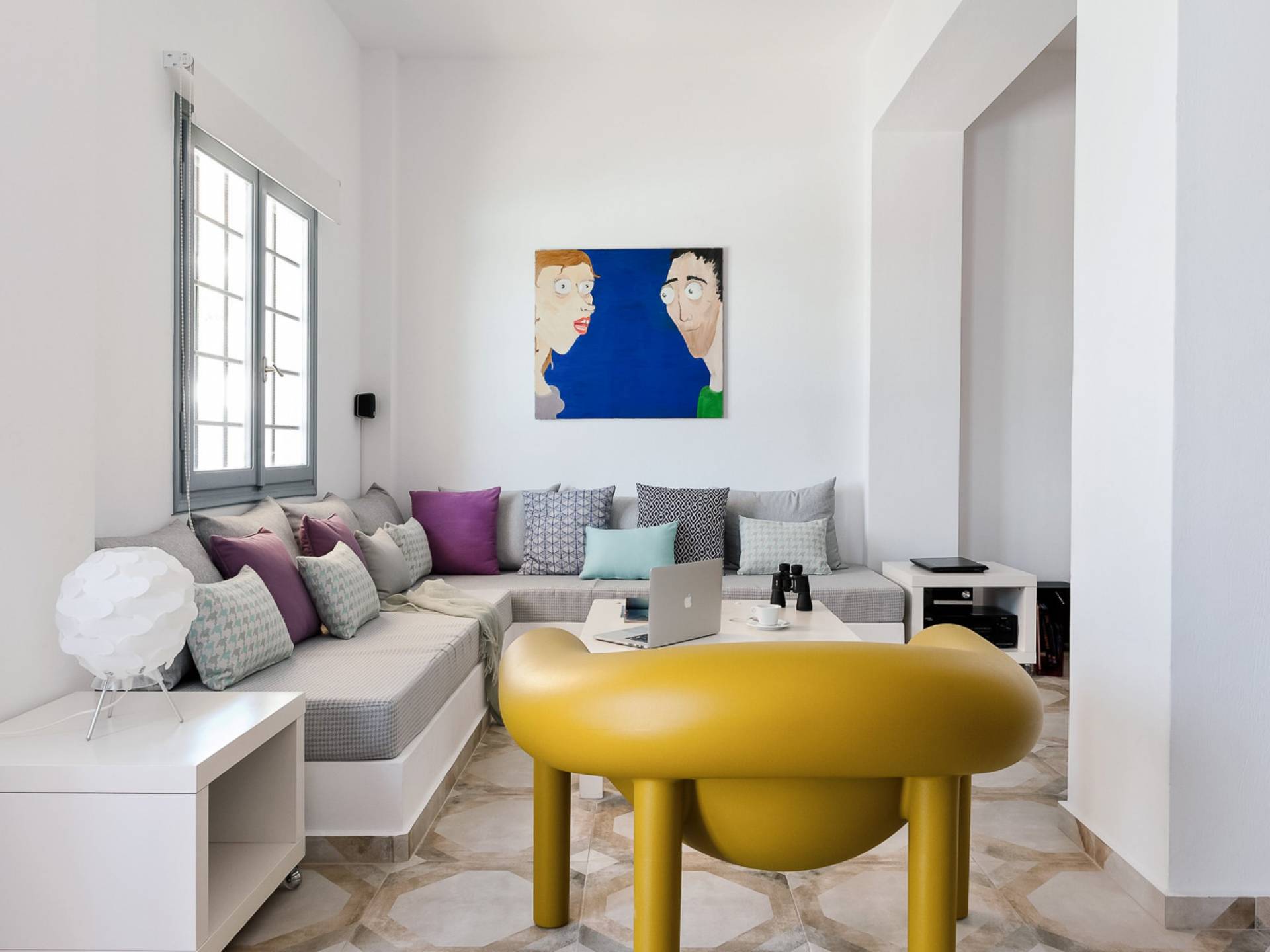 Questa villa in stile pop moderno di 85 m², situata nella regione medievale di Pyrgos Kallistis, offre una magnifica vista sul Mar Egeo e offre privacy e comfort high-tech. Si compone di un soggiorno/sala da pranzo a pianta aperta, una cucina completamente attrezzata, 2 camere da letto (una con letto matrimoniale e una con un letto matrimoniale o due letti singoli) e due bagni (uno con vasca e uno con doccia). La villa dispone di una piscina privata all'aperto con lettini e una spaziosa zona pranzo all'aperto.