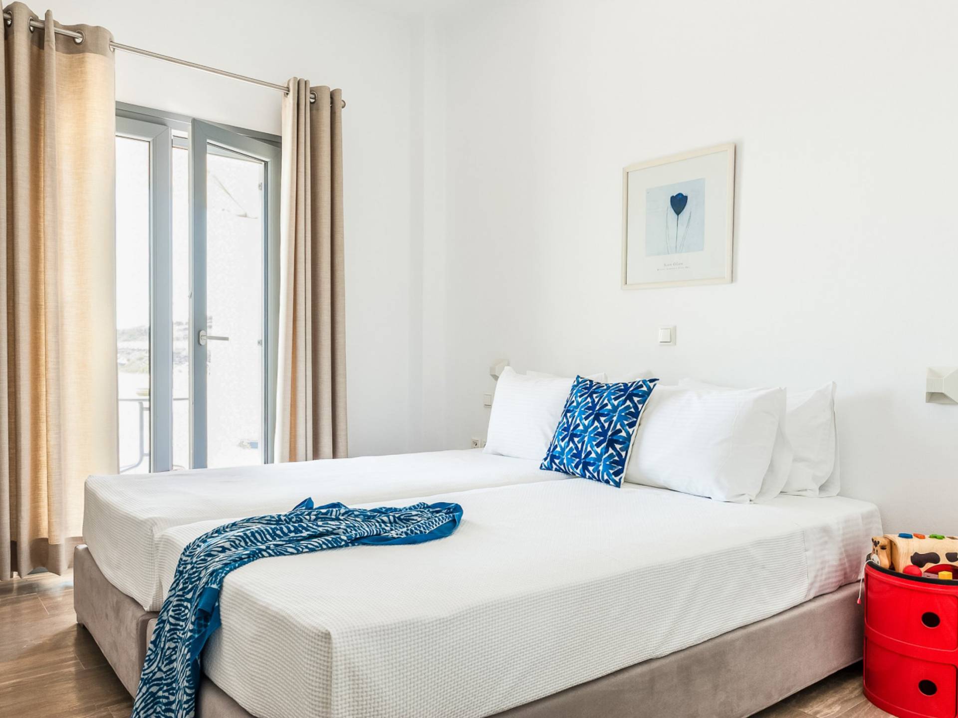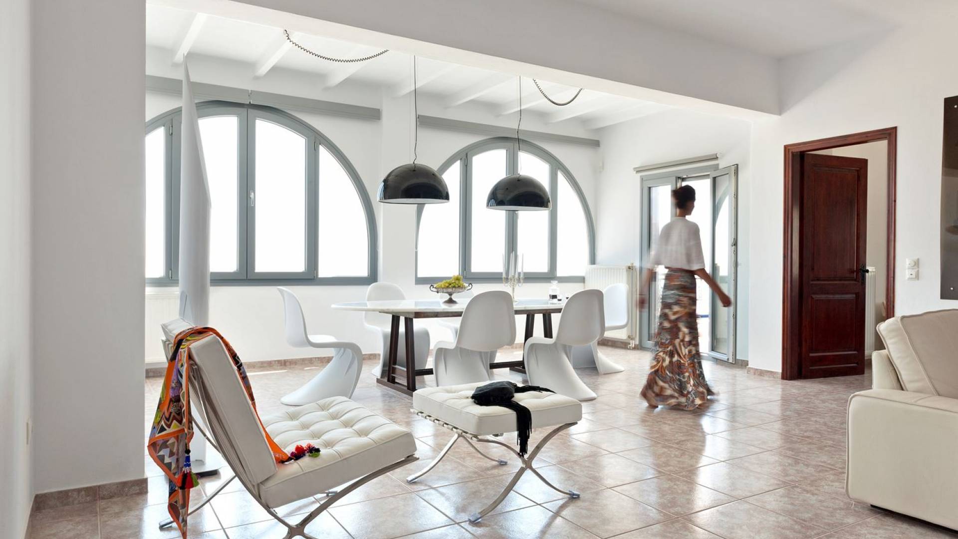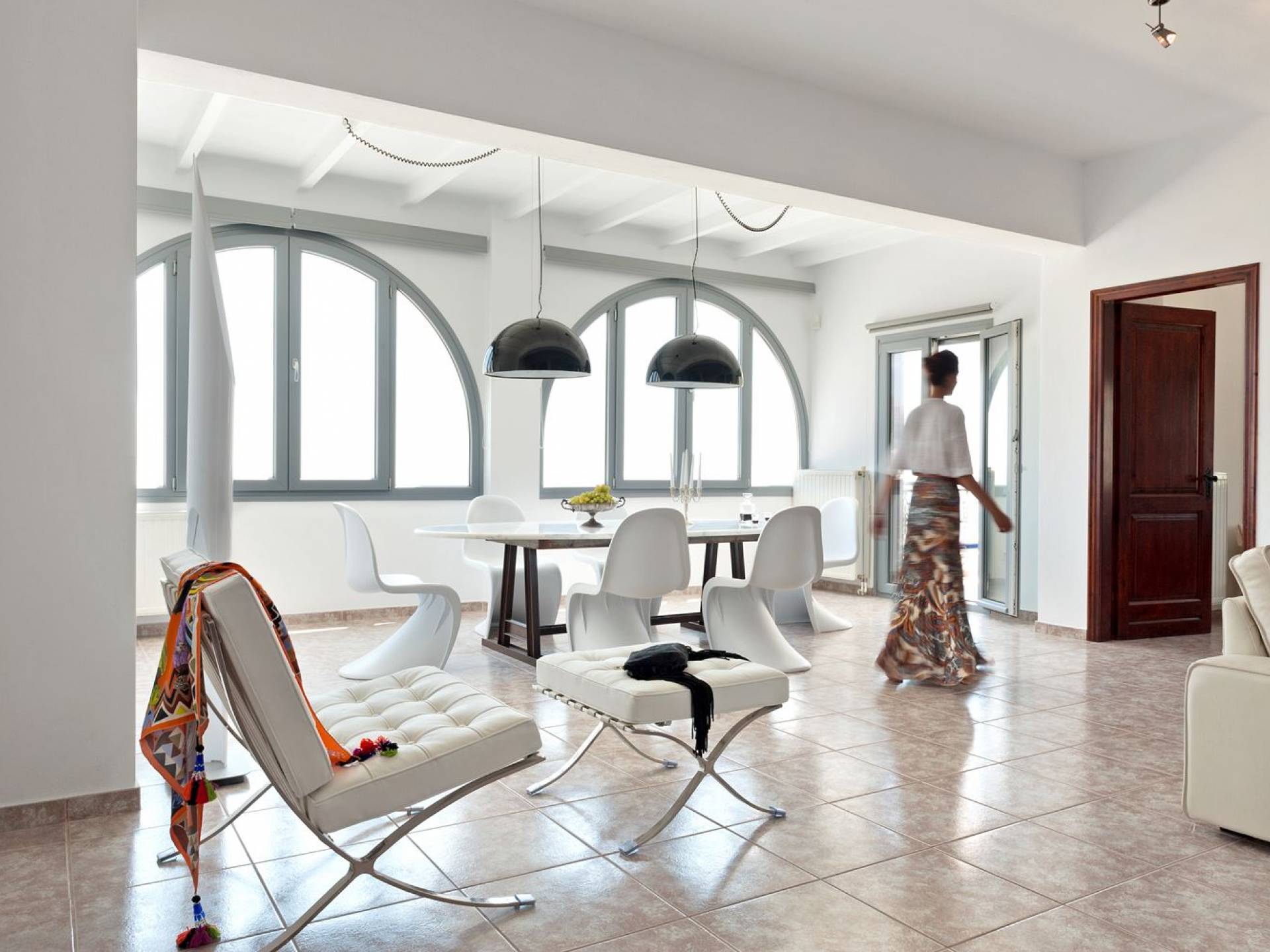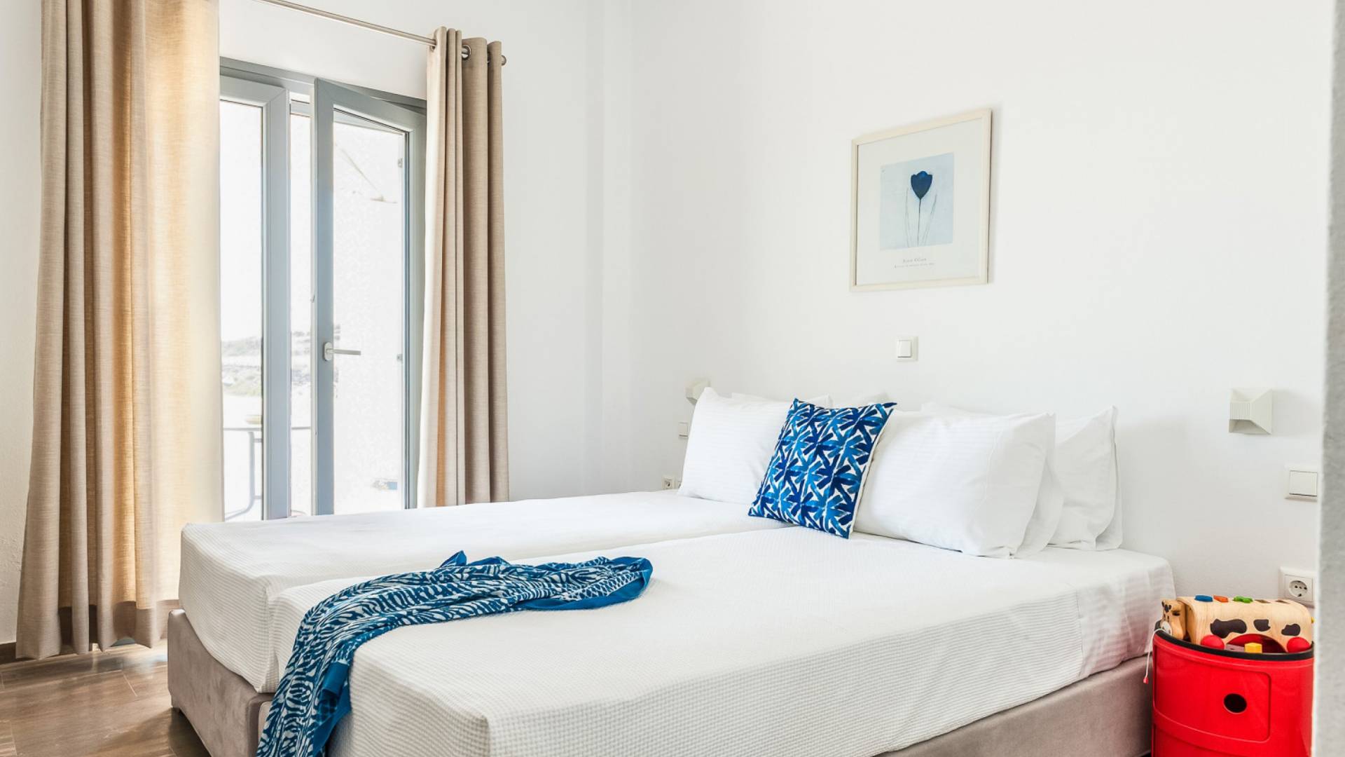 Elegantemente progettata e immersa nella brillante luce delle Cicladi, la tenuta è abbastanza spaziosa da ospitare fino a 14 ospiti nei suoi locali. La villa dispone di un ingresso indipendente su tutti e tre i livelli per garantire la massima privacy e tutti i comfort di casa per soddisfare le esigenze di ogni ospite. Le piscine private e le aree salotto all'aperto offrono viste suggestive sull'isola e sul blu del Mar Egeo.