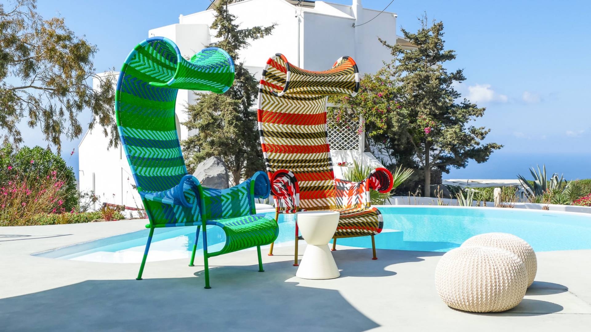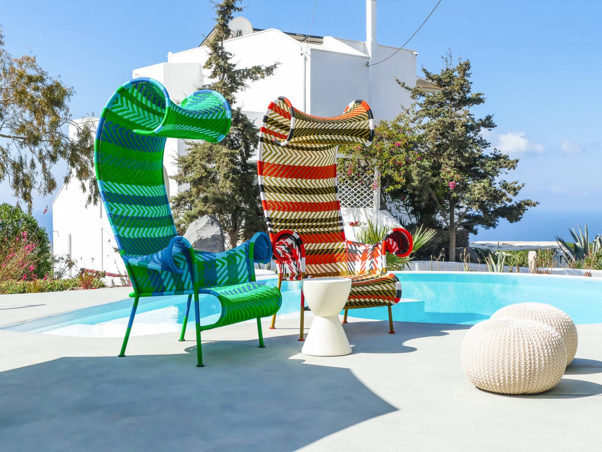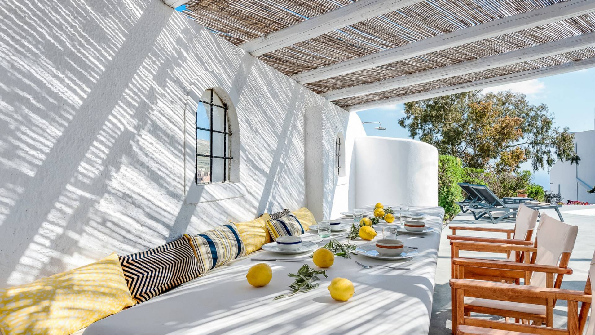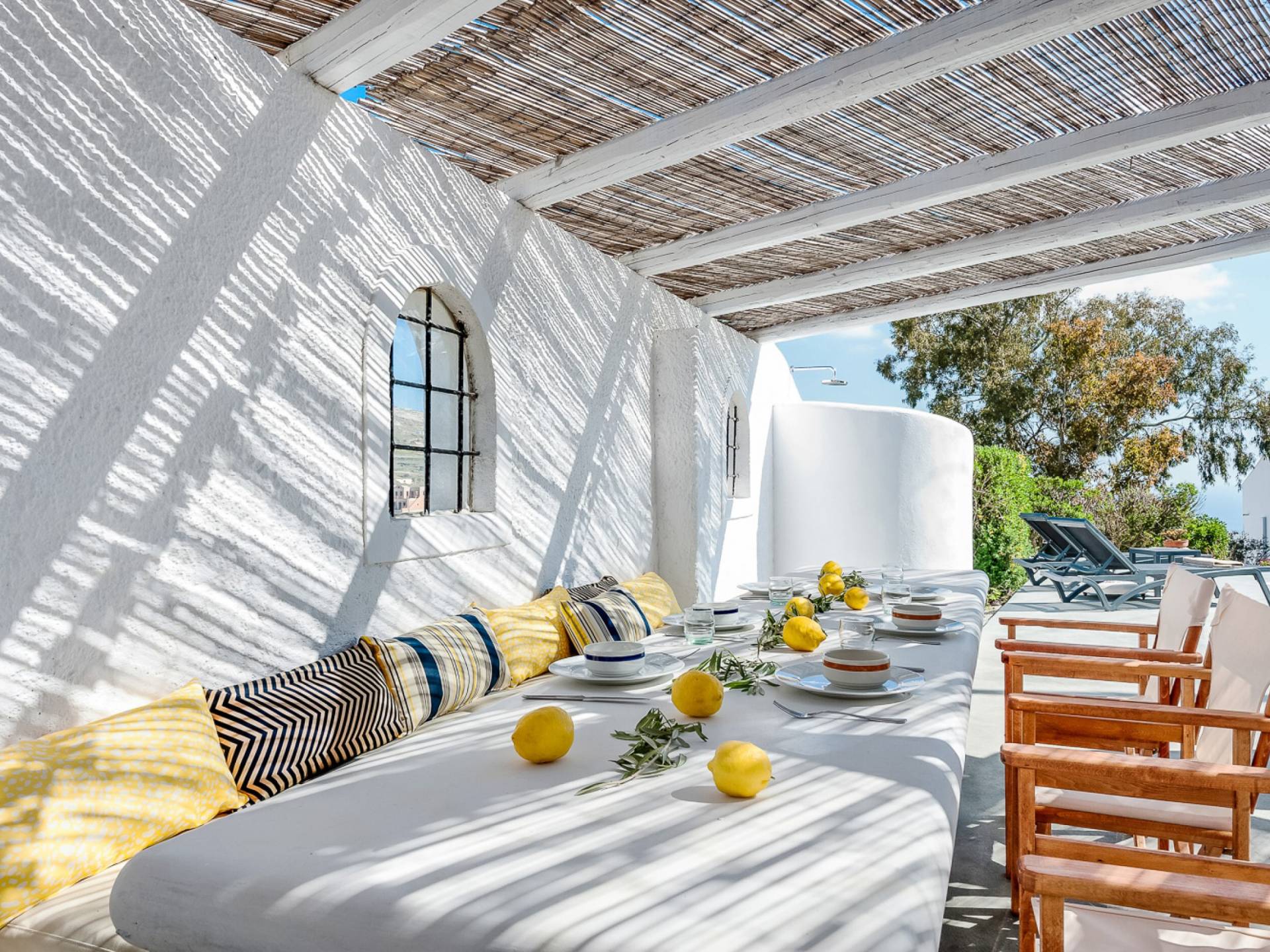 Concediti il lusso nella villa più grande della tenuta di 230 m², situata nella regione medievale di Pyrgos Kallistis. Riflettendo l'architettura tradizionale unita alle opere d'arte moderne di importanti artisti greci, il design unico della villa è l'ideale per coloro che cercano un soggiorno indimenticabile in un ambiente sofisticato. La villa è composta da un soggiorno, un'ampia sala da pranzo, una cucina completamente attrezzata, tre camere da letto (due con letti matrimoniali e una con due letti singoli) e due bagni (con doccia). Dispone di un balcone con vista panoramica sull'isola e di una vasca idromassaggio all'aperto riscaldata. La villa offre una piscina privata all'aperto con lettini e una zona pranzo all'aperto.