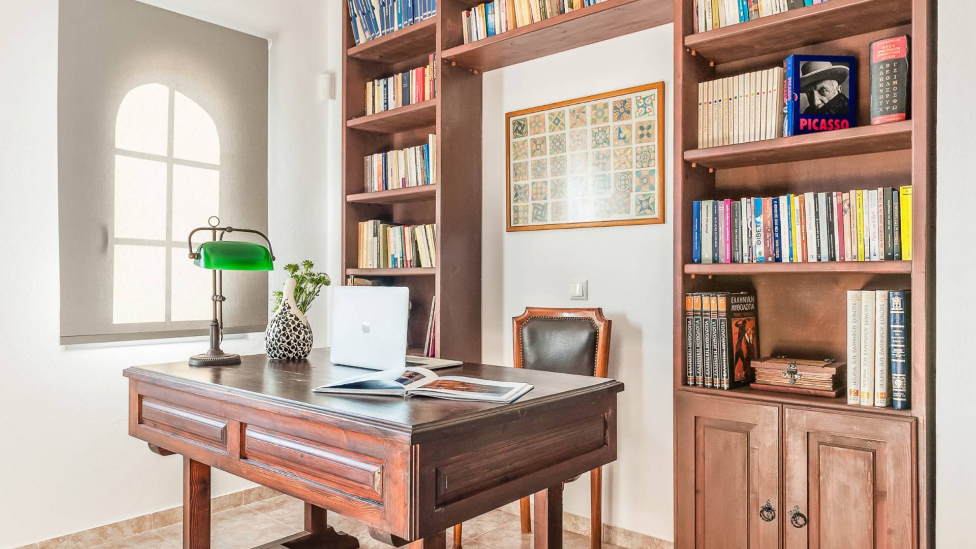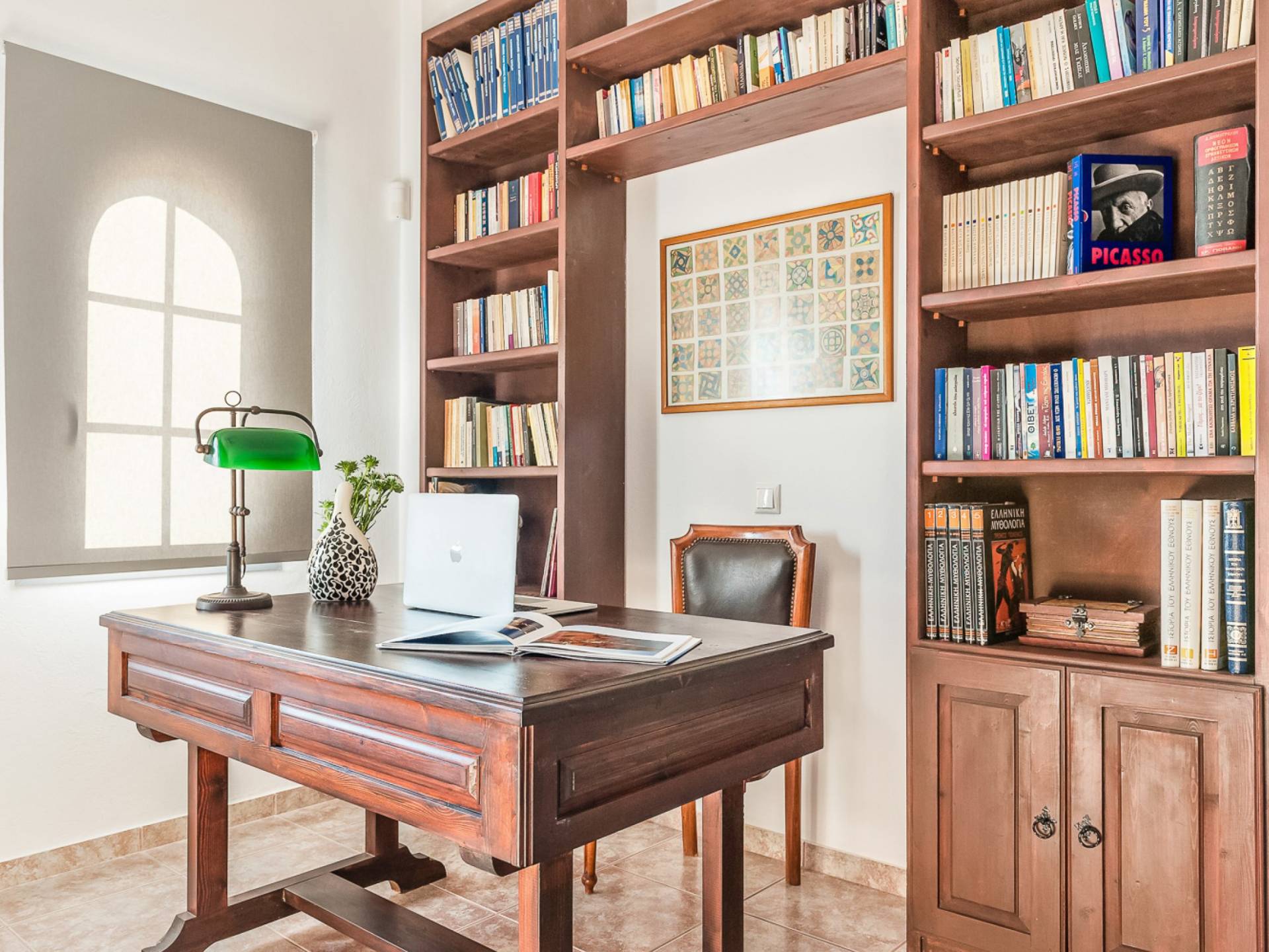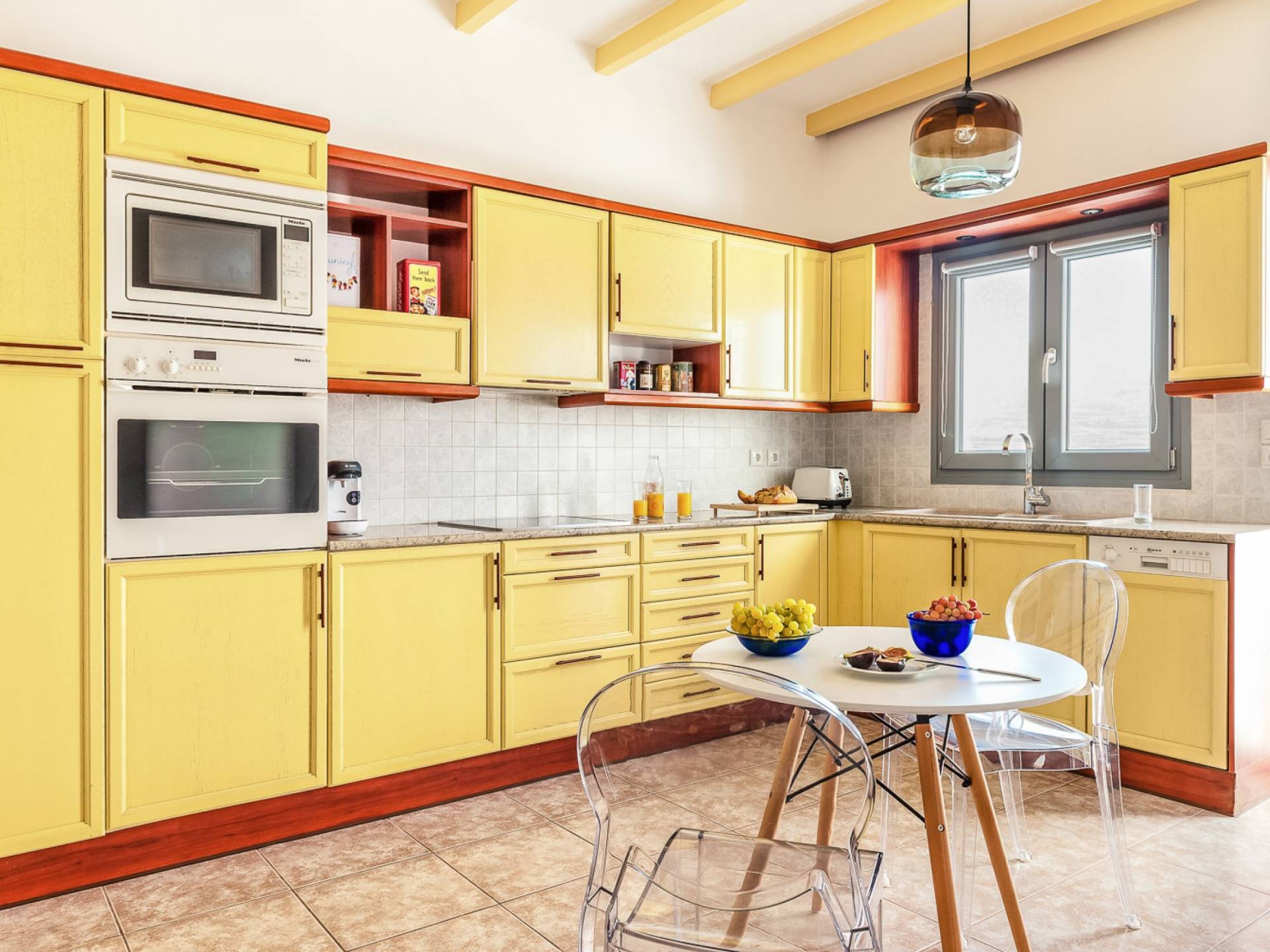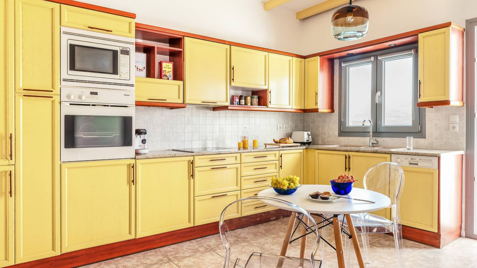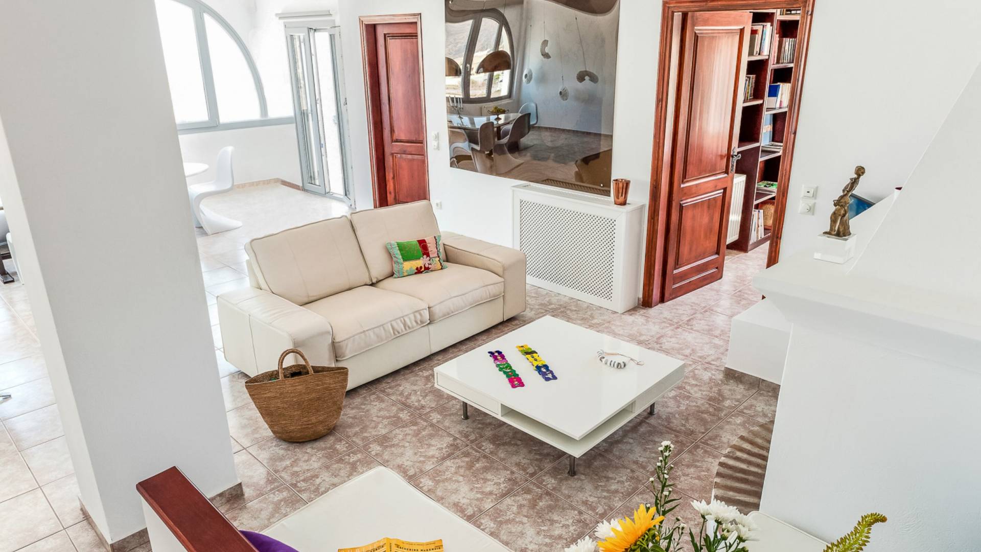 Concediti il lusso nella villa più grande della tenuta di 230 m², situata nella regione medievale di Pyrgos Kallistis. Riflettendo l'architettura tradizionale unita alle opere d'arte moderne di importanti artisti greci, il design unico della villa è l'ideale per coloro che cercano un soggiorno indimenticabile in un ambiente sofisticato. La villa è composta da un soggiorno, un'ampia sala da pranzo, una cucina completamente attrezzata, tre camere da letto (due con letti matrimoniali e una con due letti singoli) e due bagni (con doccia). Dispone di un balcone con vista panoramica sull'isola e di una vasca idromassaggio all'aperto riscaldata. La villa offre una piscina privata all'aperto con lettini e una zona pranzo all'aperto.