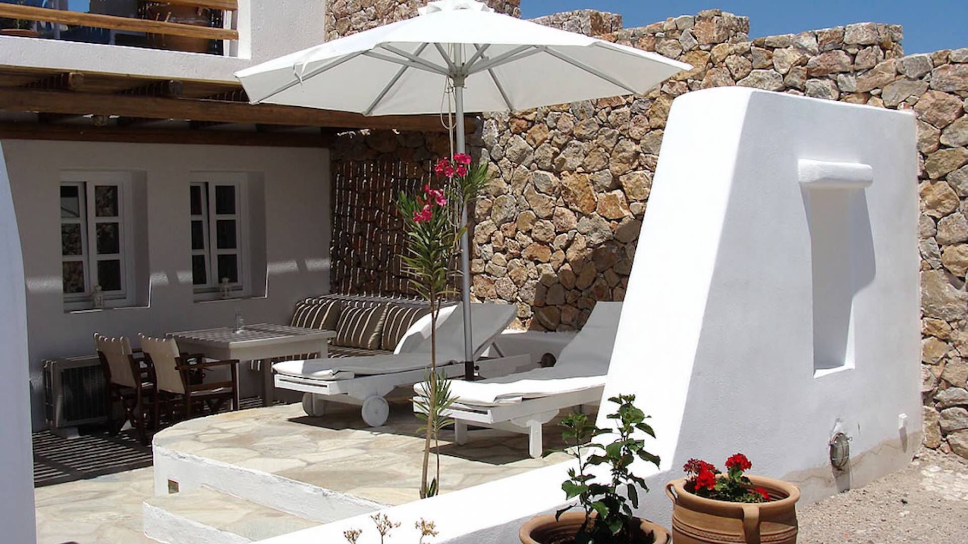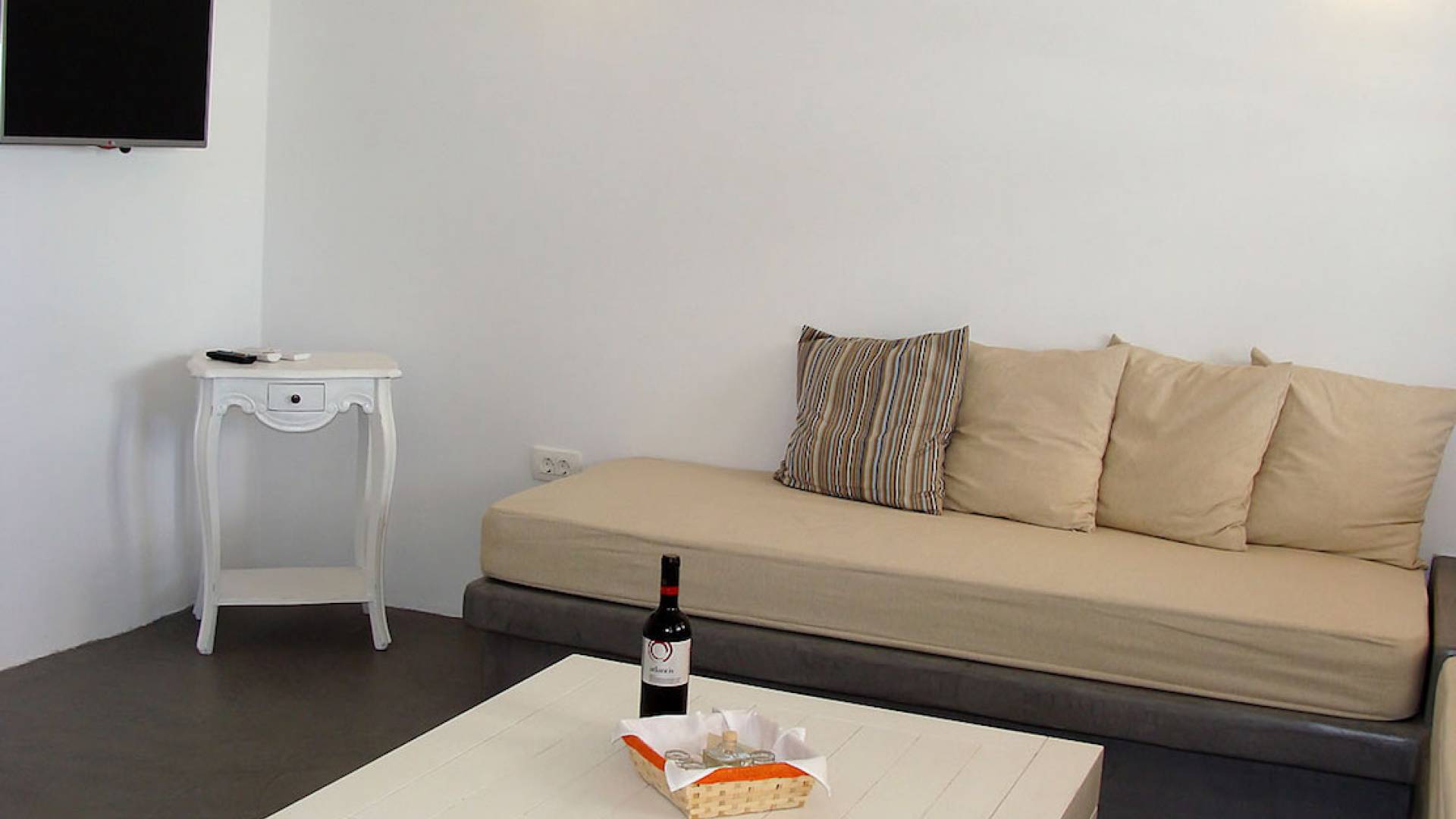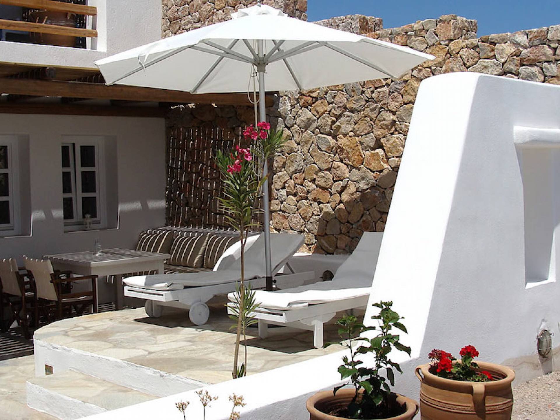 Villa Anema Sorokos è composta da un'area a pianta aperta, con una camera da letto con letto queen size e una confortevole zona giorno con 2 divani letto in stile isolano: bagno con doccia a pioggia. Angolo cottura con mini-frigo e piano cottura a 2 fuochi e tutti gli utensili da cucina necessari. L'area esterna è composta da una confortevole zona pranzo, un barbecue completamente attrezzato, lettini, un ombrellone e viste sui giardini circostanti.