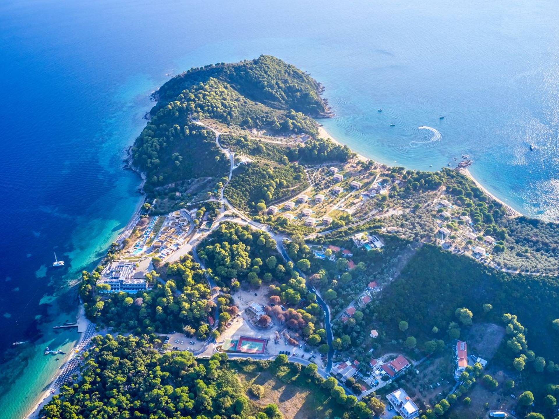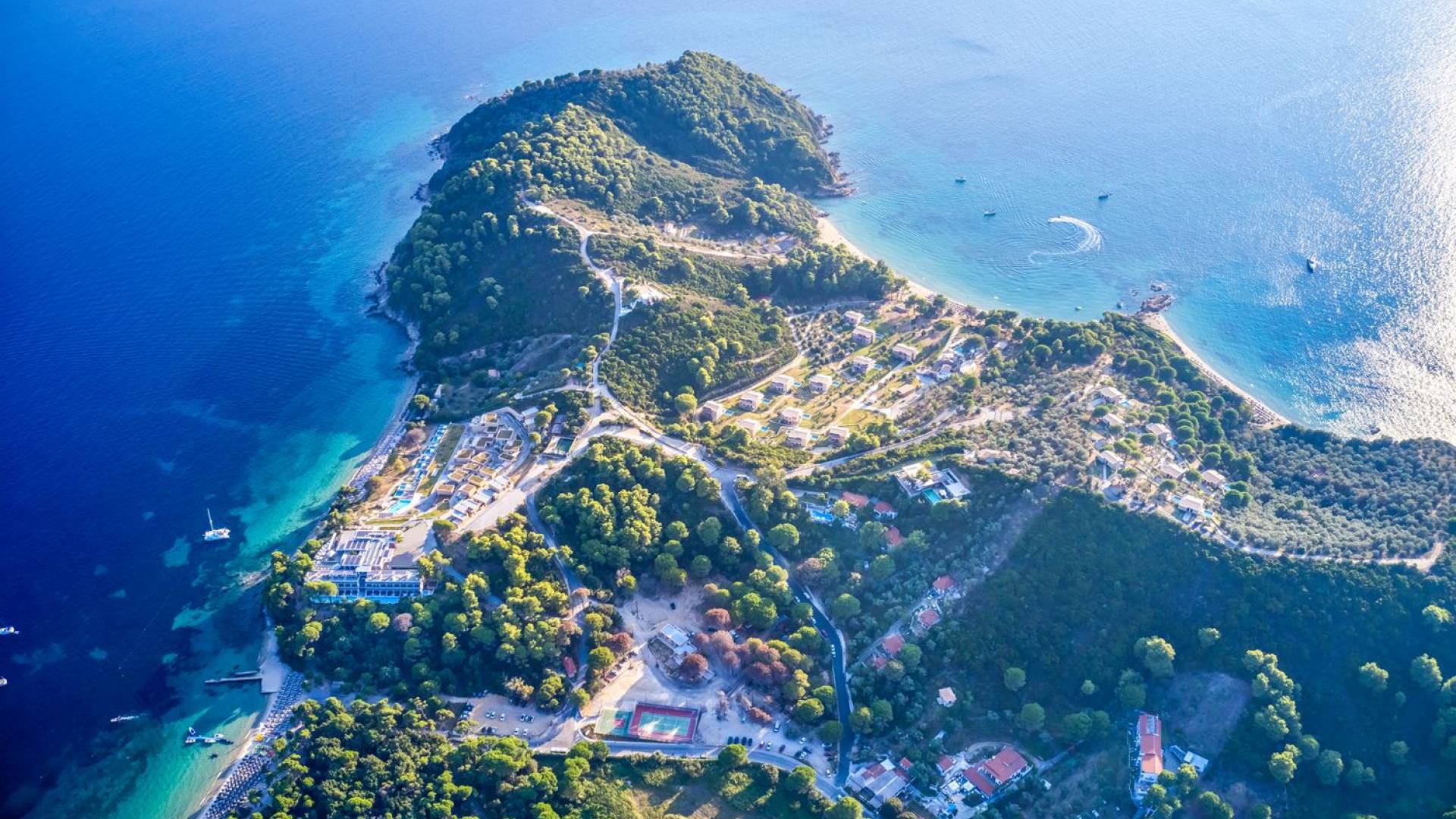 Nella parte sud-occidentale di Skiathos, l'hotel ELIVI Skiathos è arroccato in cima a una collina ricoperta di pini e un ricco uliveto. situata sulla penisola di Pounta che domina le quattro spiagge più belle di Skiathos, Koukounaries, Ambelakia, Banana e la piccola spiaggia di Banana, copre uno spazio continuo di 213 acri.