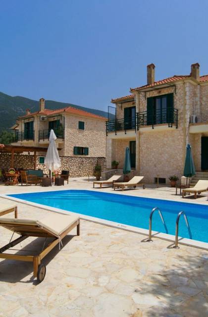 Olive Garden Estate a Sami, Cefalonia è una combinazione delle ville gemelle in pietra "Stathis" e "Erotokritos" costruite nel 2008 con un modo tradizionale utilizzando la pietra di Cefalonia. Ogni pietra è stata tagliata individualmente a mano. Entrambe le ville hanno il proprio giardino privato di circa 1500m2, ognuna circondata da ulivi. In queste ville, ti godi sia l'atmosfera tradizionale greca che il lusso moderno.