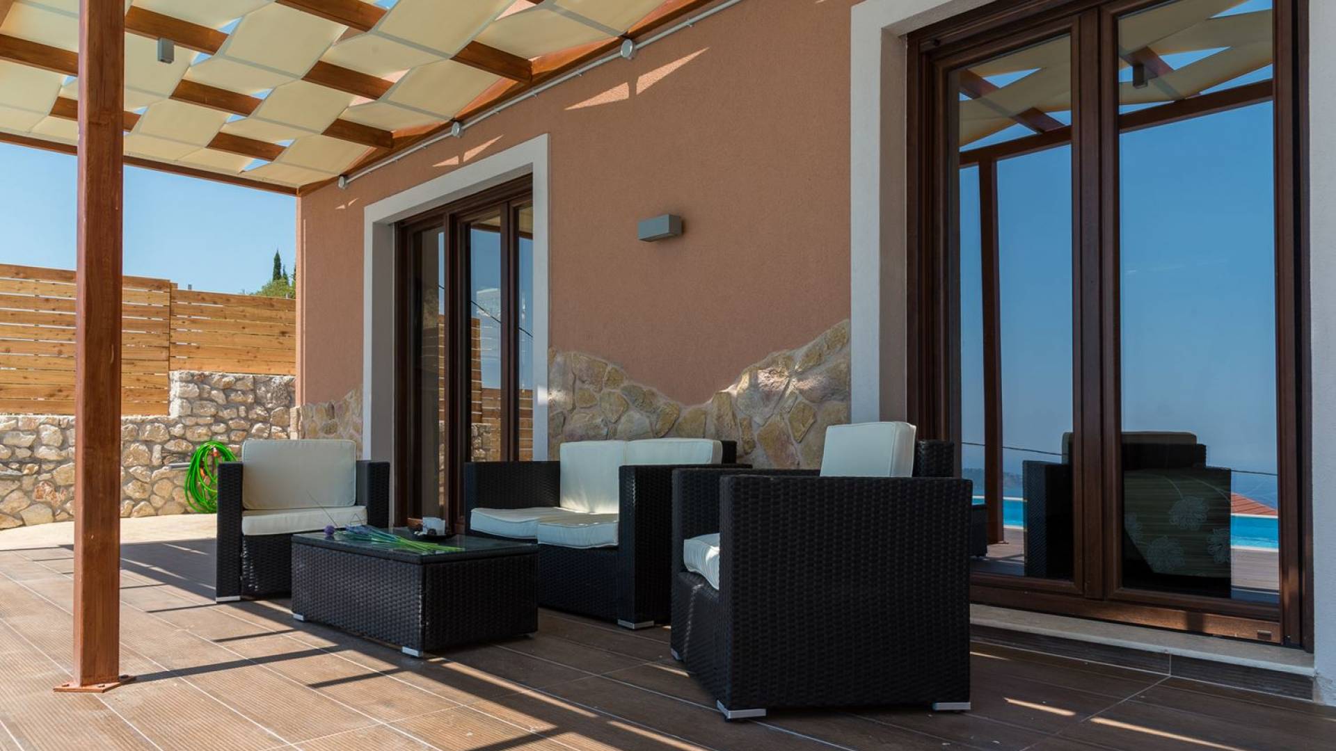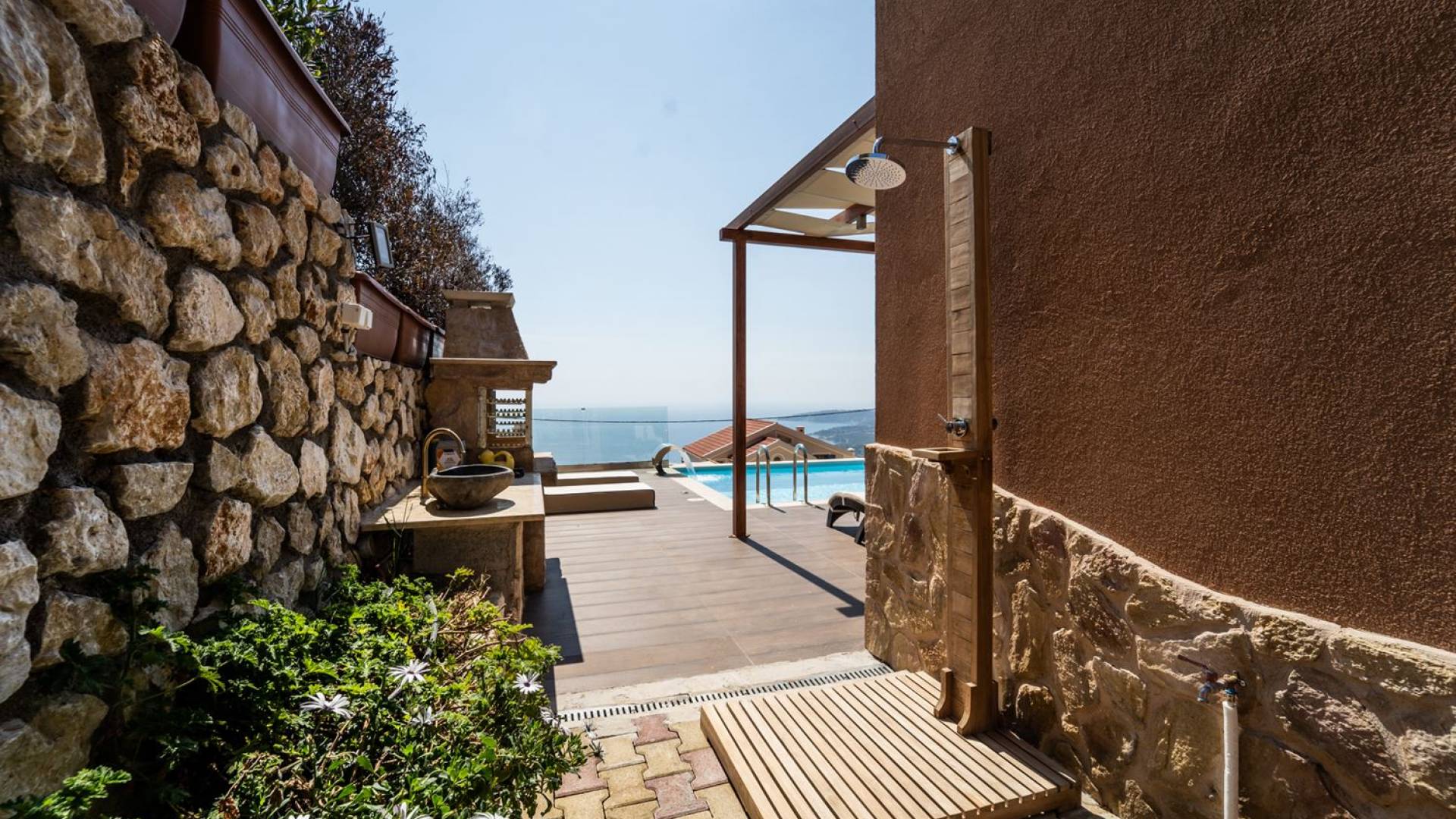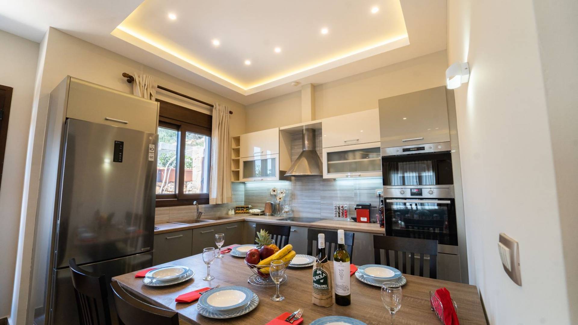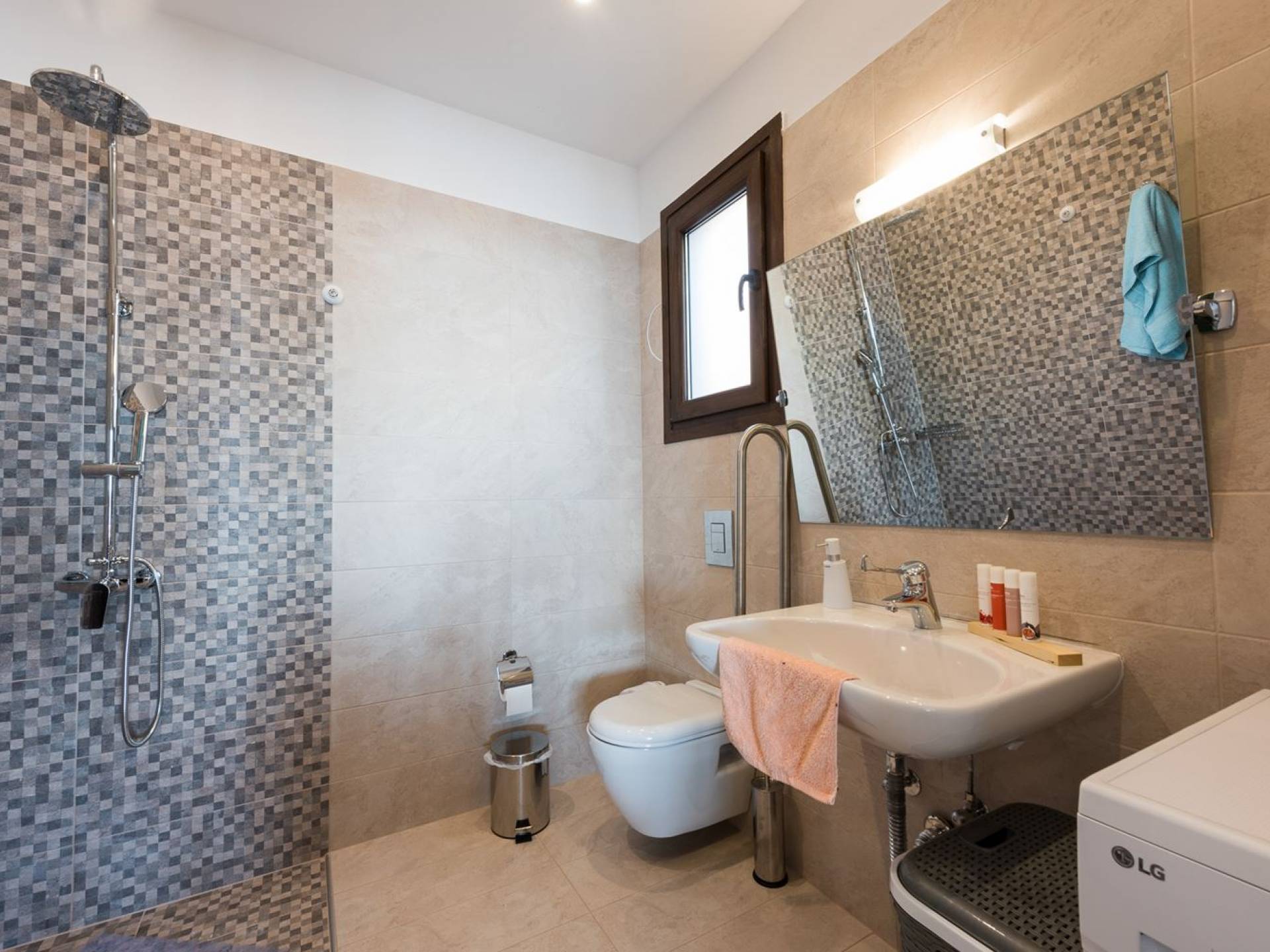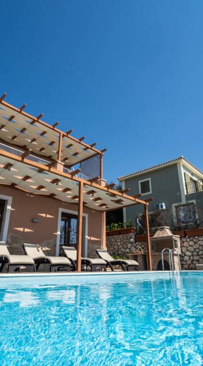 La villa a 2 piani è di 114 mq, dispone di 2 camere da letto, 1 divano letto (2,90 x 2,50), culla, 2 wc, soggiorno e cucina. È accogliente per le persone disabili e anche una Green Villa con i migliori standard di risparmio energetico. C'è anche una piscina di 28,50 mq che ha un sistema di pulizia del verde senza prodotti chimici. Inoltre, posto per bambini pieno di erba, barbecue, garage per l'auto, lettini, pergolati sia al piano terra che al primo piano. La distanza dall'aeroporto in auto è di circa 12 minuti, dalla capitale di Cefalonia, Argostoli, 15 minuti, dal minimarket più vicino a meno di 3 minuti e dalle spiagge più vicine di Lourdas e Trapezaki 5-7 minuti. Questo è un luogo ideale per riposarsi e anche una base per scoprire Cefalonia.