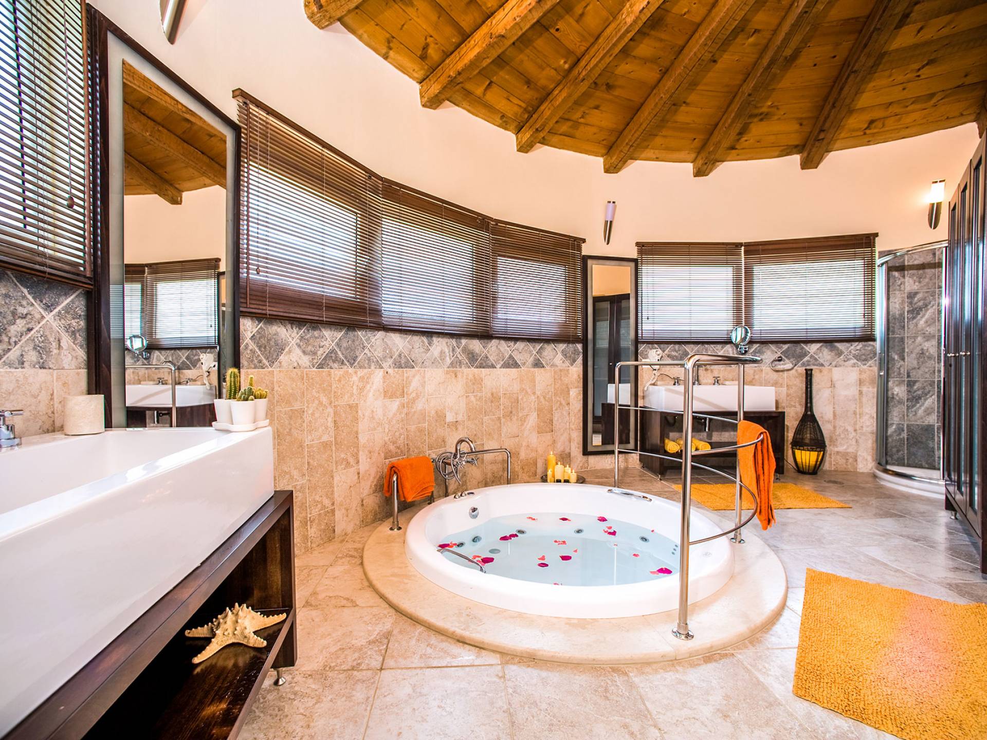 Colore blu, sole e lusso, niente può battere questa combinazione. Cos'altro c'è da chiedere per le tue vacanze? Concediti una piscina privata riscaldata nell'intimità della tua villa, sia interna che esterna. L'acqua è curativa e terapeutica e laverà…