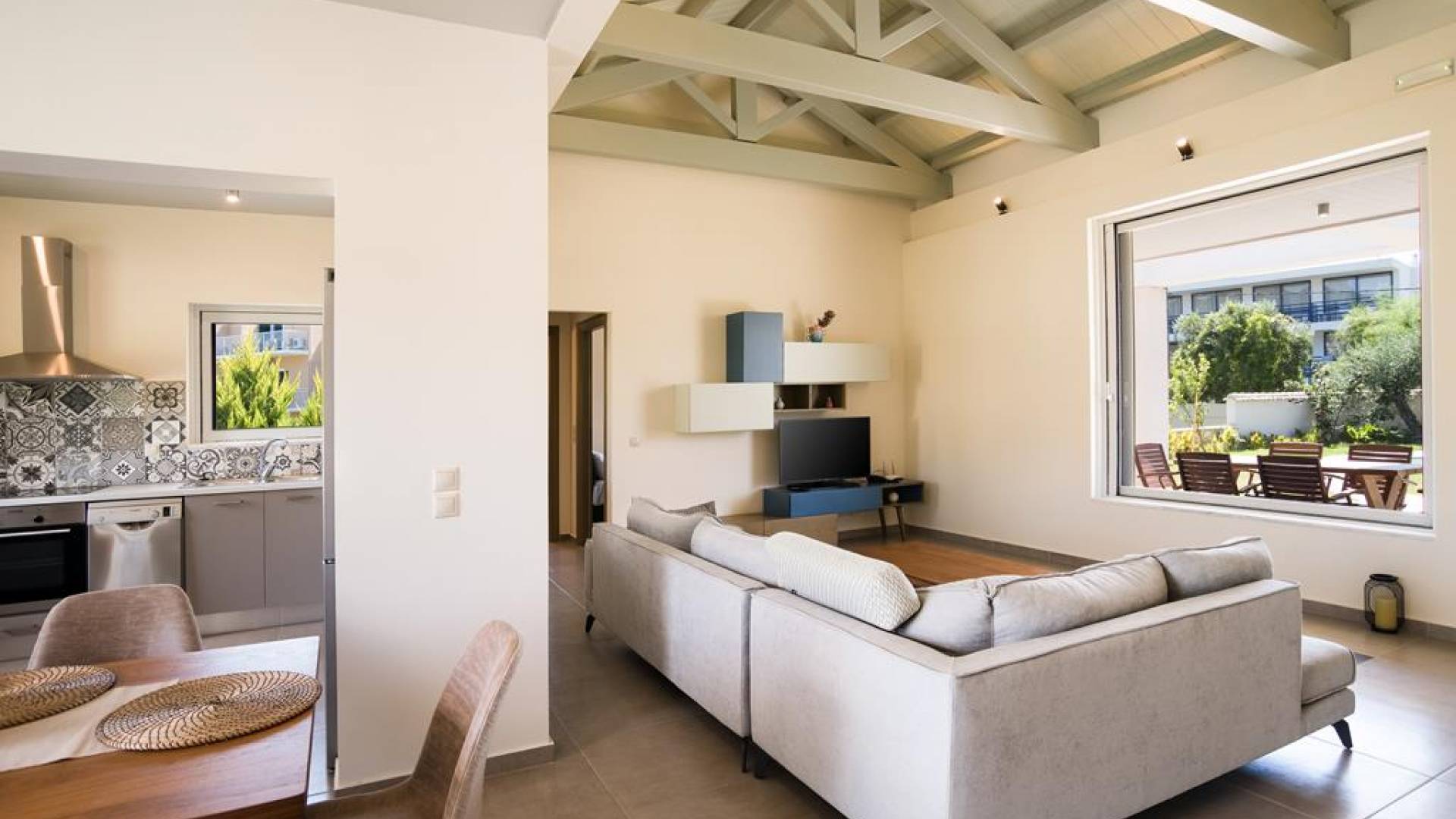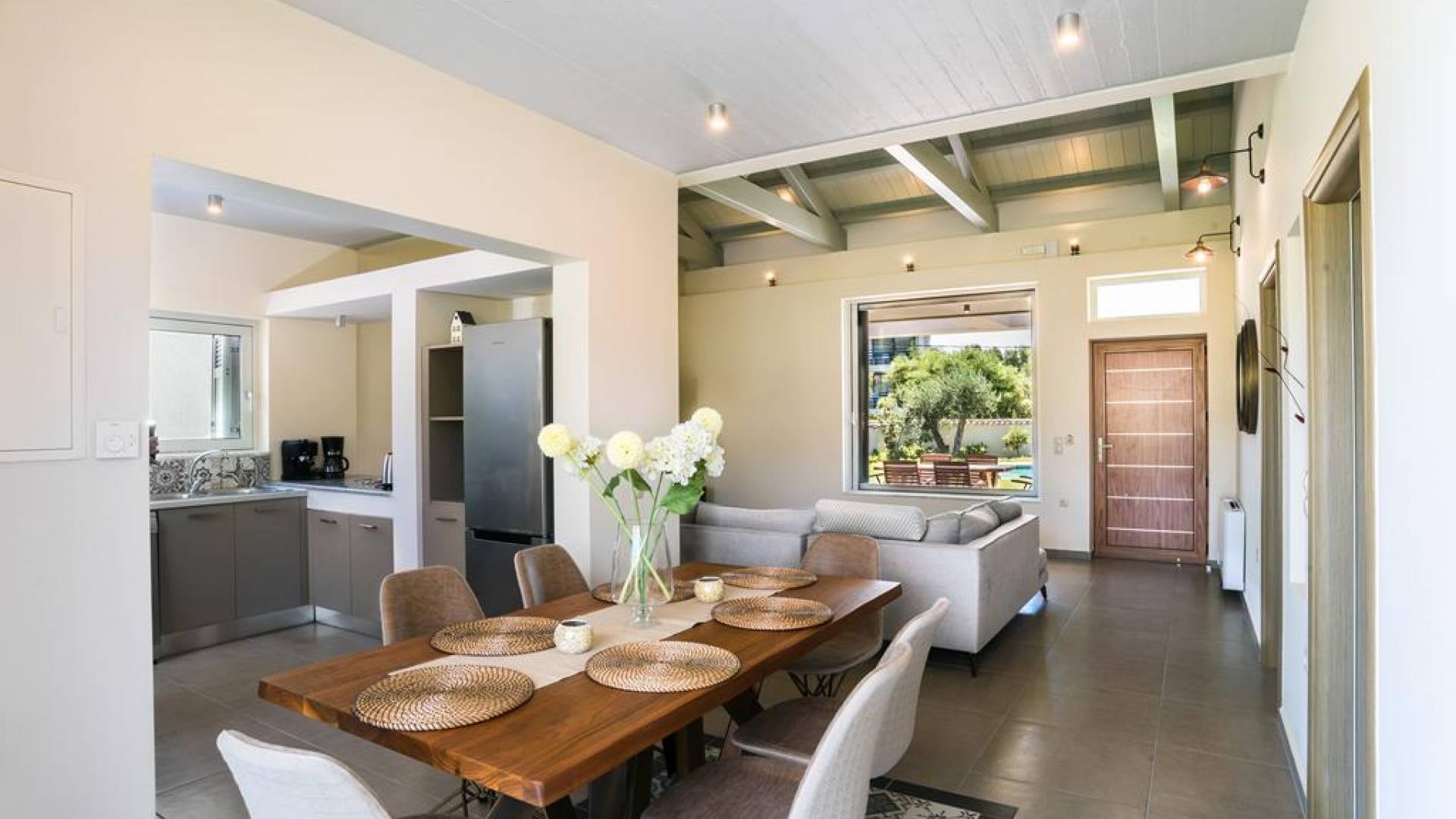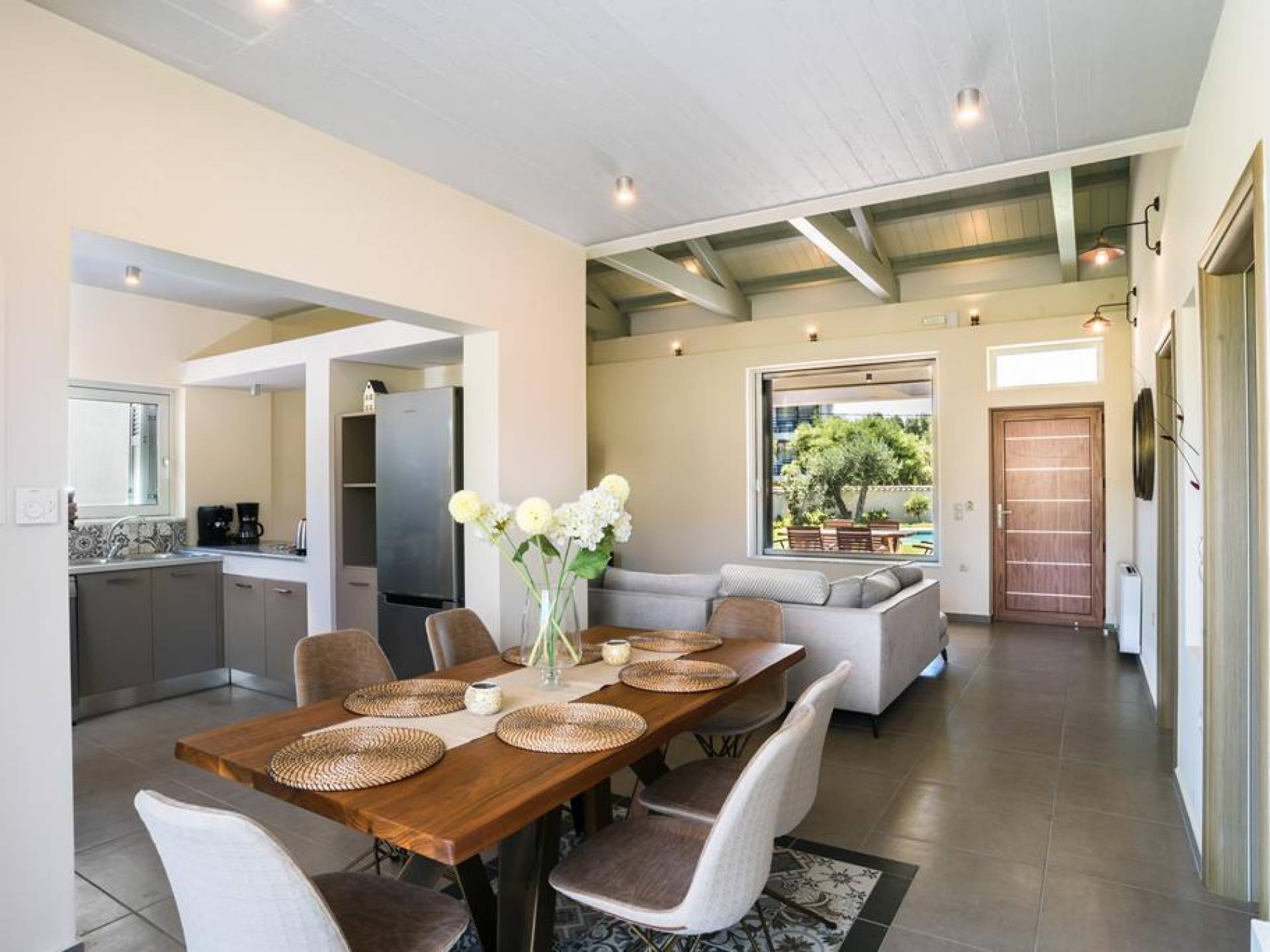 Villa Erotas Corfù offre una cucina completamente attrezzata, una sala da pranzo, un bagno extra e un soggiorno spazioso e moderno con un divano che può essere facilmente trasformato in un comodo letto singolo. La particolarità di Villa Erotas Corfù è il tetto con travi in legno a vista nel soggiorno, che si accostano ai toni del bianco e del grigio e creano una lussuosa atmosfera di relax e serenità. Dal soggiorno si accede direttamente ad una grande terrazza, dove potrete gustare la vostra colazione o un drink rinfrescante davanti al giardino e alla piscina. Tutte le camere offrono Smart TV da 32 pollici, mentre il soggiorno Smart TV da 43 pollici. Canali satellitari, connessione Wi-Fi gratuita, riscaldamento e aria condizionata sono disponibili in tutte le aree.