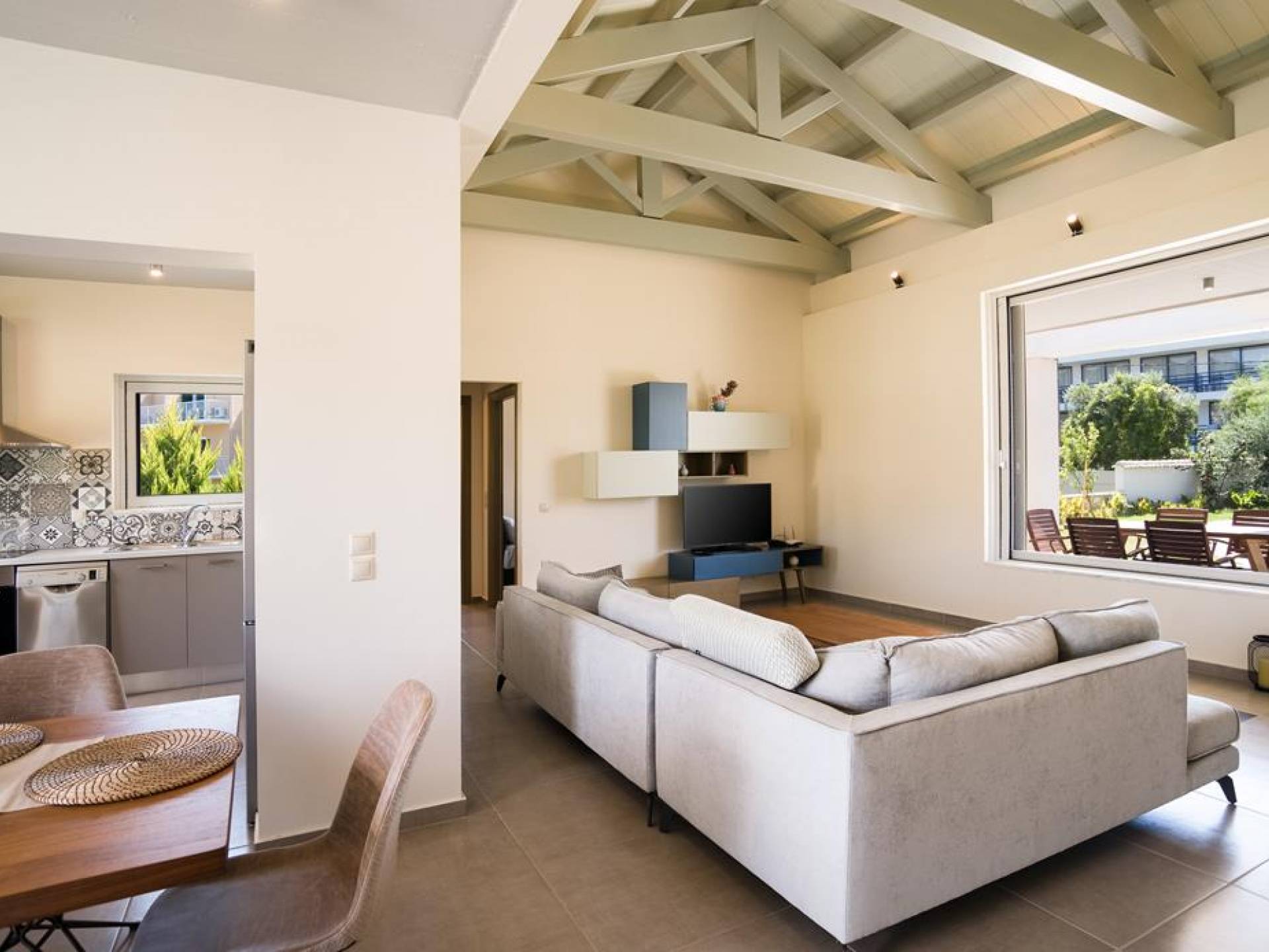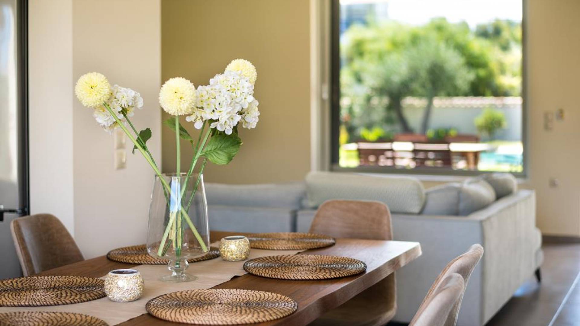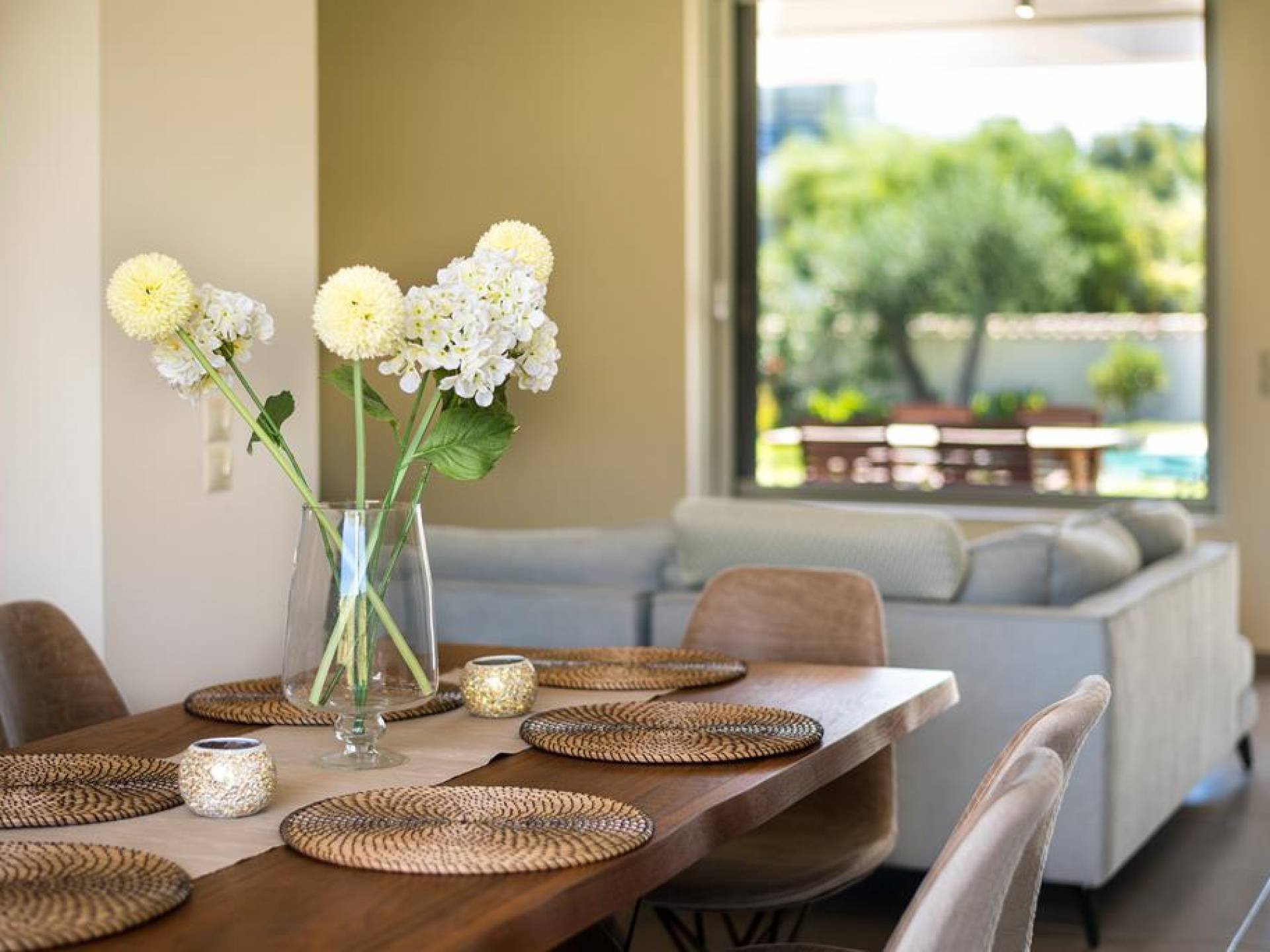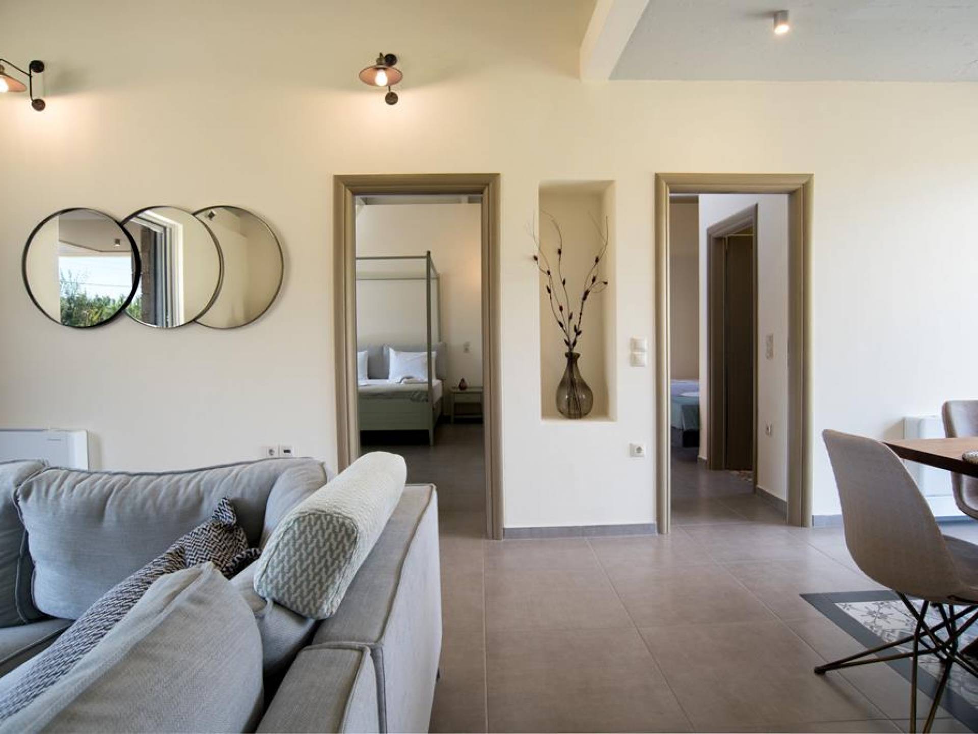Villa Erotas Corfù offre una cucina completamente attrezzata, una sala da pranzo, un bagno extra e un soggiorno spazioso e moderno con un divano che può essere facilmente trasformato in un comodo letto singolo. La particolarità di Villa Erotas Corfù è il tetto con travi in legno a vista nel soggiorno, che si accostano ai toni del bianco e del grigio e creano una lussuosa atmosfera di relax e serenità. Dal soggiorno si accede direttamente ad una grande terrazza, dove potrete gustare la vostra colazione o un drink rinfrescante davanti al giardino e alla piscina. Tutte le camere offrono Smart TV da 32 pollici, mentre il soggiorno Smart TV da 43 pollici. Canali satellitari, connessione Wi-Fi gratuita, riscaldamento e aria condizionata sono disponibili in tutte le aree.