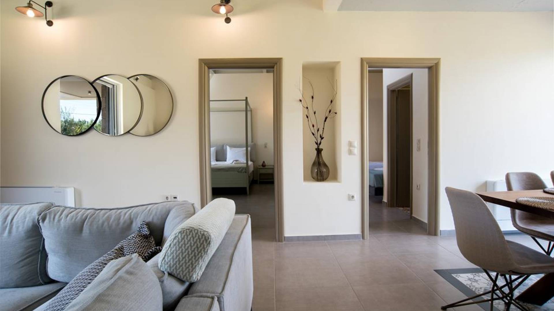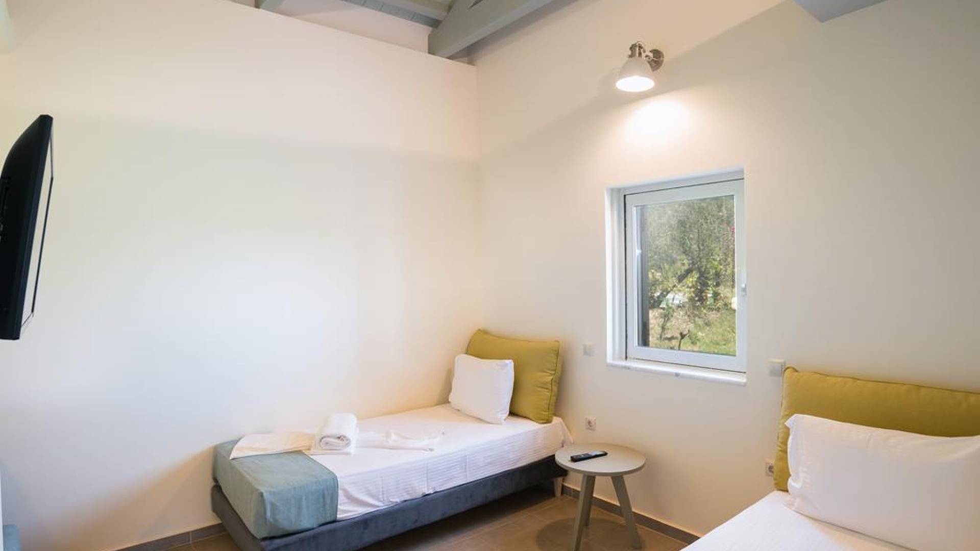 Villa Erotas Corfù può ospitare fino a 7 persone. Si compone di due grandi camere da letto, con bagno privato, oltre a una cameretta più piccola.