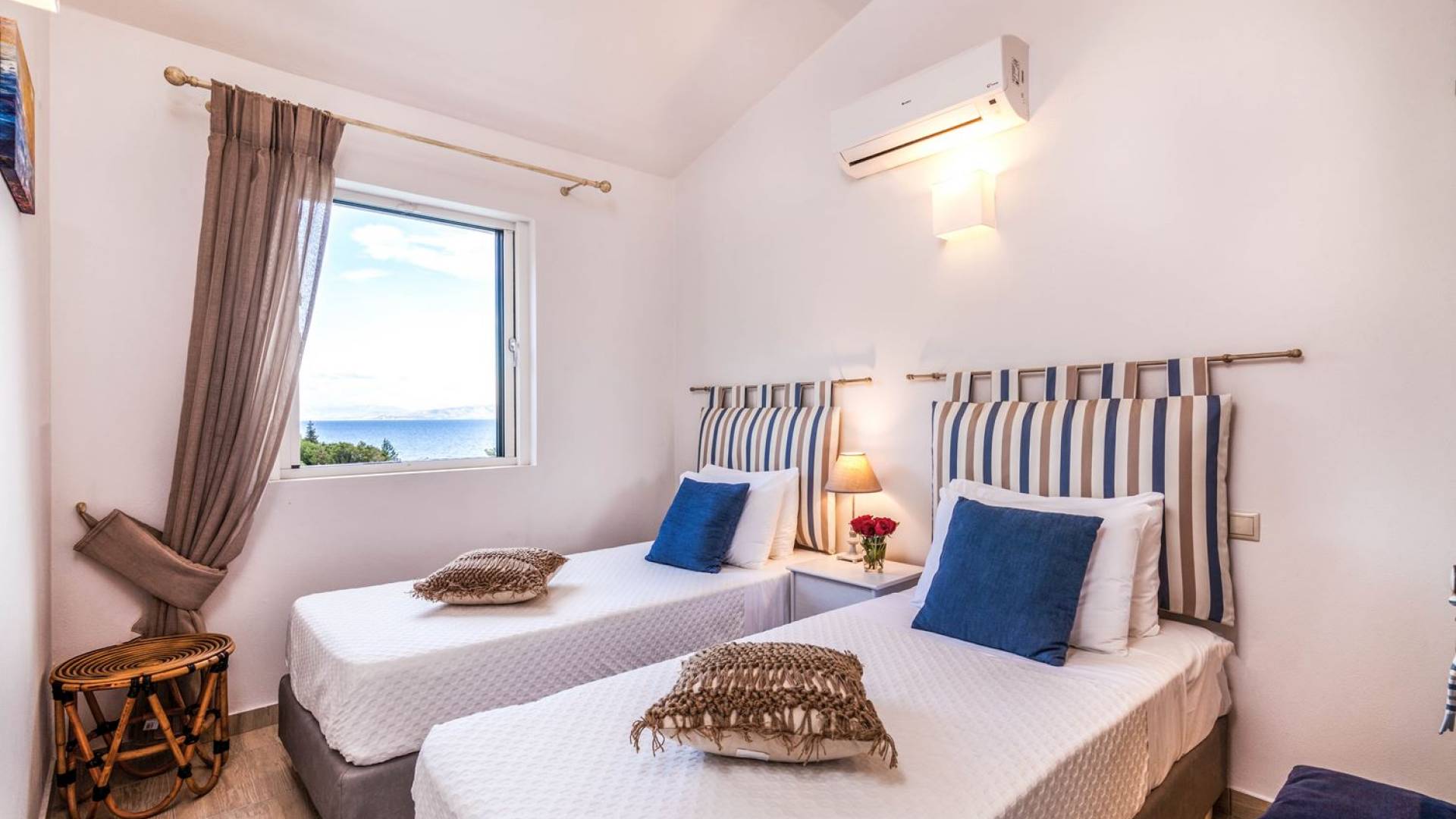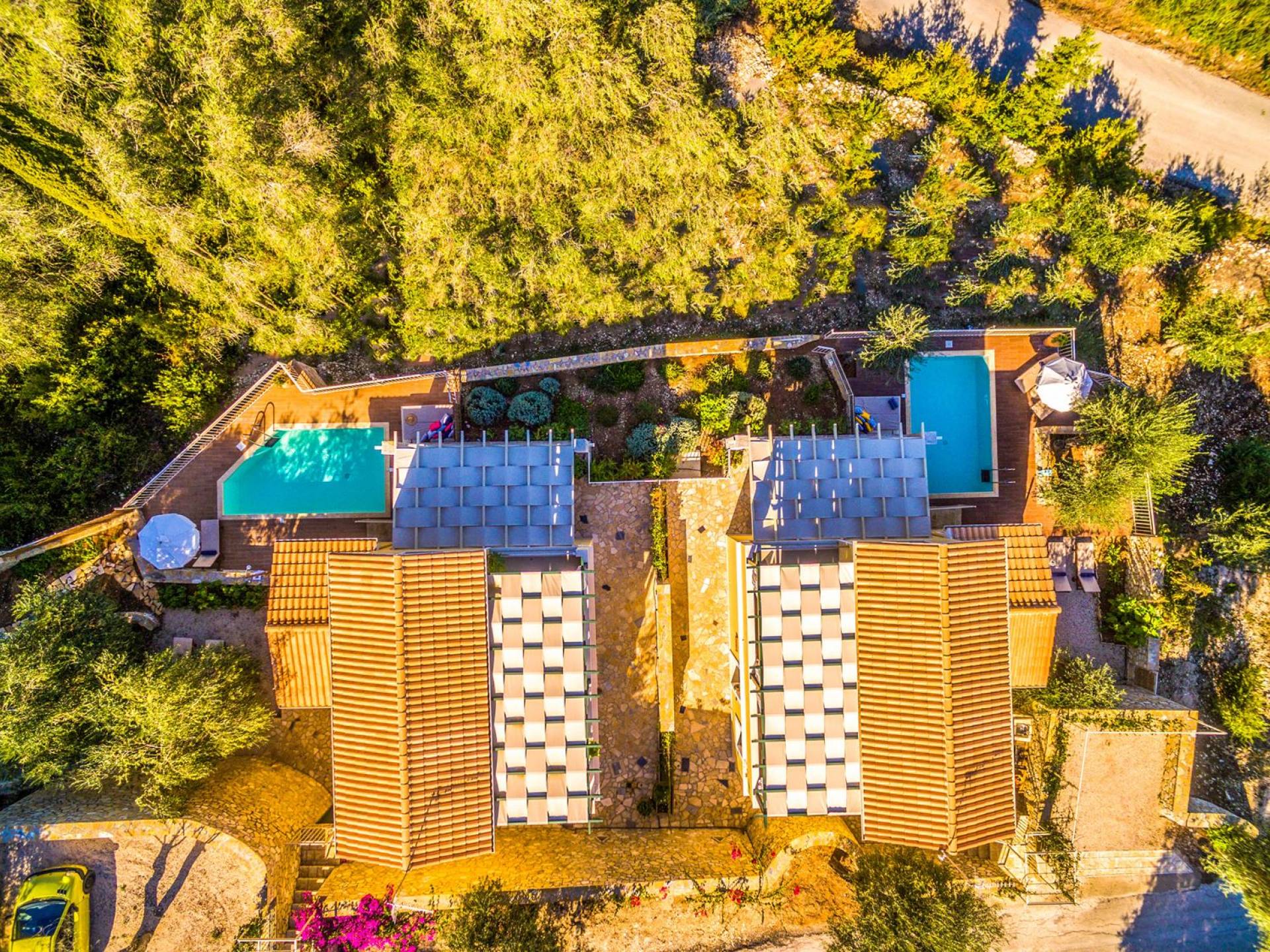 Villa Elia ha una dimensione di 75 mq. Al piano inferiore c'è un soggiorno-pranzo a pianta aperta, una cucina completamente attrezzata e un bagno. Accanto a queste si trova una delle due camere da letto con due letti singoli (che possono essere uniti in uno su richiesta), un armadio, un boudoir, aria condizionata e una protezione per finestre. La camera si affaccia sulla piscina e sul mare. Salendo al piano superiore si trova la seconda camera da letto con letto matrimoniale, armadio, boudoir, aria condizionata, zanzariera, proprio bagno e soprattutto una terrazza privata di 25 mq dove il visitatore può gustare la colazione o anche un cocktail rinfrescante al tramonto. In ogni camera sono presenti lenzuola fresche, asciugamani puliti per viso e corpo oltre a tende in grado di ombreggiare la stanza. Inoltre, ogni casa ha il proprio giardino privato con tavolo da pranzo e piscina privata.