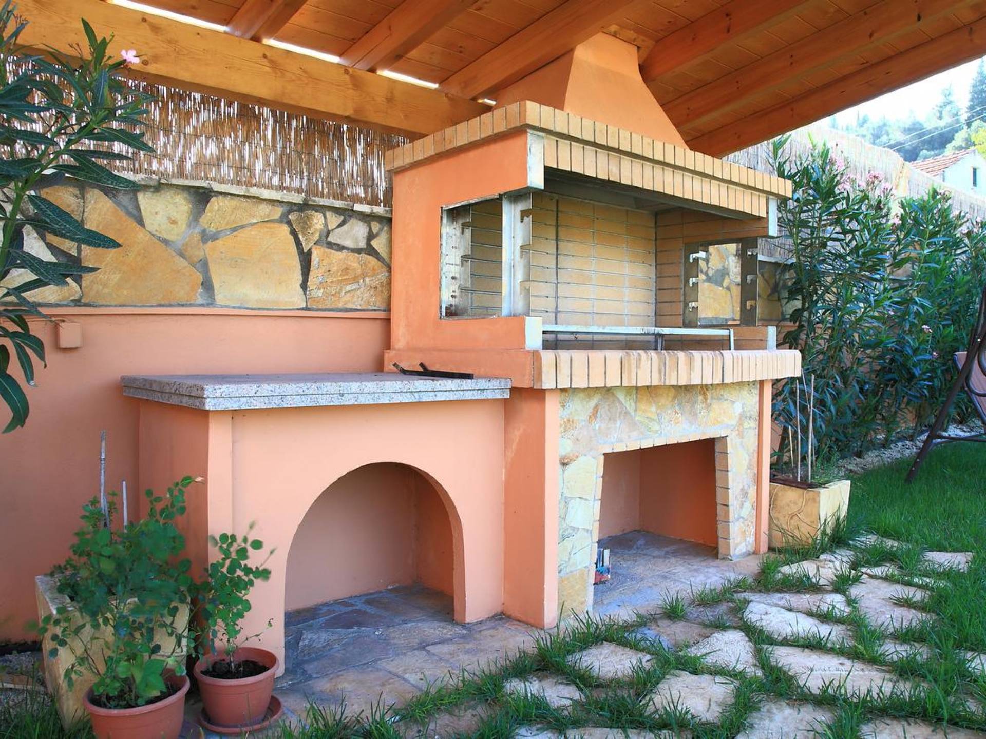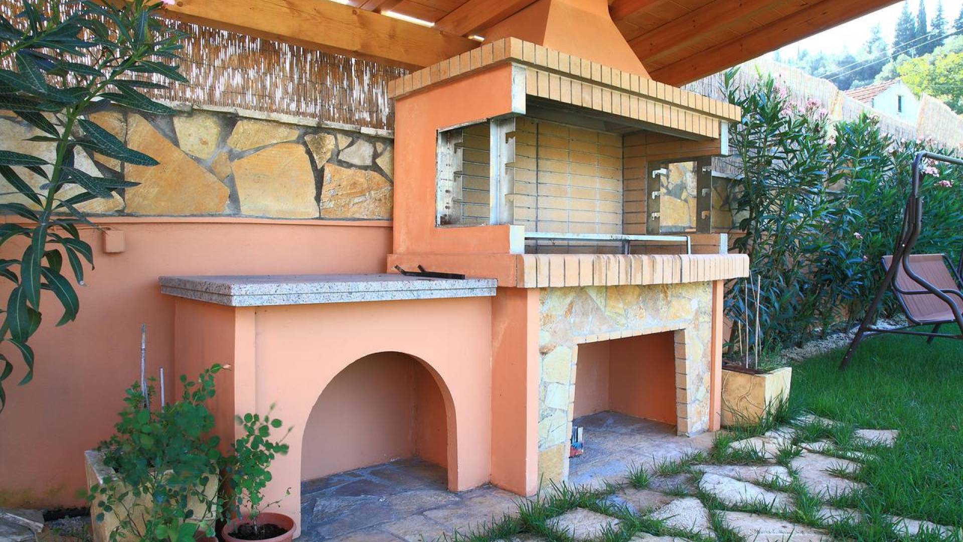 Villa Livadi Corfù prende il nome dalla pianura, caratteristica principale del villaggio di Poulimates (o Gousades) nel nord di Corfù in cui si trova. Una casa che è stata appena ristrutturata, ha mobili nuovi di zecca ed è completamente attrezzata. La piscina privata è circondata da un ampio giardino con alberi una tradizione nella nostra isola come ulivi e kumquat e altri frutti che invitano a rilassarsi all'ombra e gustare i loro frutti. Se ami il buon cibo fatto in casa, puoi goderti le tue creazioni, realizzate in un barbecue di grandi dimensioni utilizzando autentiche erbe fresche direttamente dal giardino!