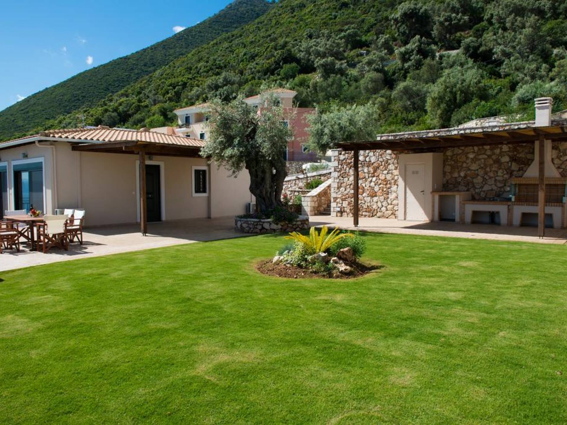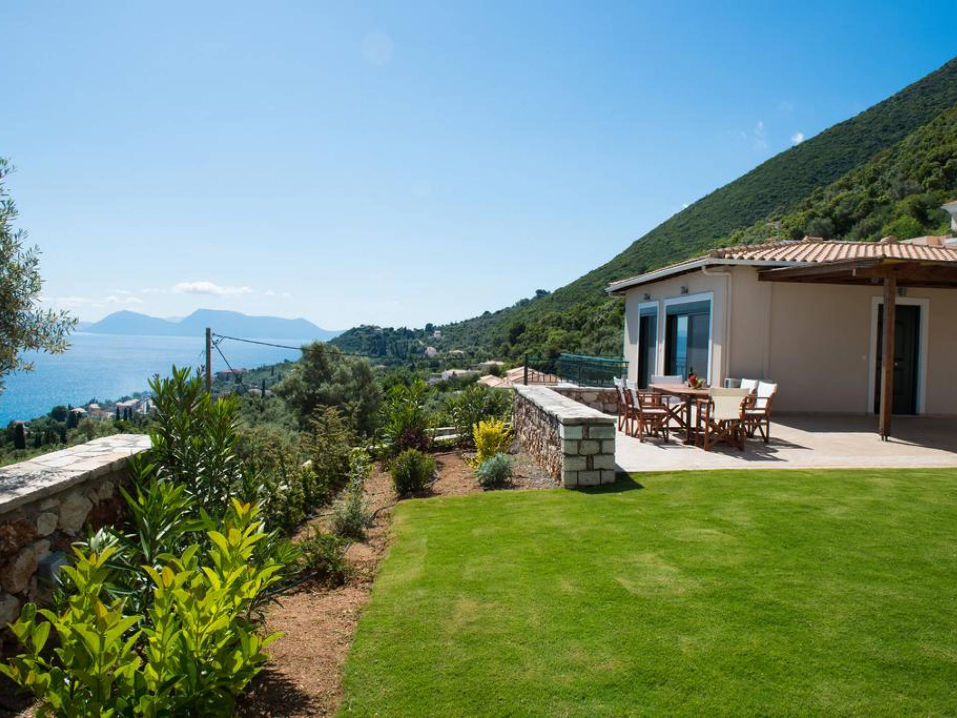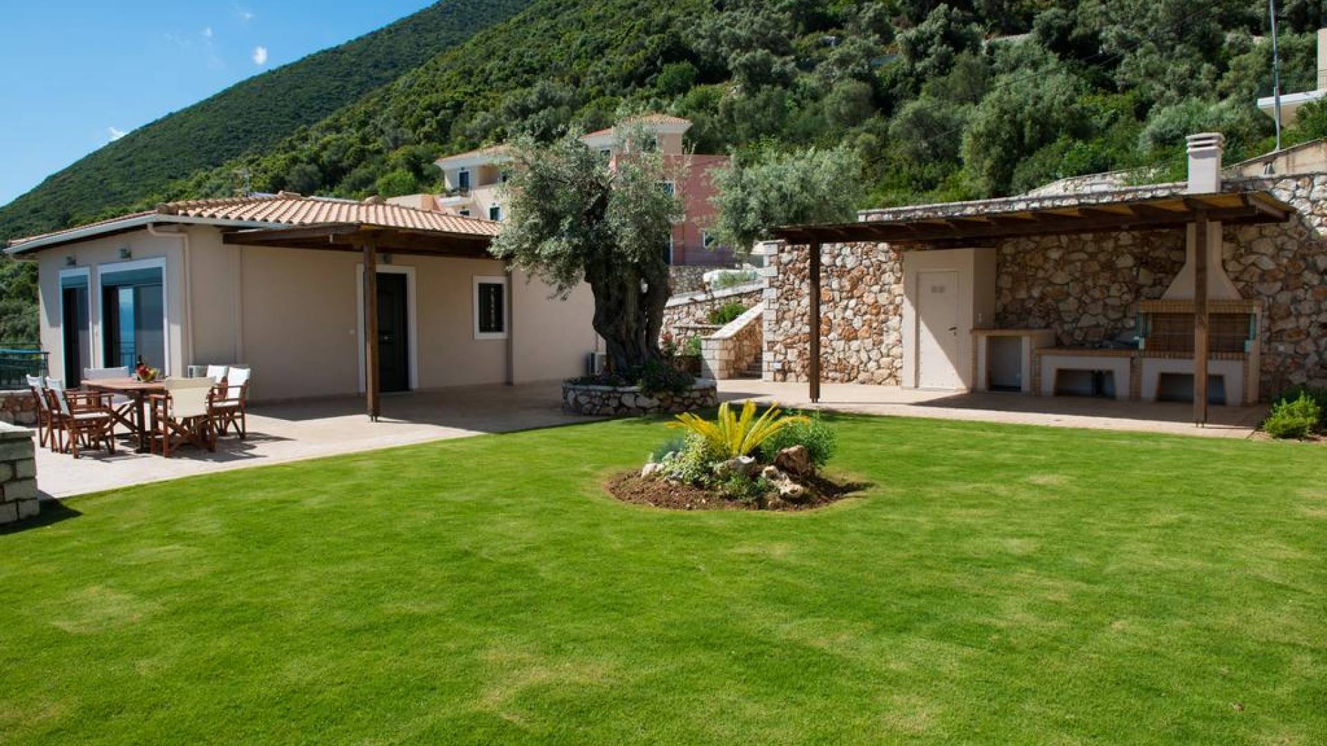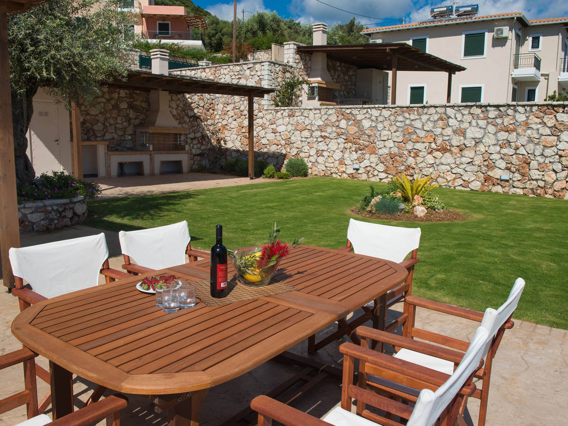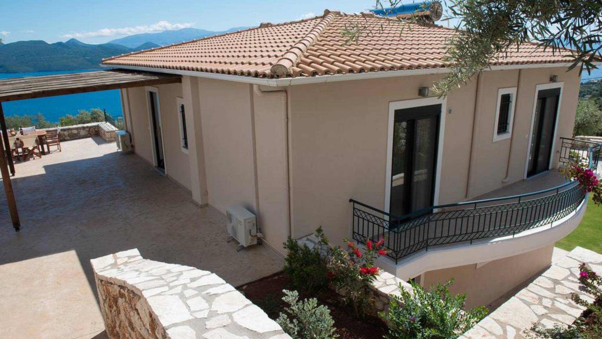 Esternamente, la villa è circondata da un curatissimo giardino e da ampi terrazzi e offre una vista spettacolare da ogni punto. Gli ospiti possono godere dello scenario montano mozzafiato e delle acque cristalline del Mar Ionio. Per i residenti che amano cucinare all'aperto, c'è una tradizionale area barbecue. C'è anche un parcheggio privato recintato per due auto