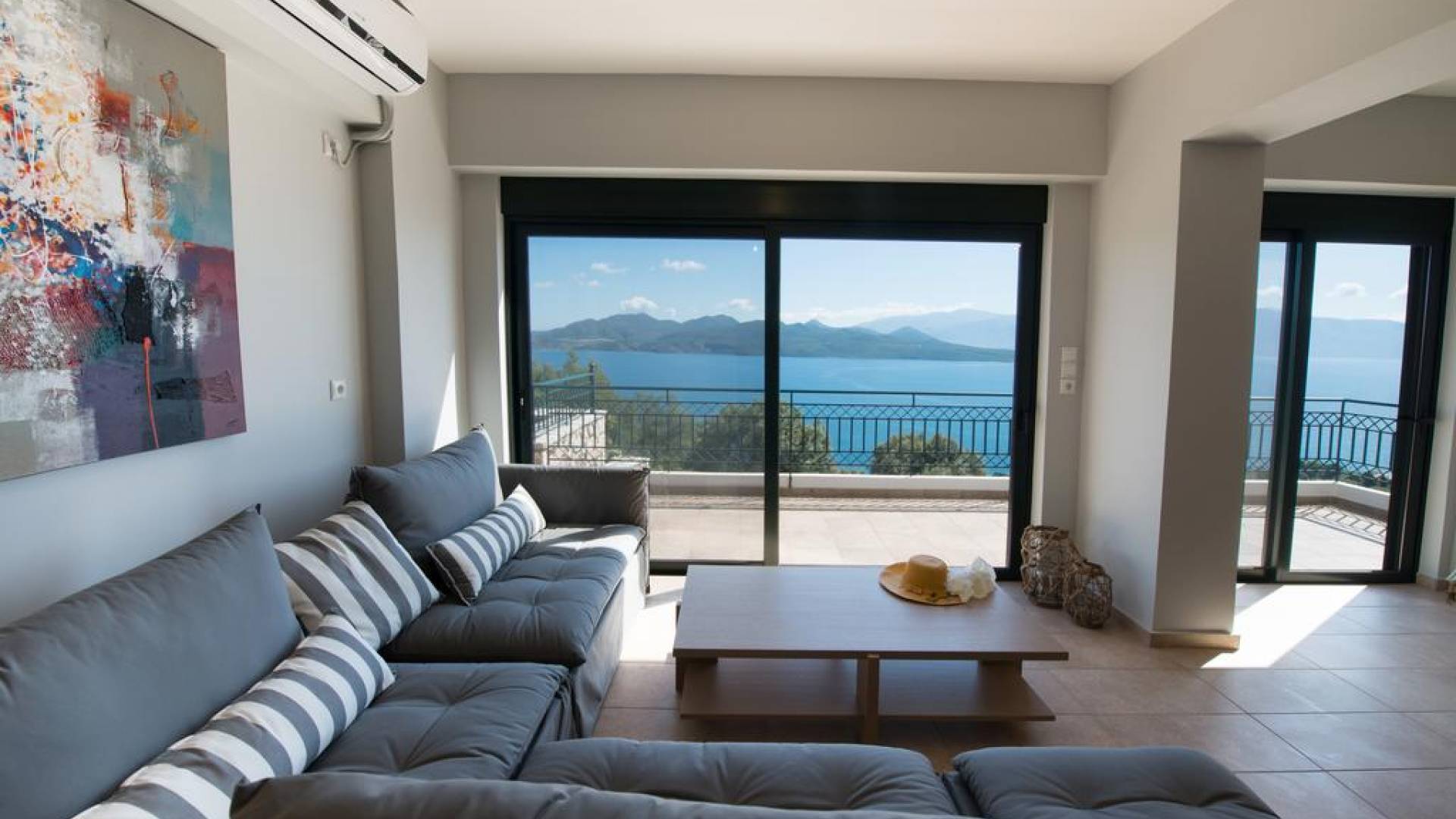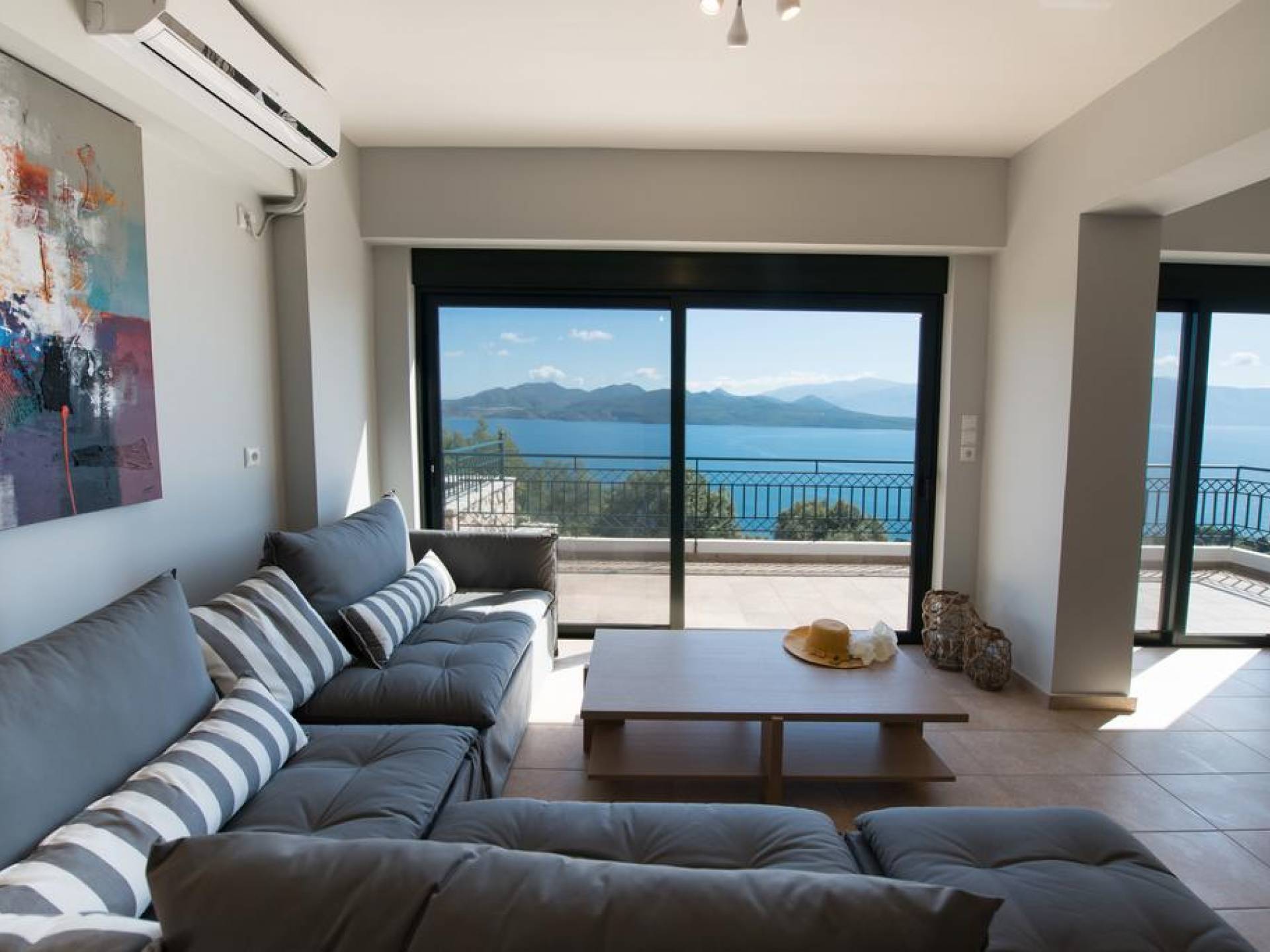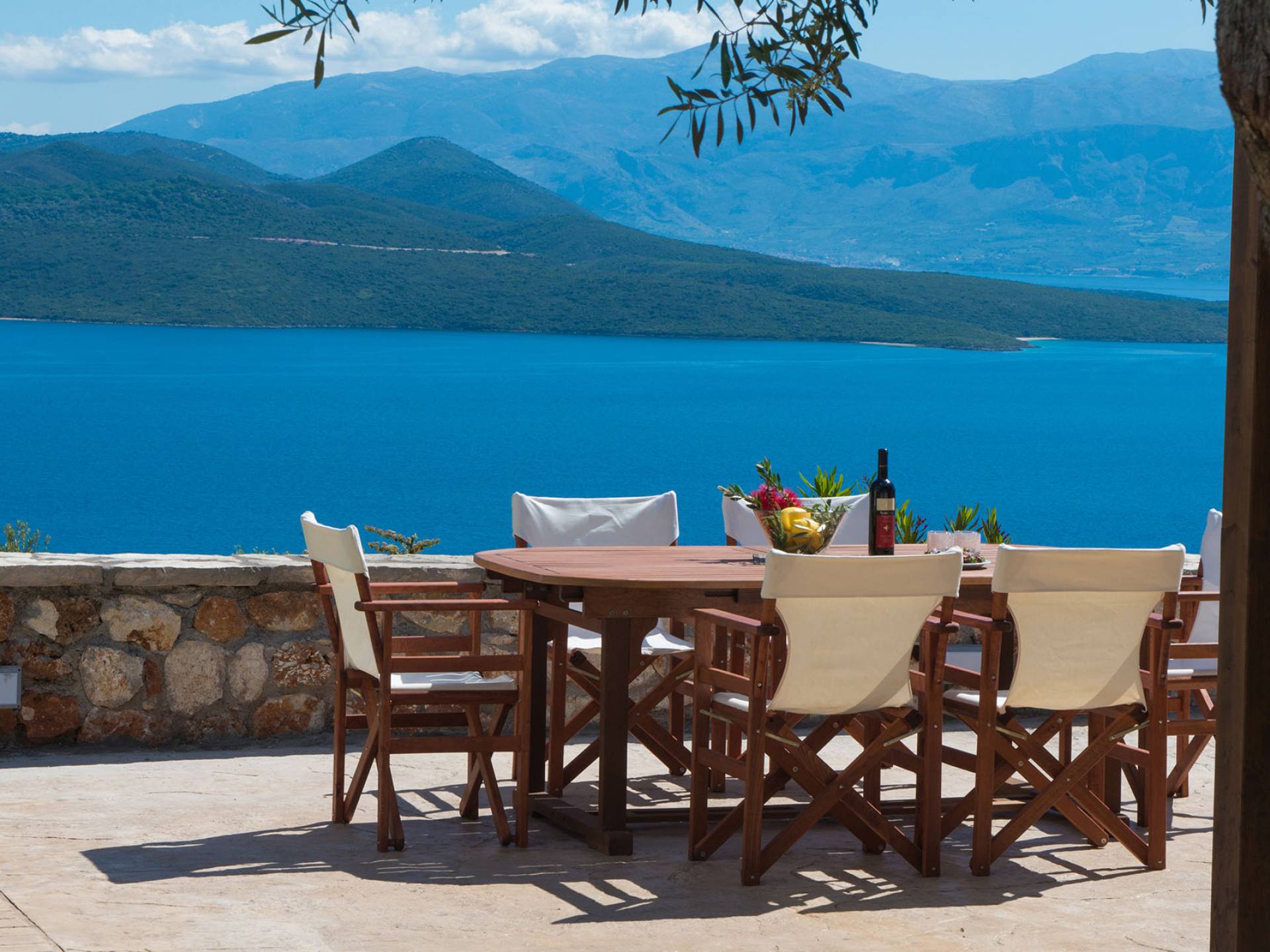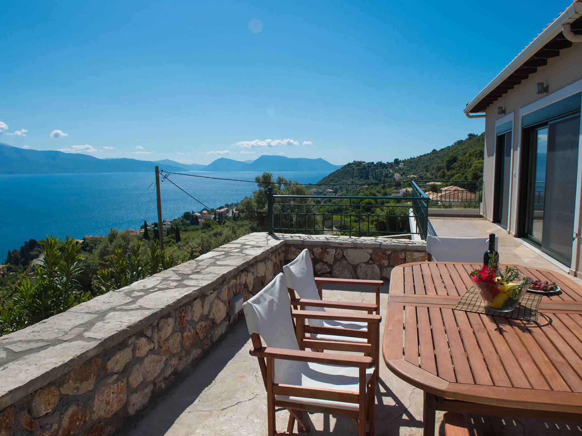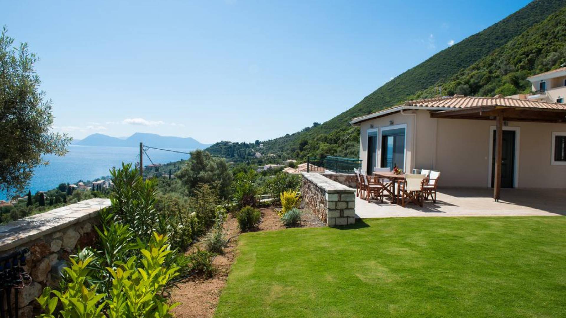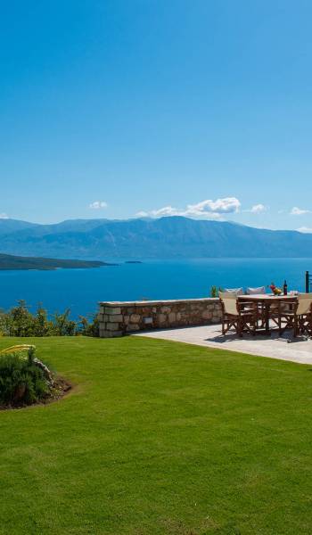Esternamente, la villa è circondata da un curatissimo giardino e da ampi terrazzi e offre una vista spettacolare da ogni punto. Gli ospiti possono godere dello scenario montano mozzafiato e delle acque cristalline del Mar Ionio. Per i residenti che amano cucinare all'aperto, c'è una tradizionale area barbecue. C'è anche un parcheggio privato recintato per due auto