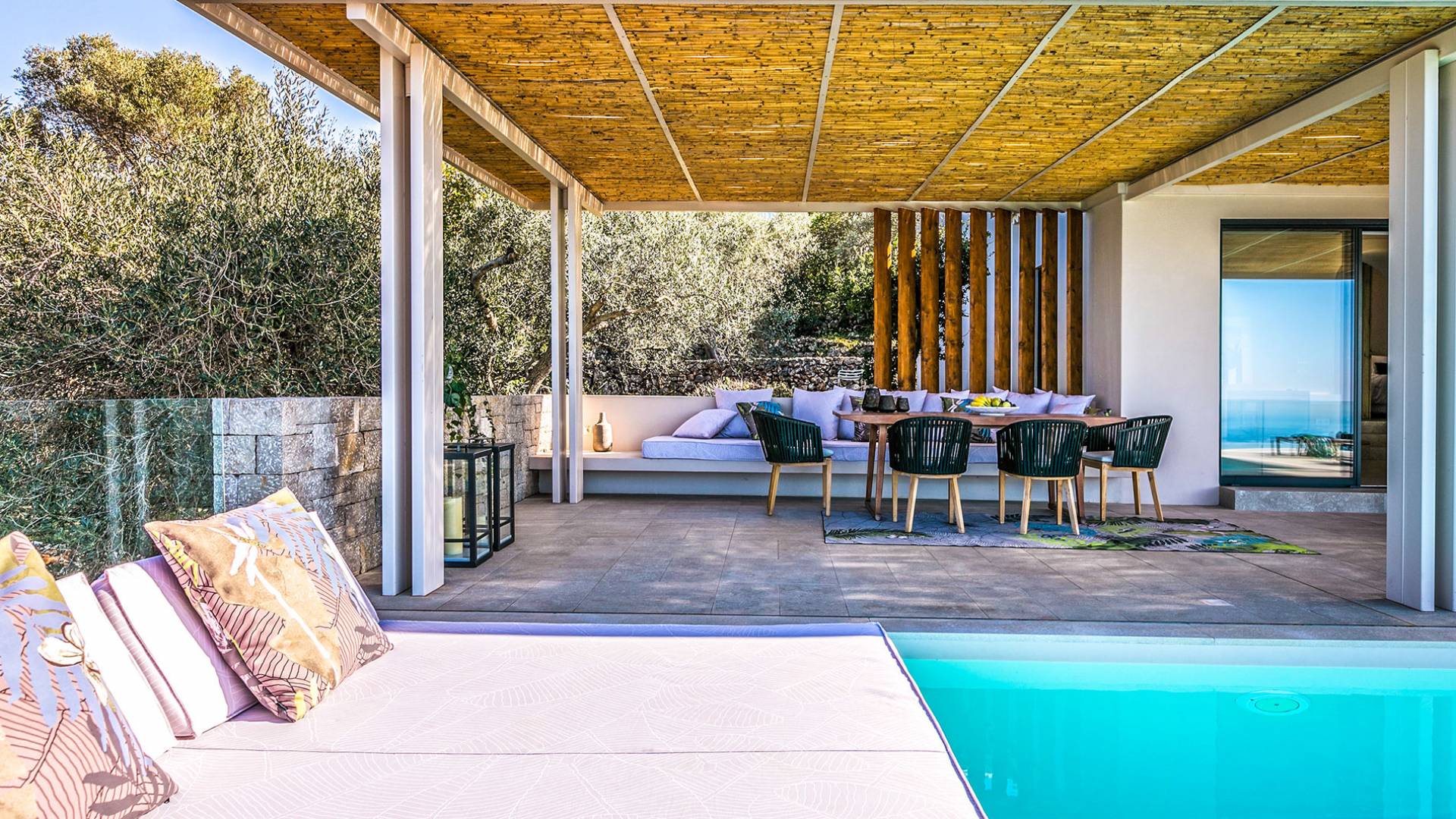 Colore blu, sole e lusso, niente può battere questa combinazione. Cos'altro c'è da chiedere per le tue vacanze? Concediti una piscina privata riscaldata nell'intimità della tua villa, sia interna che esterna. L'acqua è curativa e terapeutica e laverà…