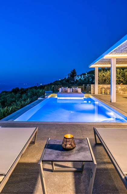 Trascorrerai momenti indimenticabili sdraiati sulla veranda da sogno, dove ti perderai nell'incantevole vista del blu infinito, dove l'orizzonte si fonde con la piscina privata in perfetta armonia. Natura, colori e il dolce profumo di erbe e fiori definiscono l'essenza di Villa Aledora Lefkada e, di conseguenza, la tua esperienza di vacanza unica
