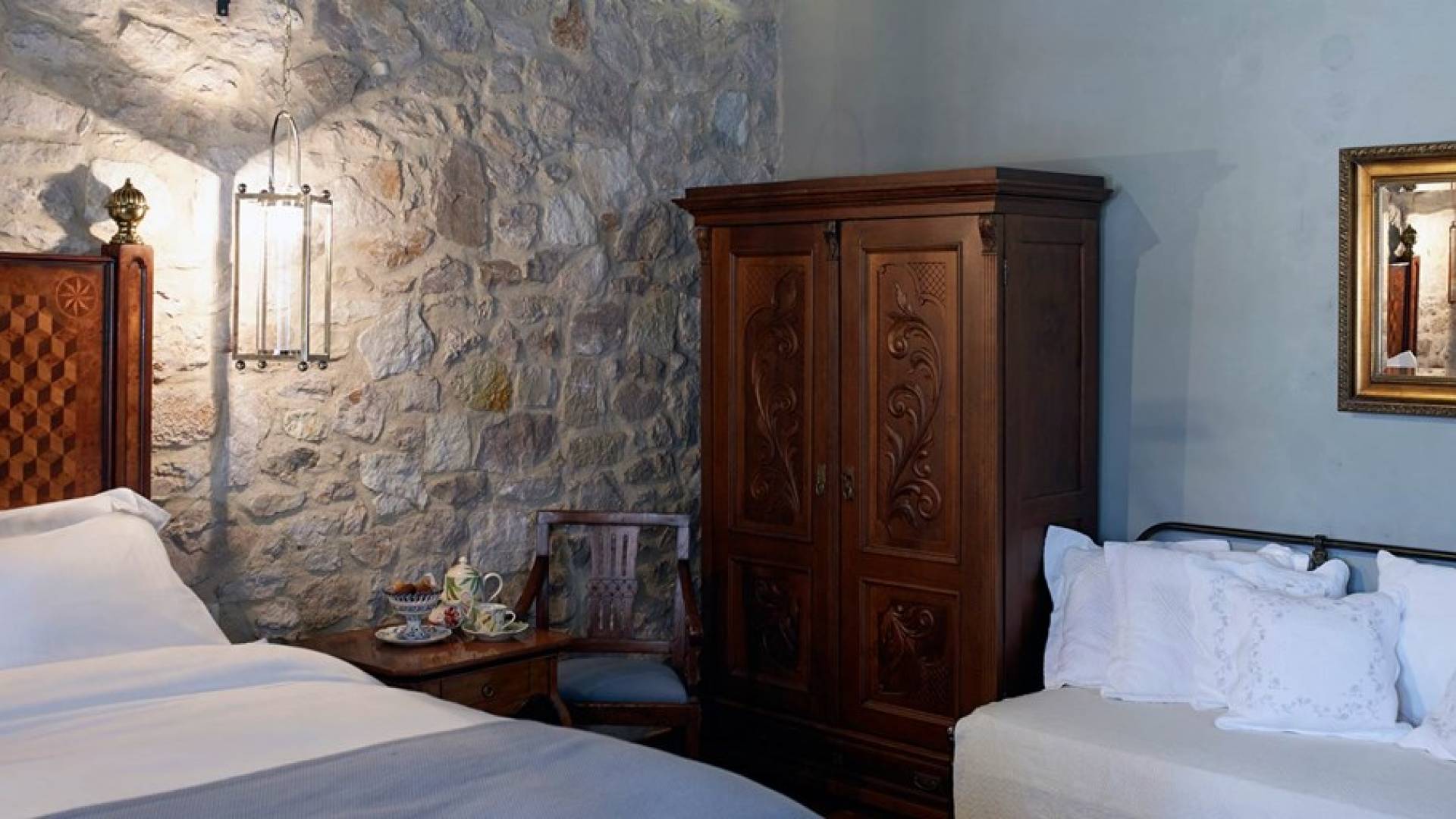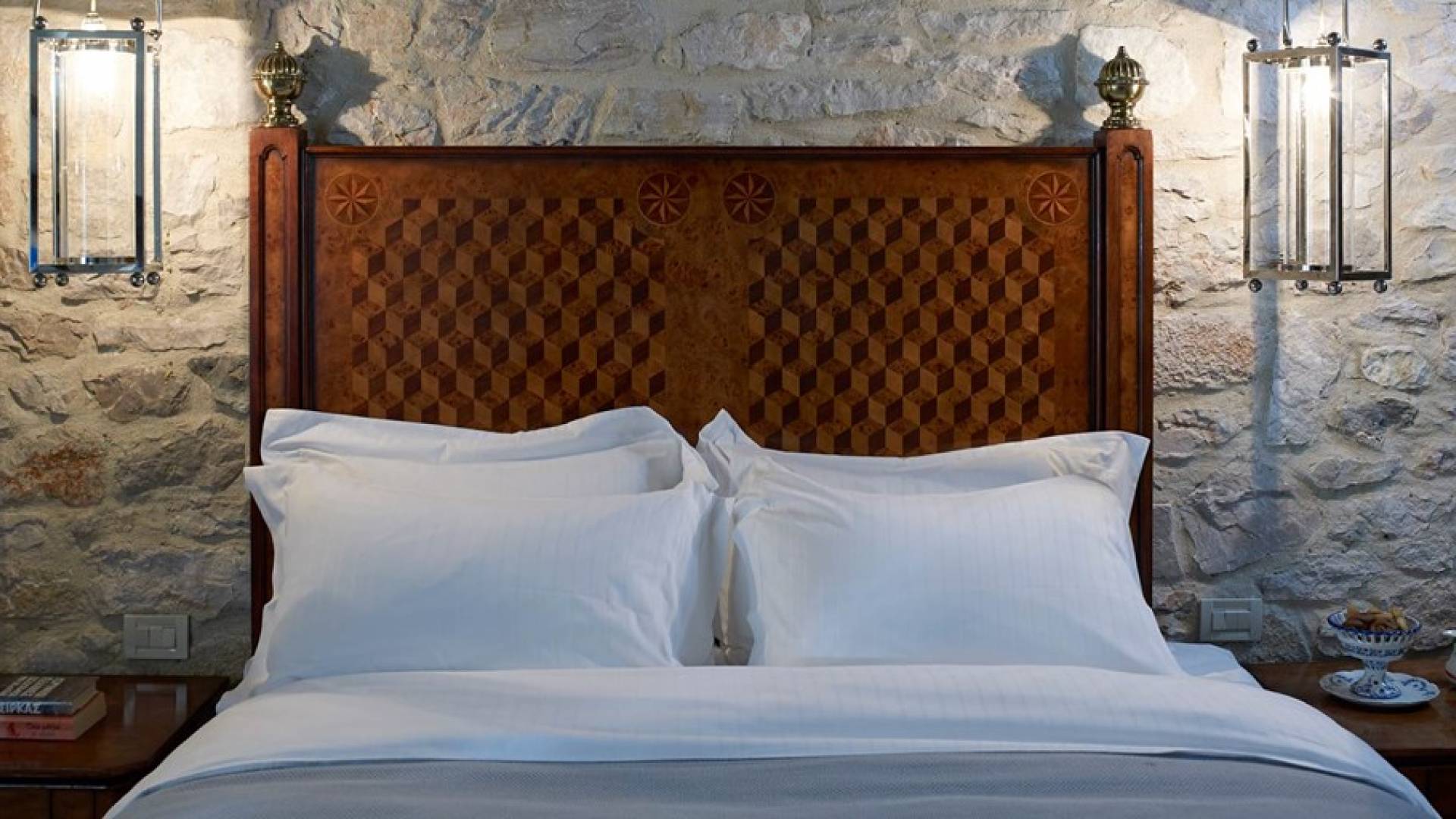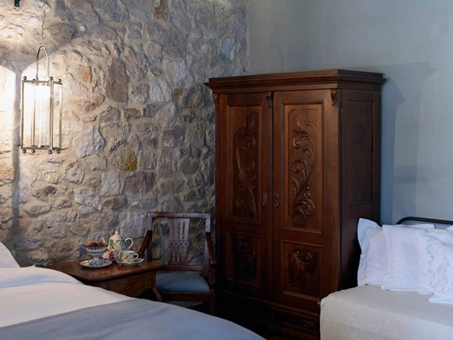 Elatos Suite è una Junior Suite dal design accattivante. Si tratta di una suite con una camera da letto dotata di arredi, stampe, dipinti e tessuti preziosi. Con una ricchezza di storia, ma dotata di tutti i comfort moderni, Elatos Suite è stata progettata e costruita per fornire la massima soddisfazione ai nostri ospiti. Questa camera dispone di un sontuoso letto King size americano con lenzuola pregiate e piumini d'oca, oltre a un divano letto nell'area principale. I servizi Molton Brown completano l'ambiente ultra-lussuoso che definirà il vostro soggiorno in questo hotel di lusso in Grecia. Se sei una famiglia numerosa o un gruppo di amici più numeroso e hai bisogno di una camera da letto in più, la Suite Elatos può essere prenotata insieme alla Suite Dris poiché sono una accanto all'altra, condividono una sala comune, offrendo quindi un accesso diretto e facile tra le due selezioni di alloggi nel complesso.