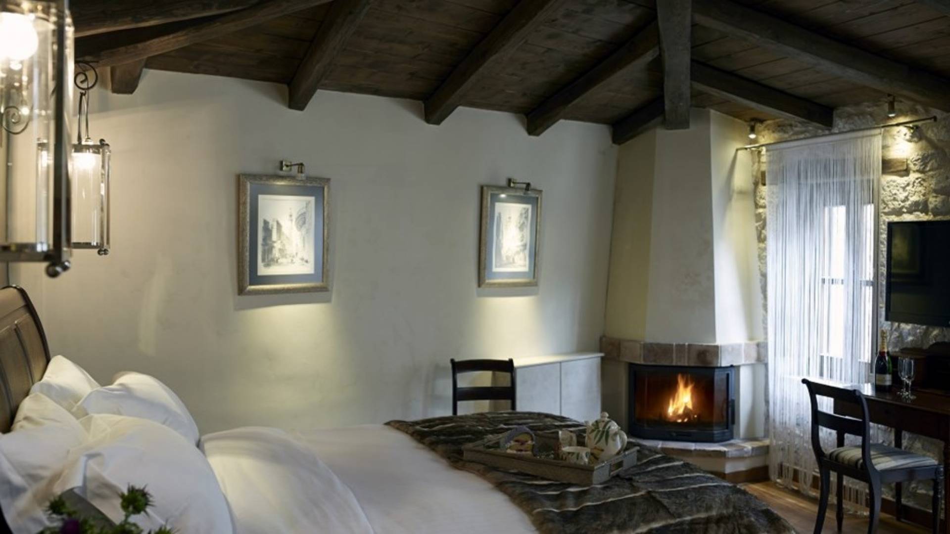 La Platanos Suite è una Junior Suite splendidamente arredata con un ampio bagno. Si tratta di una camera da letto e dispone di un balcone privato con una vista maestosa e dispone di un caminetto ben progettato. È progettato e costruito per fornire la massima soddisfazione ai nostri ospiti. Questa camera dispone di un sontuoso letto all'americana queen-size con lenzuola pregiate e piumini d'oca. I servizi Molton Brown completano l'ambiente ultra-lussuoso che definirà il vostro soggiorno in questo hotel di lusso in Grecia. Se sei una famiglia numerosa o un gruppo di amici più numeroso e hai bisogno di una camera da letto in più, la Suite Platanos può essere prenotata insieme alla Suite Kastania in quanto sono una sopra l'altra, condividono una sala comune e offrono quindi un accesso diretto e facile tra le due selezioni di alloggi nel complesso.