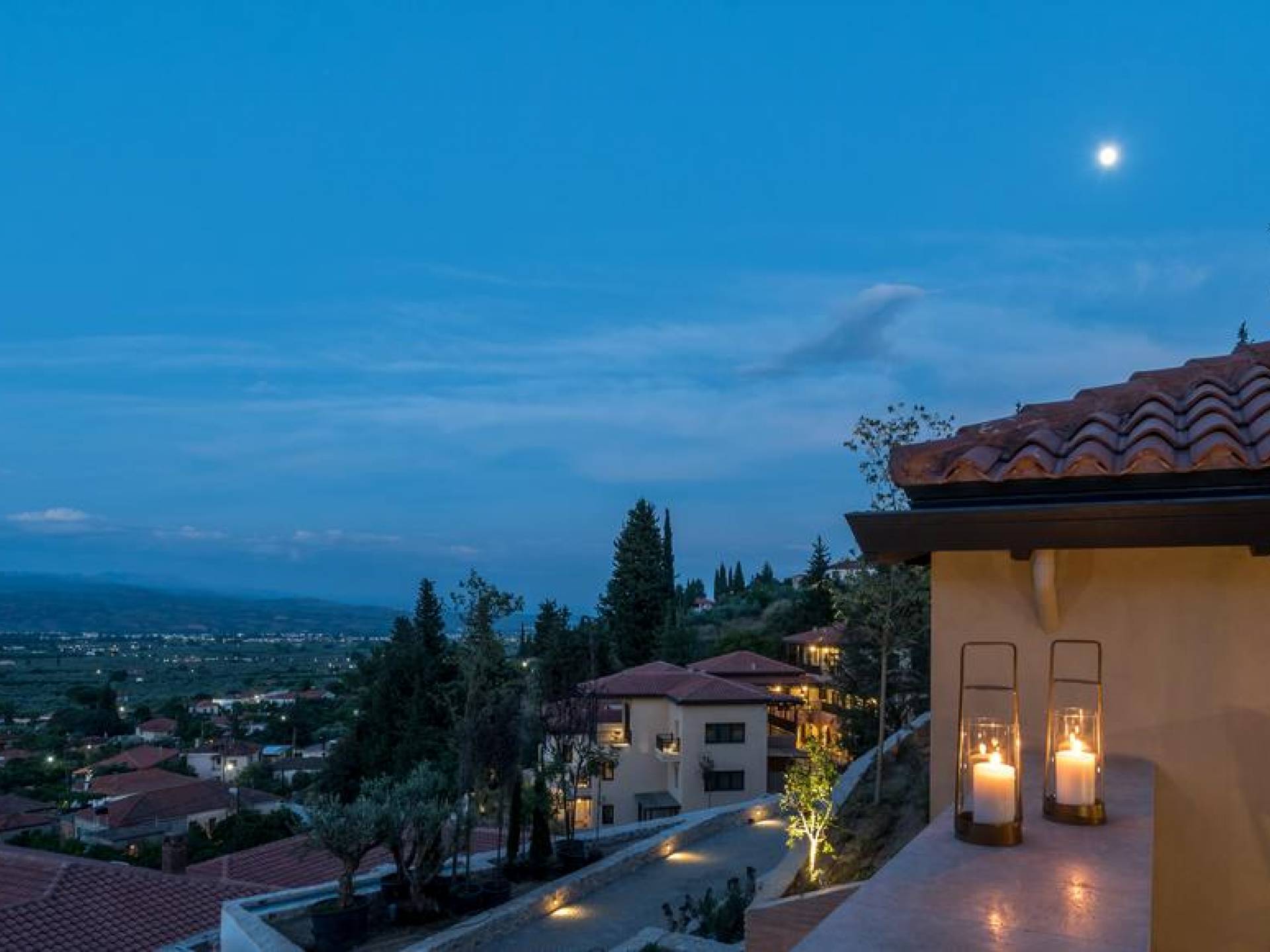Il bagno in marmo onice, con doccia a vapore personalizzata e vasca, offre un lusso speciale. Cupole e curve portano lo spirito di Bisanzio nella tua esperienza di bagno, con prodotti da bagno Euphoria Retreat Spa e Body Splash Aroma che rendono l'esperienza ancora più speciale. E completano il viaggio una veranda e una terrazza, con vista panoramica sulla valle degli agrumi e sul villaggio tradizionale da cui le Mystras Suites prendono sia il nome che l'energia unica.